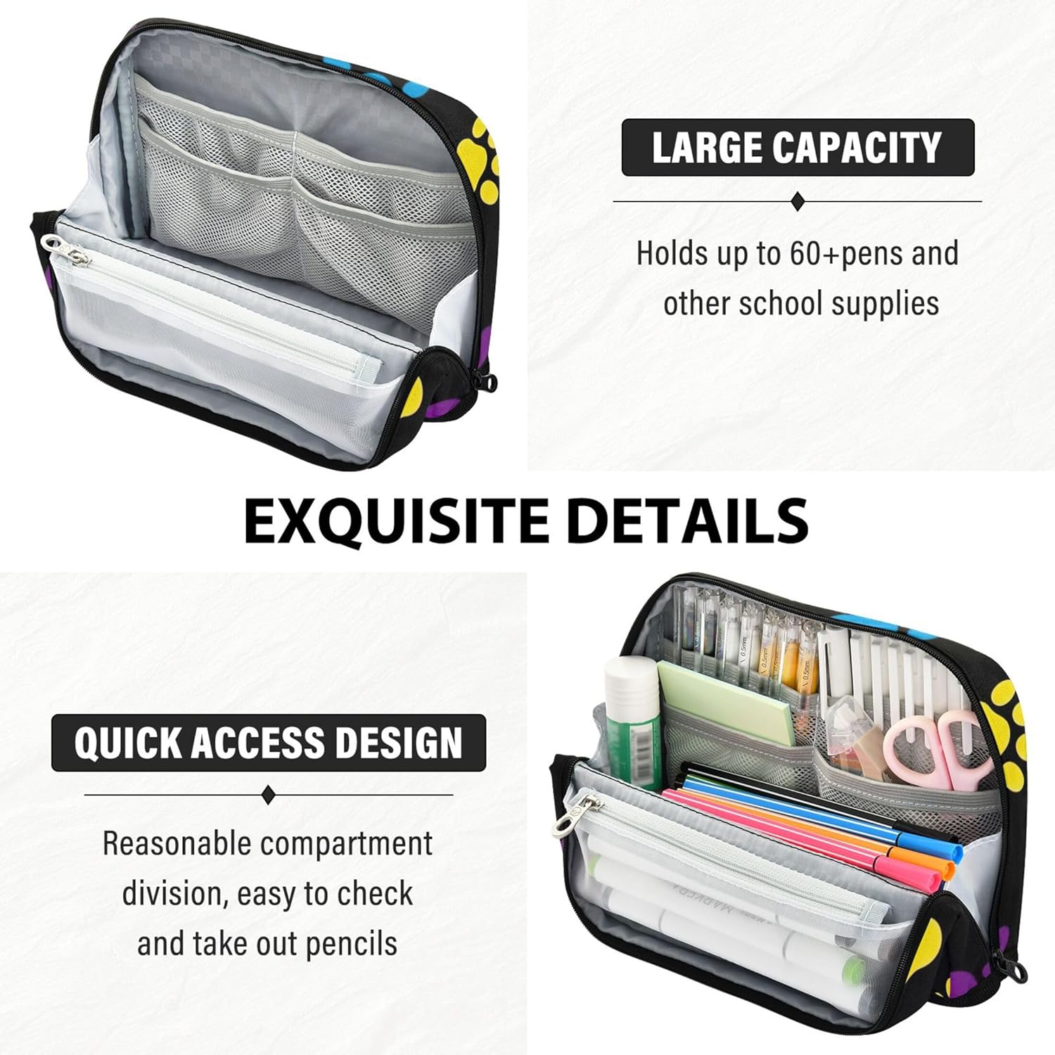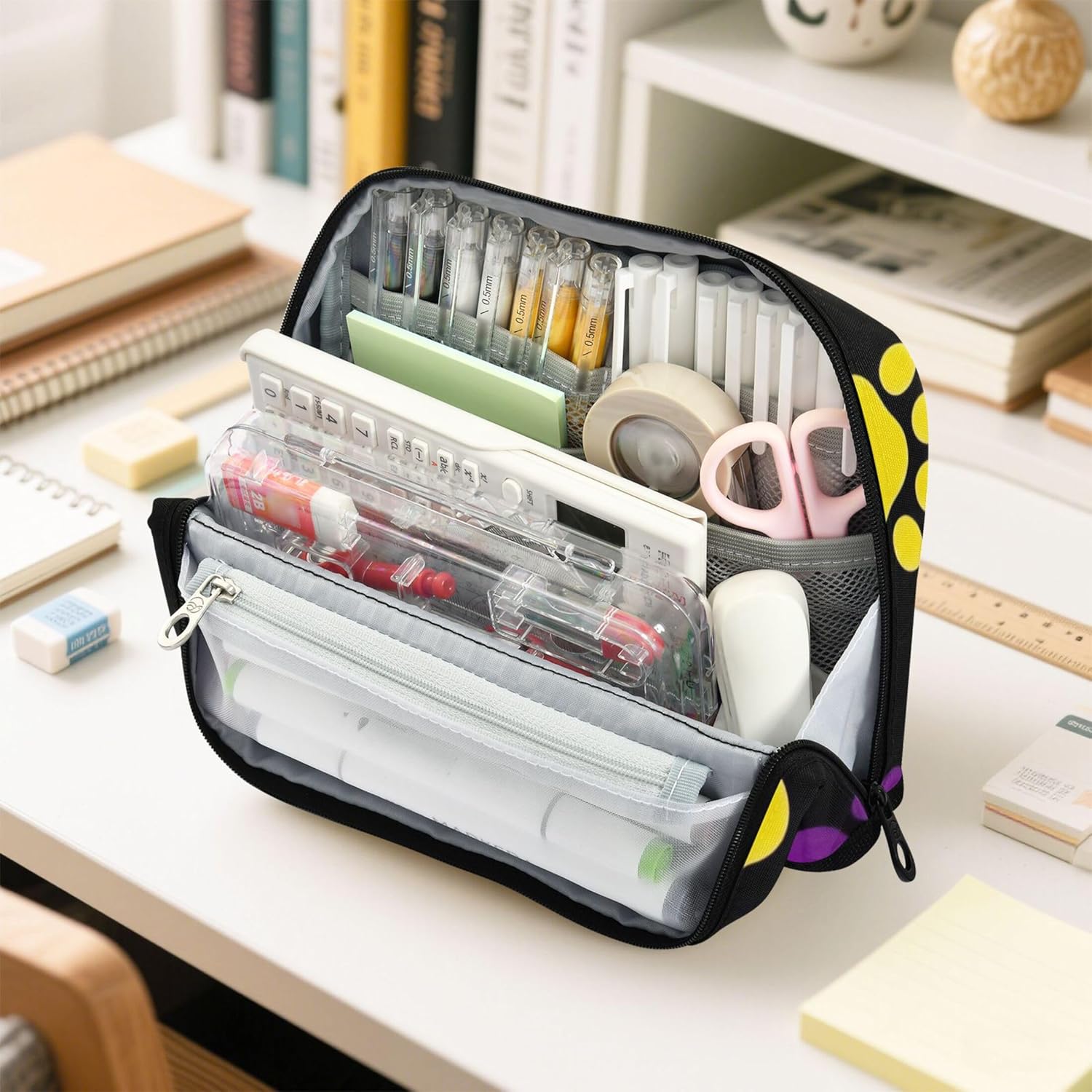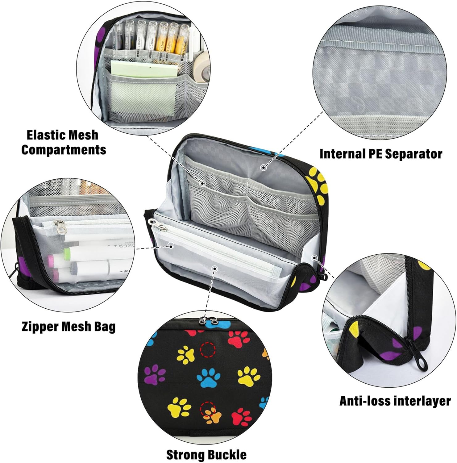 Innovativa base pieghevole: progettata per essere ripiegata e bloccata in posizione, l'astuccio per matite diventa immediatamente un contenitore indipendente, ideale per organizzare le forniture mentre si lavora o si studia Struttura protettiva e pratica: realizzata in nylon resistente, la borsa per cosmetici è progettata per resistere ai danni, rendendola ideale per viaggi, scuola o spostamenti quotidiani Grande capienza: dispone di uno scomparto principale, una tasca in rete con cerniera e una tasca aperta per organizzare penne, matite, gomme, temperamatite e foglietti adesivi Flessibile per diverse esigenze: la borsa cosmetica per matite funge da molto più di un semplice astuccio, riutilizzala come kit per il trucco quotidiano, borsa da viaggio o pratico contenitore da scrivania Soluzione regalo personalizzata: aggiungi un nome o una foto all'astuccio per ragazze e fai un regalo unico nel suo genere che unisce praticità e personalità per scuola, viaggi o uso domestico