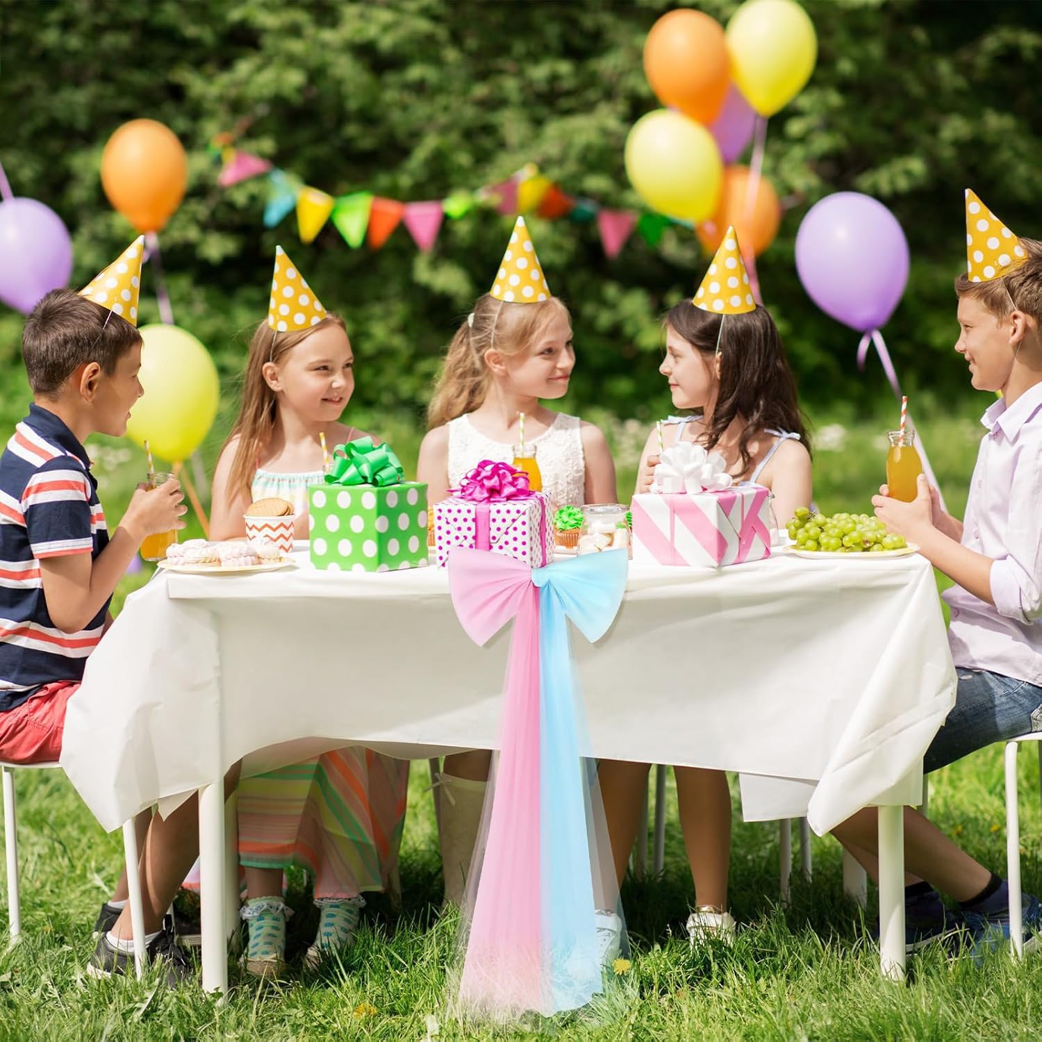 Si combina perfettamente con palloncini e composizioni floreali, trasformando lo spazio ordinario in incantevoli luoghi per feste Questo fiocco decorativo in poliestere di grandi dimensioni mantiene colore e forma fornendo al contempo un facile fissaggio tramite nastro o superfici adesive Feste scolastiche e decorazioni nuziali con questo fiocco in organza da 73 x 34 cm per migliorare abbellimenti e celebrazioni dello sfondo nuziale Ideale per abbellire aule, fondali nuziali, tavoli per ricevimenti, confezionare o sedie per banchetti durante baby shower e celebrazioni stagionali Adatto per genitori che organizzano tradizioni del rientro a scuola, organizzatori di eventi, styling di matrimoni o artigiani che creano temi per feste di compleanno