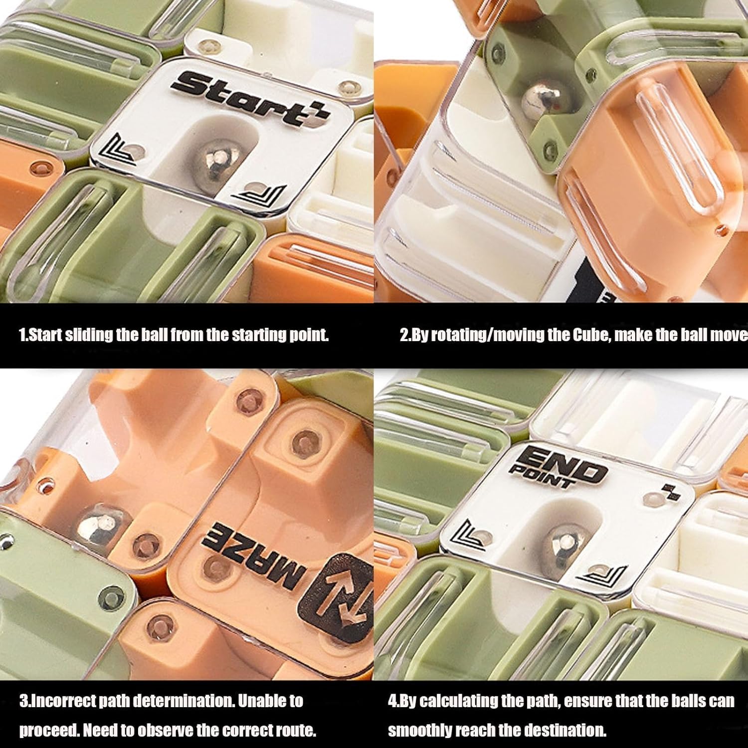 Simpatico gioco di puzzle: questo gioco di puzzle con palline 3D è un'attività entusiasmante che sviluppa la consapevolezza spaziale e le capacità mentali. Adatto a giochi di puzzle per bambini dagli 8 ai 12 anni, stimola l'attenzione, la risoluzione dei problemi e la determinazione. Gioco divertente e coinvolgente: il labirinto con palline compatto (8,2 x 8,2 x 8,2 cm) e portatile offre un gioco divertente sempre e ovunque. È un puzzle con palline 3D per bambini che aiuta a migliorare l'attenzione e supporta lo sviluppo cognitivo. Divertimento coinvolgente con il puzzle con palline: inizia dall'inizio e guida la pallina ruotando o inclinando il cubo 3D. Usa le pendenze per scoprire il percorso fino a raggiungere la fine. Adatto per l'attesa, il viaggio o le pause, questo puzzle ti tiene impegnato e affina le capacità di pensiero. Risolvi e impara: ruota il cubo 3D finché una faccia non mostra 9 arancioni o 9 ciano, quindi abbina tutti e sei i lati. Un divertente puzzle 3D che migliora la concentrazione, il pensiero logico, la coordinazione occhio-mano e le capacità visive sia per bambini che per adulti. Un regalo perfetto per tutte le età: perfetto come regalo di compleanno per bambini di 8, 9 e 10 anni, per alleviare lo stress o per divertirsi nel tempo libero. Questa palla puzzle è un regalo entusiasmante per tutti. Esplora la nostra collezione di Rubik Race e altri puzzle 3D per bambini.