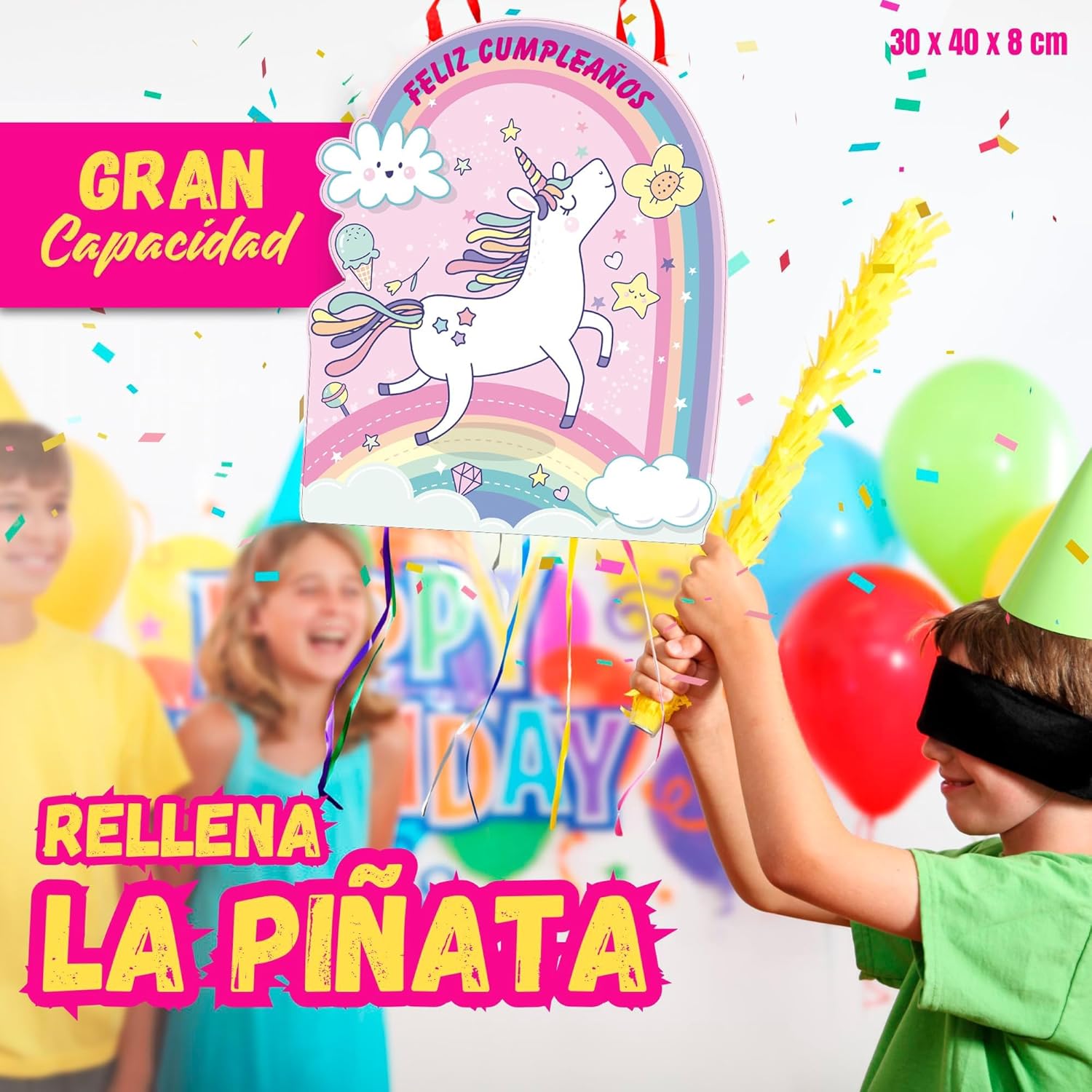 Riempi la pignata con coriandoli e tira le corde per liberare la sorpresa. Montaggio rapido, senza attrezzi e sistema sicuro per appendere in qualsiasi spazio. Ideale per compleanni, feste a tema o eventi scolastici. Il suo design colorato e accattivante diventa al centro dell'attenzione e assicura momenti indimenticabili per i bambini. Con 40 x 30 x 8 cm, è adatto per interni ed esterni e permette di riempirlo in modo che tutti i bambini ricevano il loro premio. Compatto, ma con grande capacità di divertimento. Realizzato in cartone spesso e materiali atossici. Supporta il peso senza rompersi e garantisce sicurezza in ogni utilizzo, così i genitori godono proprio dei bambini.