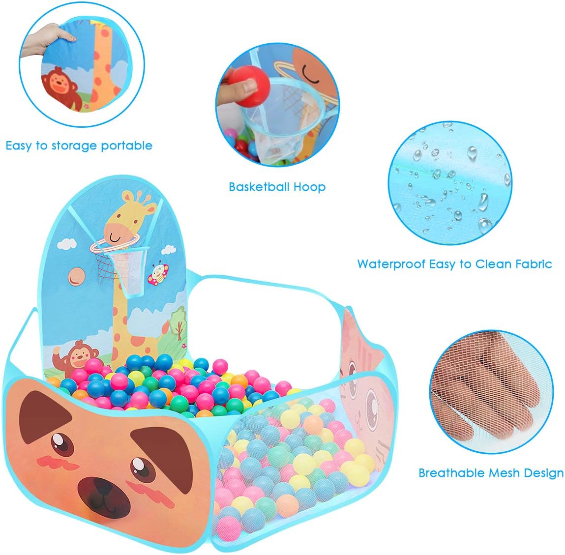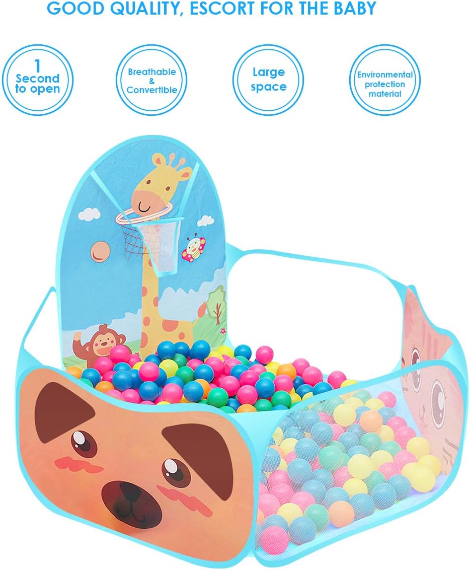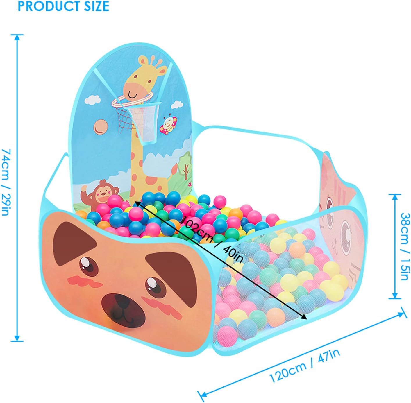 Design spazioso: con la sua grande capacità di archiviazione, può contenere molte palline e offre ai bambini abbastanza spazio per giocare comodamente, in modo da avere abbastanza spazio per muoversi e godersi il loro tempo di gioco. KIDS PLAY TENT: questa tenda da gioco con cartoni animati è perfetta per neonati, bambini e adolescenti. Offre uno spazio divertente per giocare al chiuso e all'aperto, dove i più piccoli possono divertirsi per ore di divertimento fantasioso e attivo. MATERIALI SICURO: realizzata in materiale ecologico e particolarmente resistente, sicura, traspirante e durevole, offre ai bambini un ambiente sicuro per giocare, resistendo all'uso quotidiano e ai giochi attivi. Cestino integrato: con il canestro da basket neonati e bambini possono sparare palline nel cestino, aggiungendo divertimento extra e promuovendo giocosamente la coordinazione occhio-mano. Utilizzo versatile: ideale per interni come soggiorno, cameretta dei bambini e asili nido. Si monta in pochi secondi e offre una comoda area di gioco per i più piccoli.