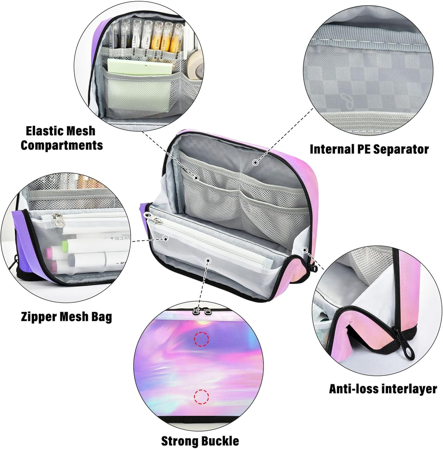 Struttura pieghevole e salvaspazio: l'astuccio con forniture utilizza chiusure magnetiche per trasformarsi in un supporto verticale, consentendo una rapida panoramica e una disposizione ordinata di strumenti o articoli di cancelleria Materiale affidabile: grazie al suo nylon impermeabile e antigraffio, il portamatite per ragazze rimane ordinato e intatto, adatto per stili di vita in movimento o studenti attivi Layout intelligente per riporre: tieni le tue forniture in ordine: la borsa per cosmetici per matite include uno scomparto principale, una tasca in rete con cerniera e uno slot aperto per separare e accedere agli oggetti con facilità Ideale per varie impostazioni: utilizza l'astuccio per ragazze per riporre oggetti artistici, oggetti personali o strumenti da ufficio, ideale per studenti, pendolari, artisti o chiunque sia in viaggio Ideale per occasioni speciali: l'astuccio con cerniera offre un tocco personale con stampe vivaci e personalizzazione opzionale, adatto per laurea, compleanni o rientro a scuola