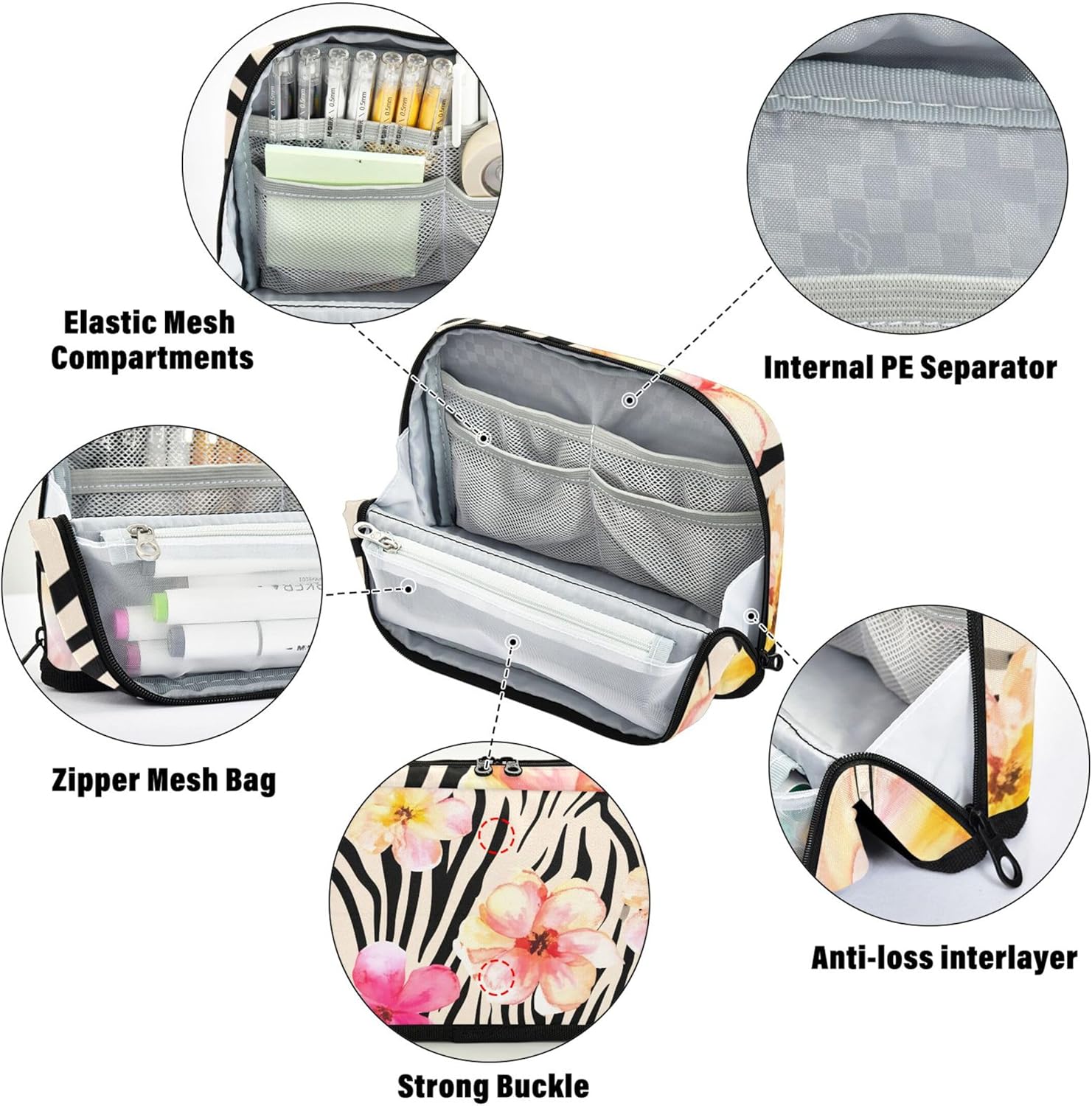 Modalità di supporto da scrivania: trasforma l'astuccio in un supporto compatto con una sola piega, risparmiando spazio e offrendo un facile accesso a tutti gli oggetti conservati durante l'uso Selezione intelligente del tessuto: l'astuccio con materiali di consumo è realizzato in robusto nylon che offre flessibilità e protezione, garantendo che gli strumenti quotidiani rimangano al sicuro senza aggiungere ingombro Spazio interno organizzato: i sacchetti per matite con cerniera offrono ampio spazio con più sezioni per contenere penne, gomme, foglietti adesivi, temperamatite e altri oggetti essenziali da scrivania in un unico posto Opzione di archiviazione universale: con il suo design elegante e adattabile, l'astuccio per ragazze funge da soluzione ideale per organizzare oggetti a casa, in ufficio o durante i viaggi Personalizzabile: con motivi vivaci e opzioni personalizzate per foto o testo, l'astuccio con cerniera diventa un regalo premuroso per studenti, creativi e viaggiatori frequenti