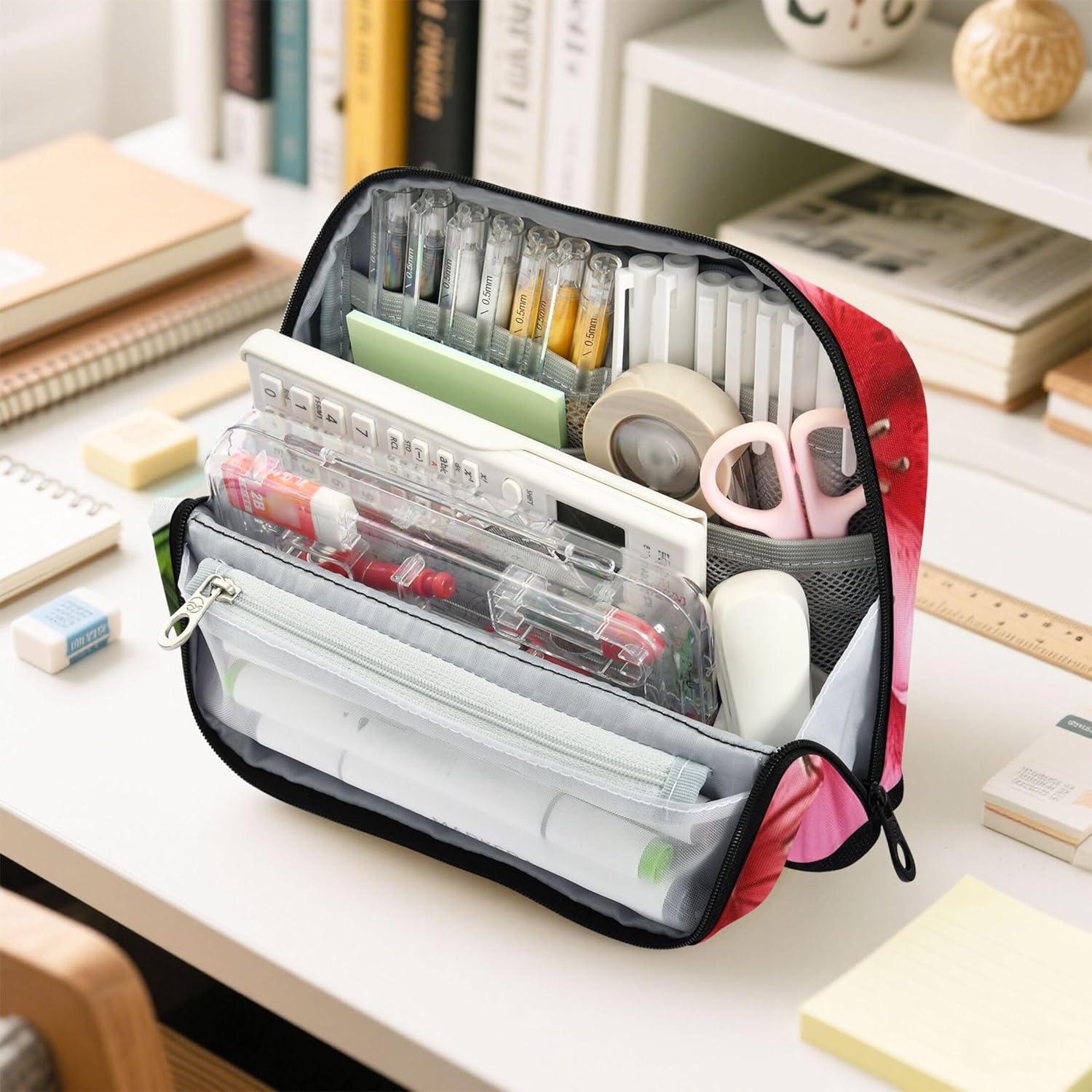 Funzionale design magnetico a scatto: ripiegare la borsa e lasciare che il magnete integrato lo mantenga stabile: l'astuccio con accessori si trasforma in un elegante ed efficiente organizer da scrivania in pochi secondi Materiale affidabile: grazie al suo nylon impermeabile e antigraffio, l'astuccio rosa rimane ordinato e intatto, adatto per stili di vita in movimento o studenti attivi Organizer tutto in uno: che si tratti di matite, temperamatite o foglietti adesivi, gli astucci riutilizzabili hanno scomparti per gestirli tutti, evitando il disordine e mantenendo le cose ordinate Opzione di archiviazione universale: con il suo design elegante e adattabile, l'astuccio con cerniera funge da soluzione ideale per organizzare oggetti a casa, in ufficio o durante i viaggi Facile da personalizzare: l'astuccio riutilizzabile per matite consente di aggiungere dettagli significativi come nomi o loghi, creando una custodia unica che funge anche da regalo elegante o dichiarazione personale
