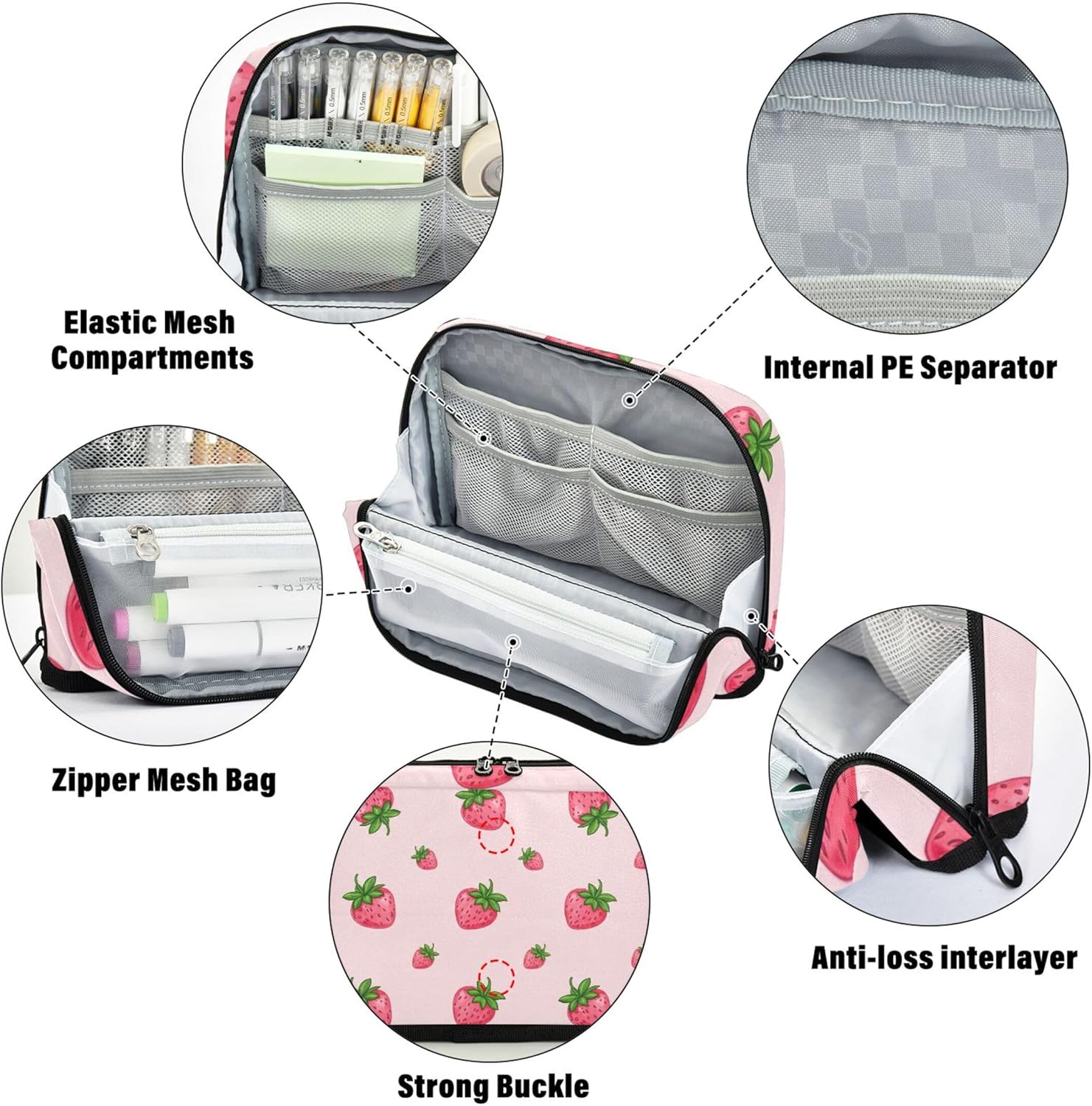 Pratico design autoportante: l'astuccio rosa carino si trasforma facilmente da una custodia con cerniera a un contenitore verticale da scrivania, aiutandoti a individuare rapidamente penne, strumenti o accessori a colpo d'occhio Resistente all'usura e lavabile: l'astuccio è realizzato in nylon di poliestere di alta qualità che resiste a graffi e macchie, offrendo allo stesso tempo un facile lavaggio a mano per una freschezza a lungo termine Organizer tutto in uno: che si tratti di matite, temperamatite o foglietti adesivi, l'astuccio rosa ha scomparti per gestirli tutti, evitando il disordine e mantenendo le cose ordinate Progettato per molteplici utilizzi: che tu stia andando a lezione o per un viaggio, gli astucci con cerniera si adattano facilmente come astuccio per il trucco, astuccio per penne o organizer per la giornata lavorativa Personalizzabile: con motivi vivaci e opzioni personalizzate per foto o testo, l'astuccio per ragazze diventa un regalo premuroso per studenti, creativi e viaggiatori frequenti