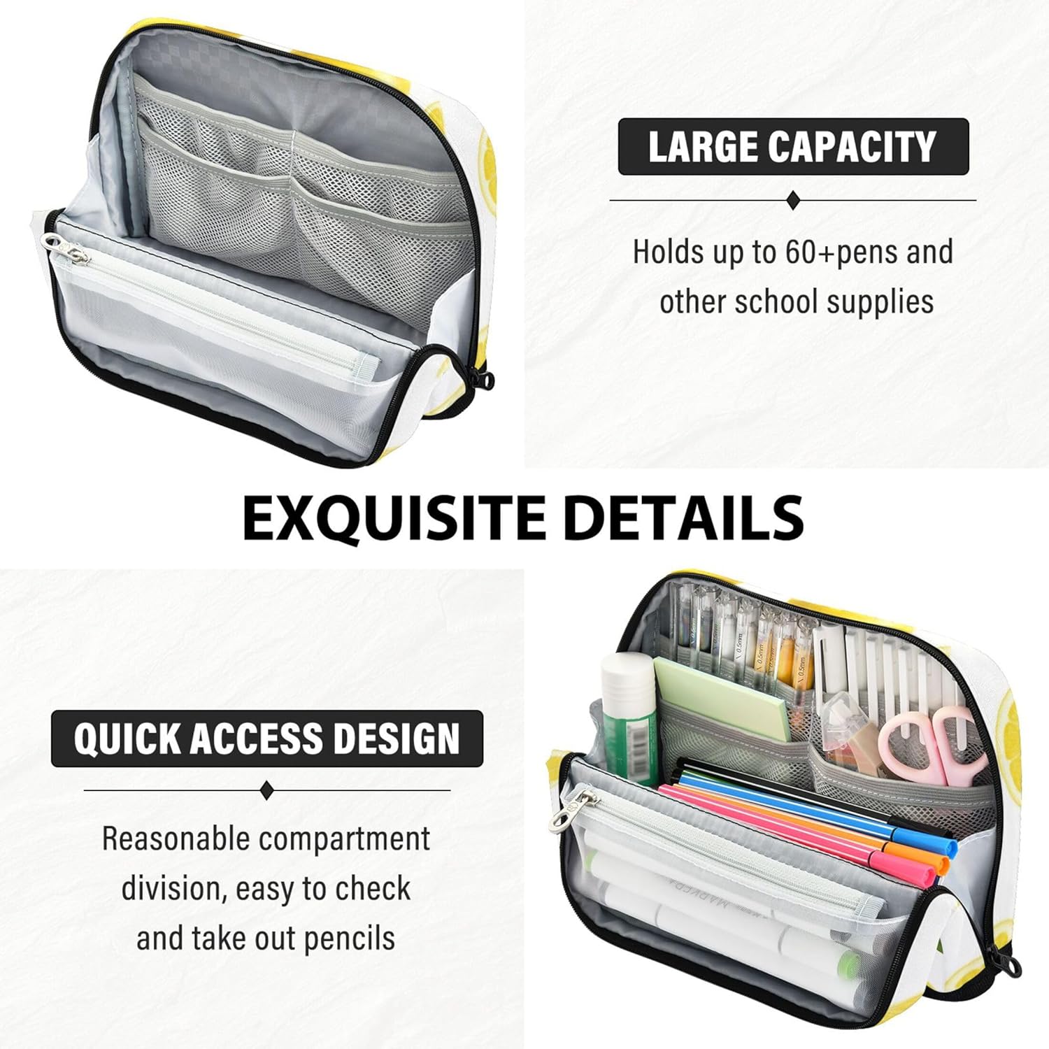 Struttura pieghevole e salvaspazio: la custodia per l'organizzazione della classe utilizza chiusure magnetiche per trasformarsi in un supporto verticale, consentendo una rapida panoramica e una disposizione ordinata di strumenti o articoli di cancelleria Materiale affidabile: grazie al suo nylon impermeabile e antigraffio, i simpatici astucci rimangono ordinati e intatti, adatti per stili di vita in movimento o studenti attivi Spazio interno organizzato: il simpatico astuccio offre ampio spazio con più sezioni per contenere penne, gomme, note adesive, temperamatite e altri oggetti essenziali da scrivania in un unico posto Compagno di archiviazione tutto in uno: l'astuccio con cerniera si adatta facilmente a borse da scuola o borse da viaggio, funge anche da custodia per articoli di scrittura, astuccio per cosmetici o porta gadget Personalizzabile: con motivi vivaci e opzioni personalizzate per foto o testo, la custodia per matite diventa un regalo premuroso per studenti, creativi e viaggiatori frequenti