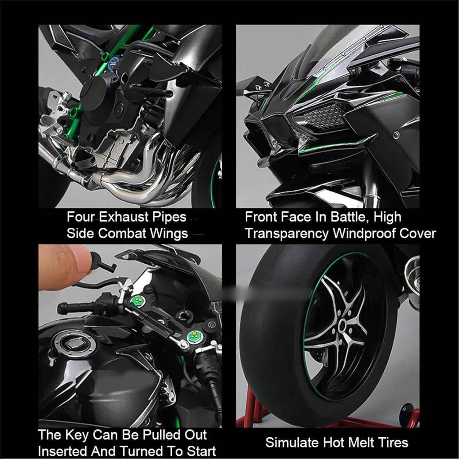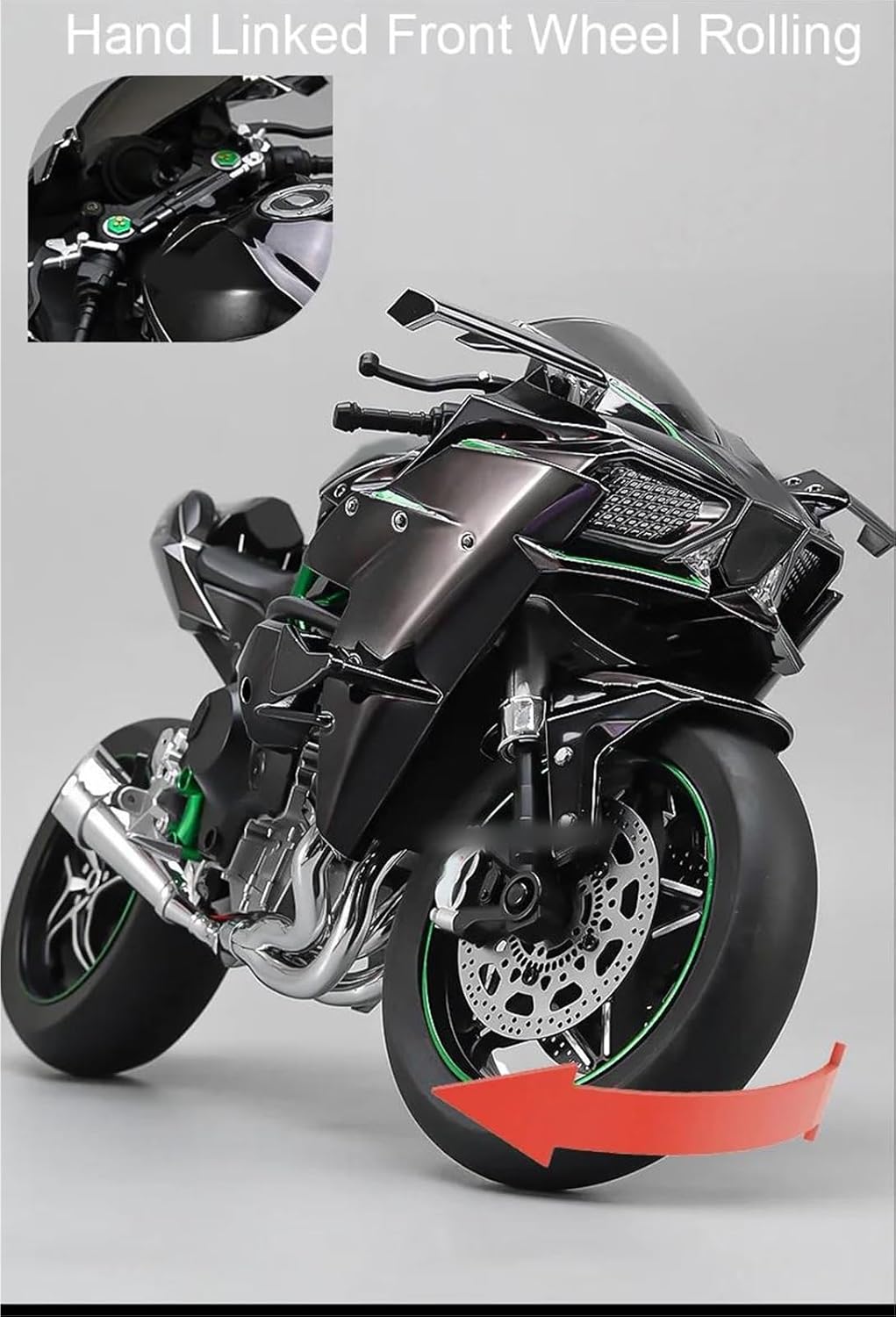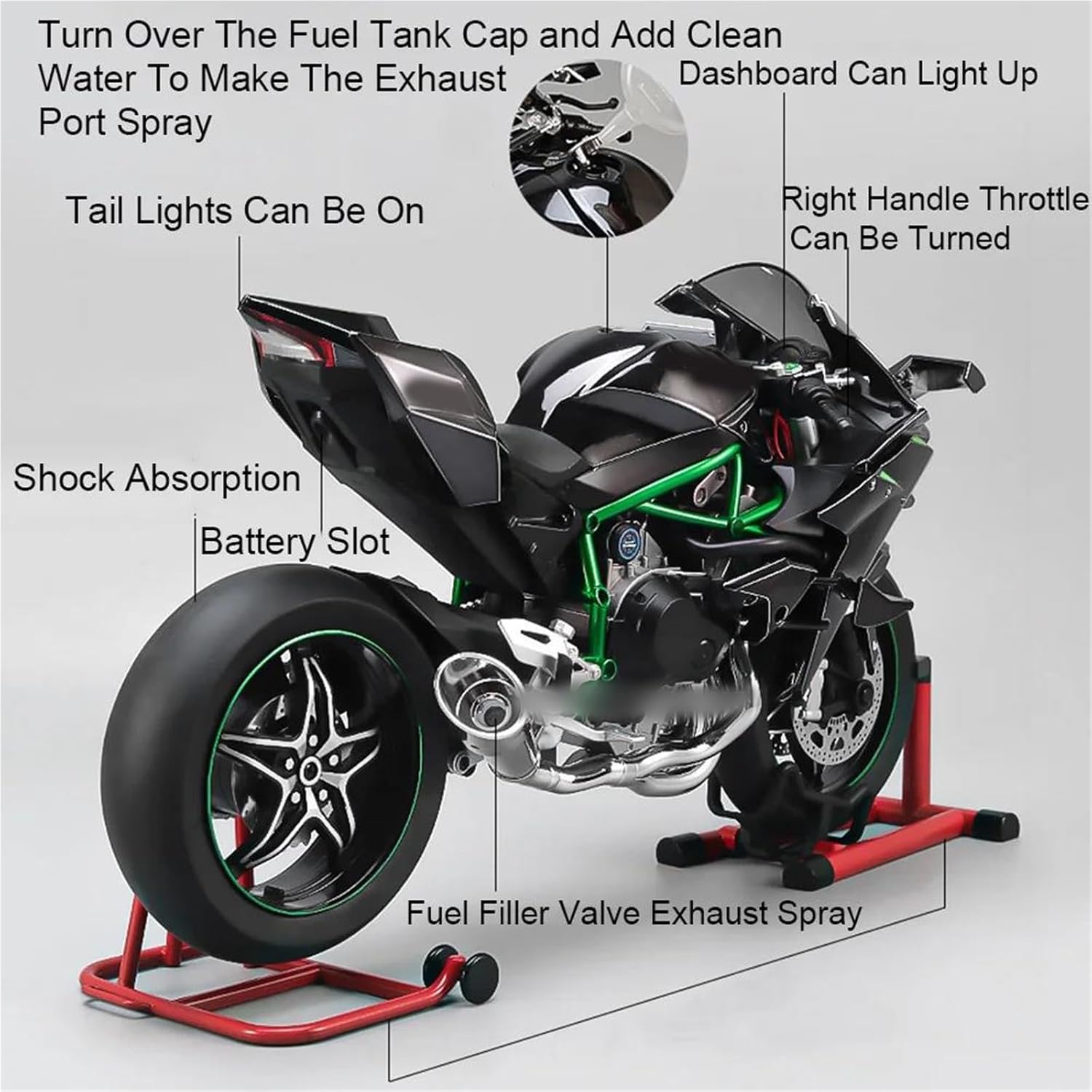 1:6 Moto Giocattolo Modello Auto Per H2R Modello Di Simulazione Auto, La Posizione Della Maniglia Sul Retro Del Corpo Del Prodotto Simula La Situazione Reale, E Girando L'acceleratore Può Produrre Un Effetto Di Collegamento Per Le Ruote Posteriori Per Iniziare A Ruotare. Dopo L'Installazione Delle Staffe Anteriore E Posteriore In Dotazione Nel Prodotto, Avviare Il Controllo Del Corpo E Premere L'acceleratore Per Ottenere La Rotazione Della Ruota Posteriore. Modello Di Moto Realizzato in resistente lega di zinco, è resistente alle cadute e all'usura, garantendo la durevolezza del modello e la sua lunga conservazione. La finitura della vernice è uniformemente liscia, con colori vivaci e duraturi che resistono allo sbiadimento e alle scheggiature, garantendo un aspetto costantemente brillante.
