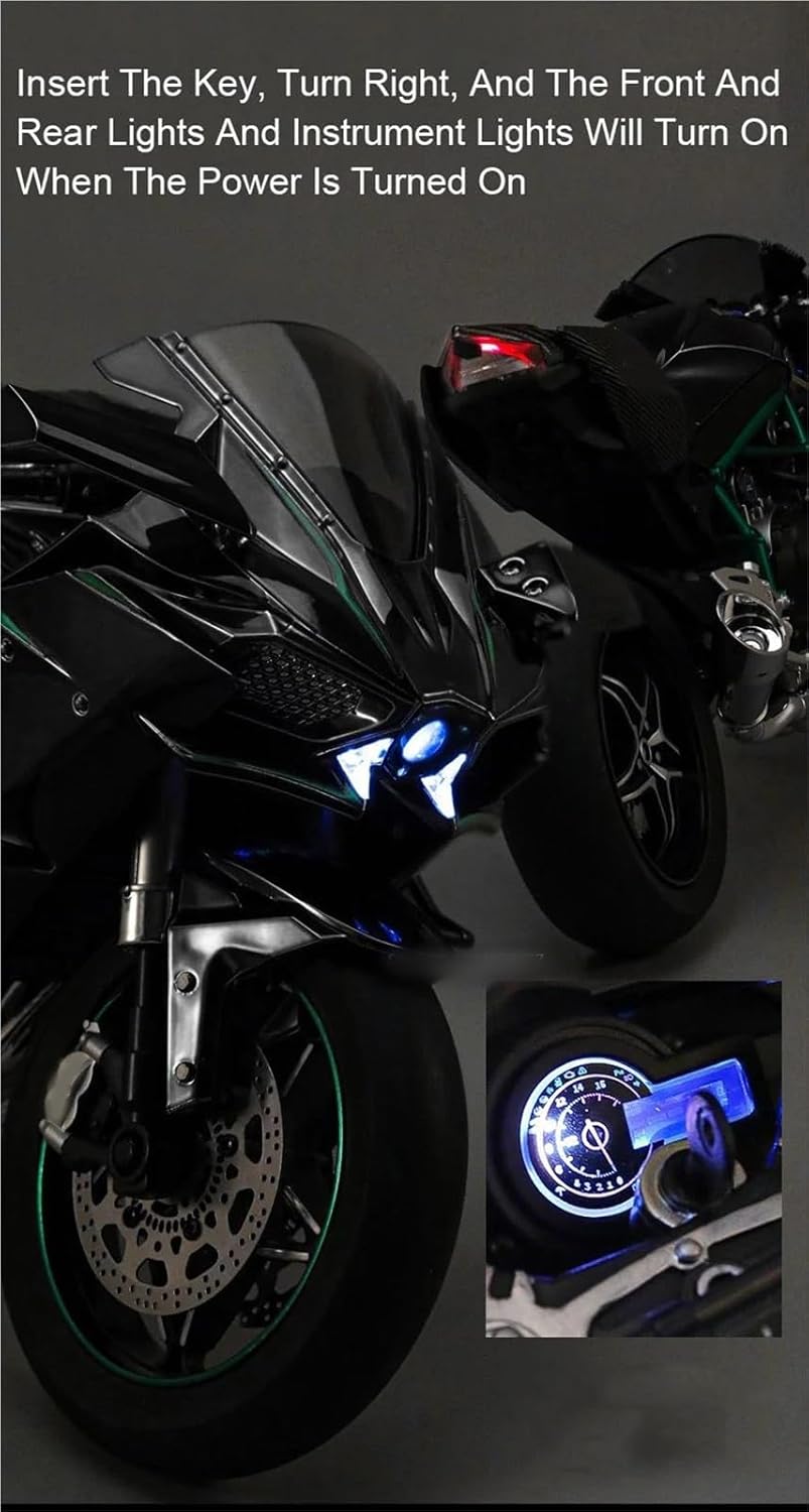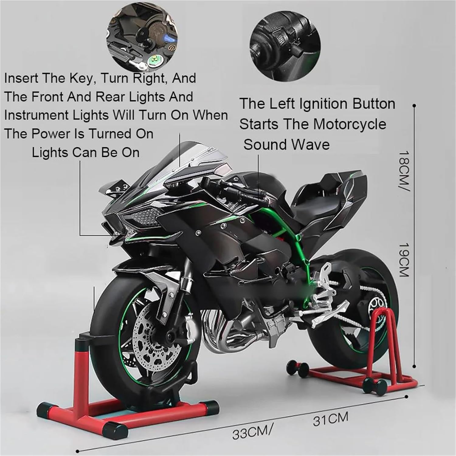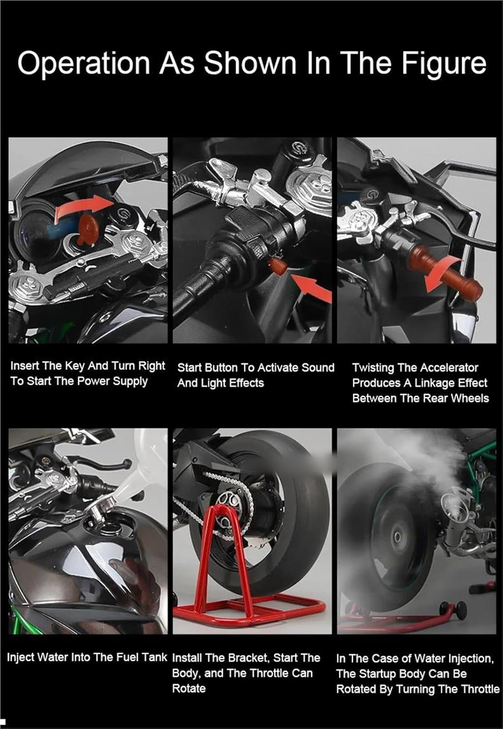 1:6 Moto Giocattolo Modello Auto Per H2R Modello Di Simulazione Auto, La Posizione Della Maniglia Sul Retro Del Corpo Del Prodotto Simula La Situazione Reale, E Girando L'acceleratore Può Produrre Un Effetto Di Collegamento Per Le Ruote Posteriori Per Iniziare A Ruotare. Dopo L'Installazione Delle Staffe Anteriore E Posteriore In Dotazione Nel Prodotto, Avviare Il Controllo Del Corpo E Premere L'acceleratore Per Ottenere La Rotazione Della Ruota Posteriore. Modello Di Moto Realizzato in resistente lega di zinco, è resistente alle cadute e all'usura, garantendo la durevolezza del modello e la sua lunga conservazione. La finitura della vernice è uniformemente liscia, con colori vivaci e duraturi che resistono allo sbiadimento e alle scheggiature, garantendo un aspetto costantemente brillante.