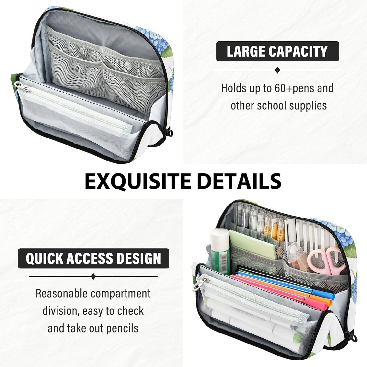 Modalità di supporto da scrivania: trasforma l'organizer per ragazze in un supporto compatto con una sola piega, risparmiando spazio e offrendo un facile accesso a tutti gli oggetti conservati durante l'uso Struttura protettiva e pratica: realizzato in nylon resistente, il grande astuccio per ragazze è progettato per resistere ai danni, rendendolo ideale per viaggi, scuola o spostamenti quotidiani Massimo spazio di archiviazione: il simpatico astuccio utilizza un layout interno intelligente con tasche multiple per contenere tutto, dagli strumenti di scrittura ai piccoli accessori in ordine Flessibile per diverse esigenze: la custodia impermeabile per matite funge da molto più di un semplice astuccio, riutilizzala come kit per il trucco quotidiano, borsa da viaggio o pratico contenitore da scrivania Ideale per occasioni speciali: l'astuccio per matite offre un tocco personale con stampe vivaci e personalizzazione opzionale, adatto per laurea, compleanni o rientro a scuola