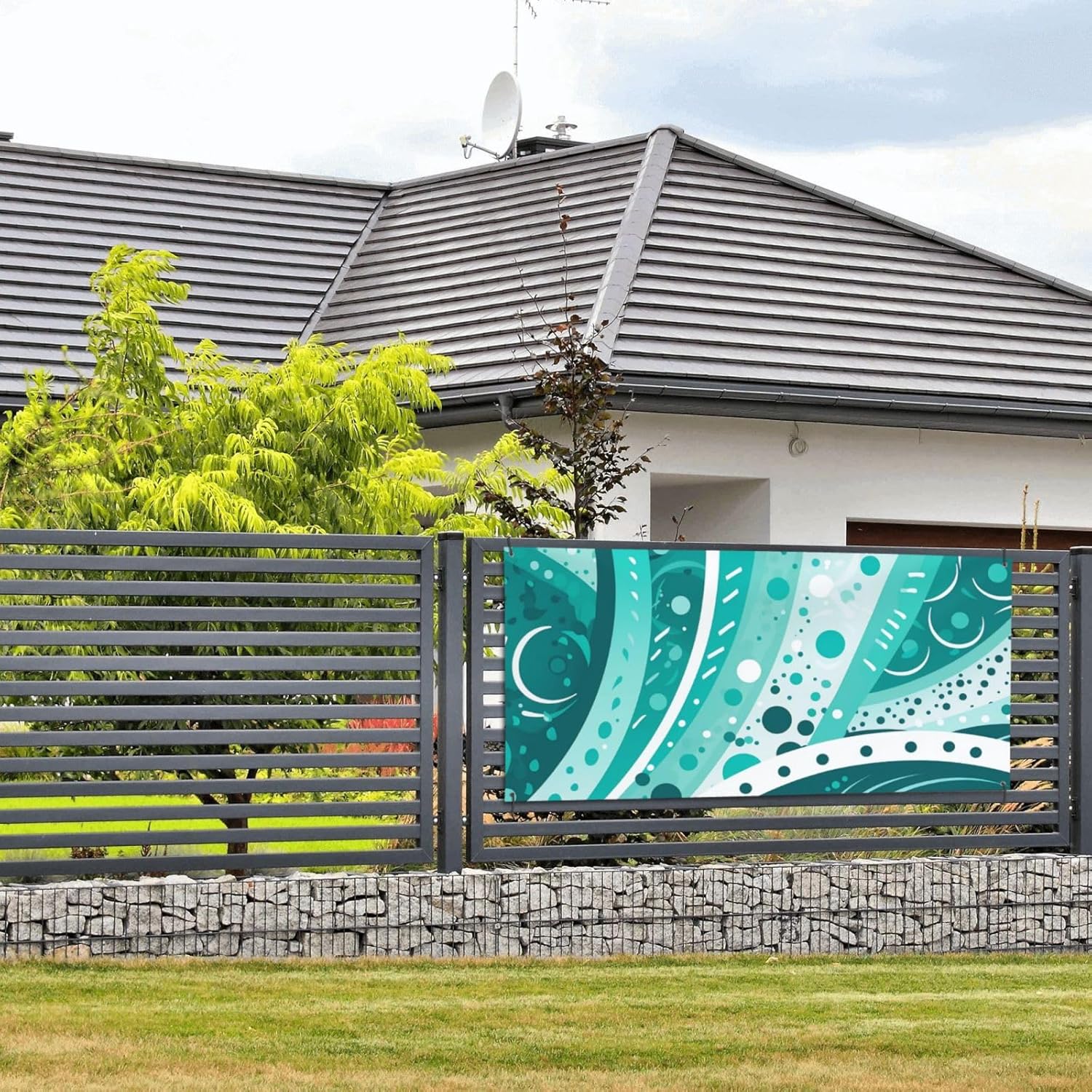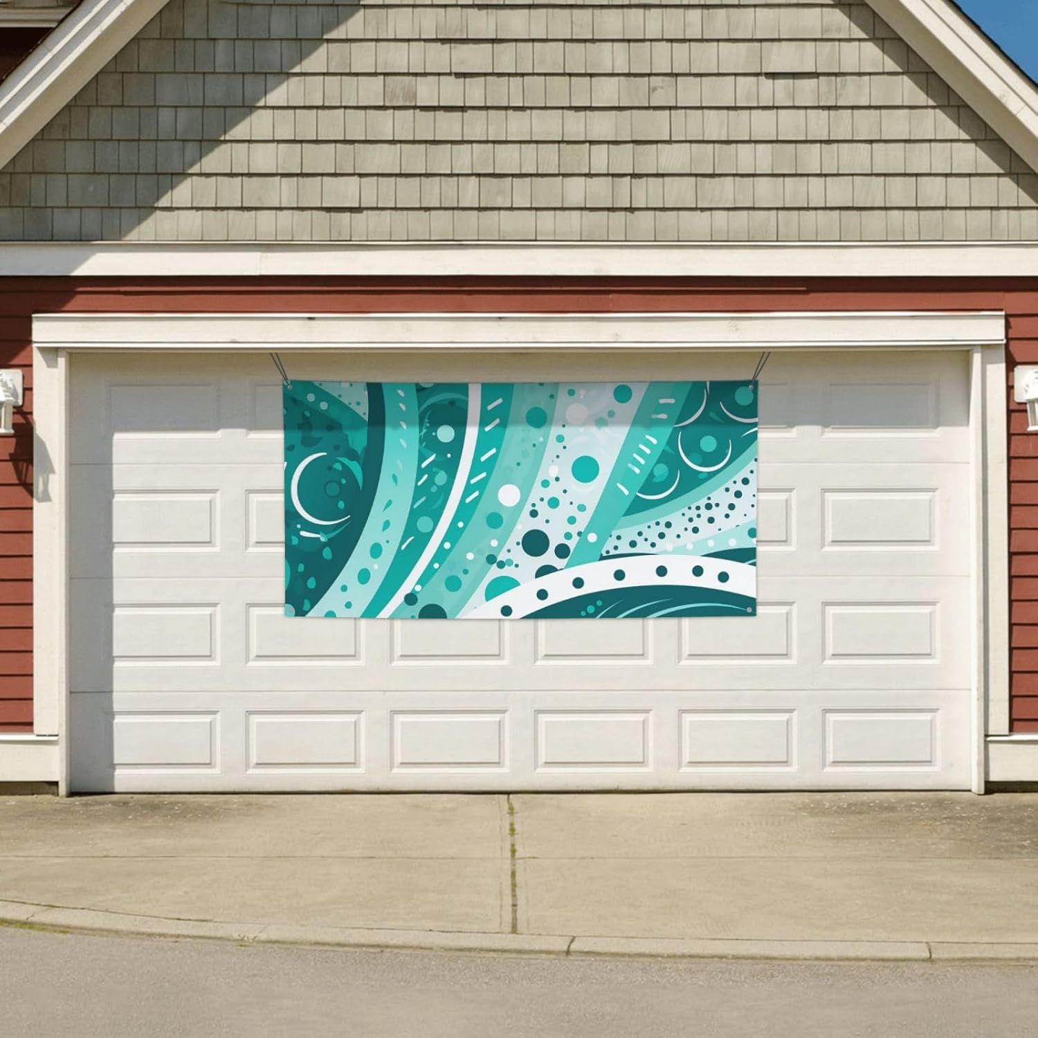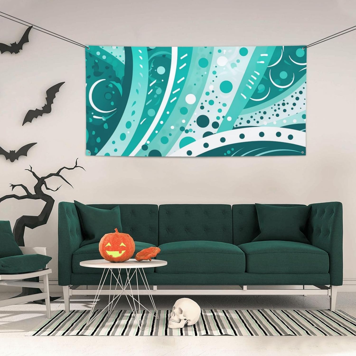 Grandi striscioni e cartelli con bandiere circolari turchesi e bianche - Striscione personalizzato per feste con corda sospesa per ufficio da parete per interni ed esterni, dimensioni ridotte