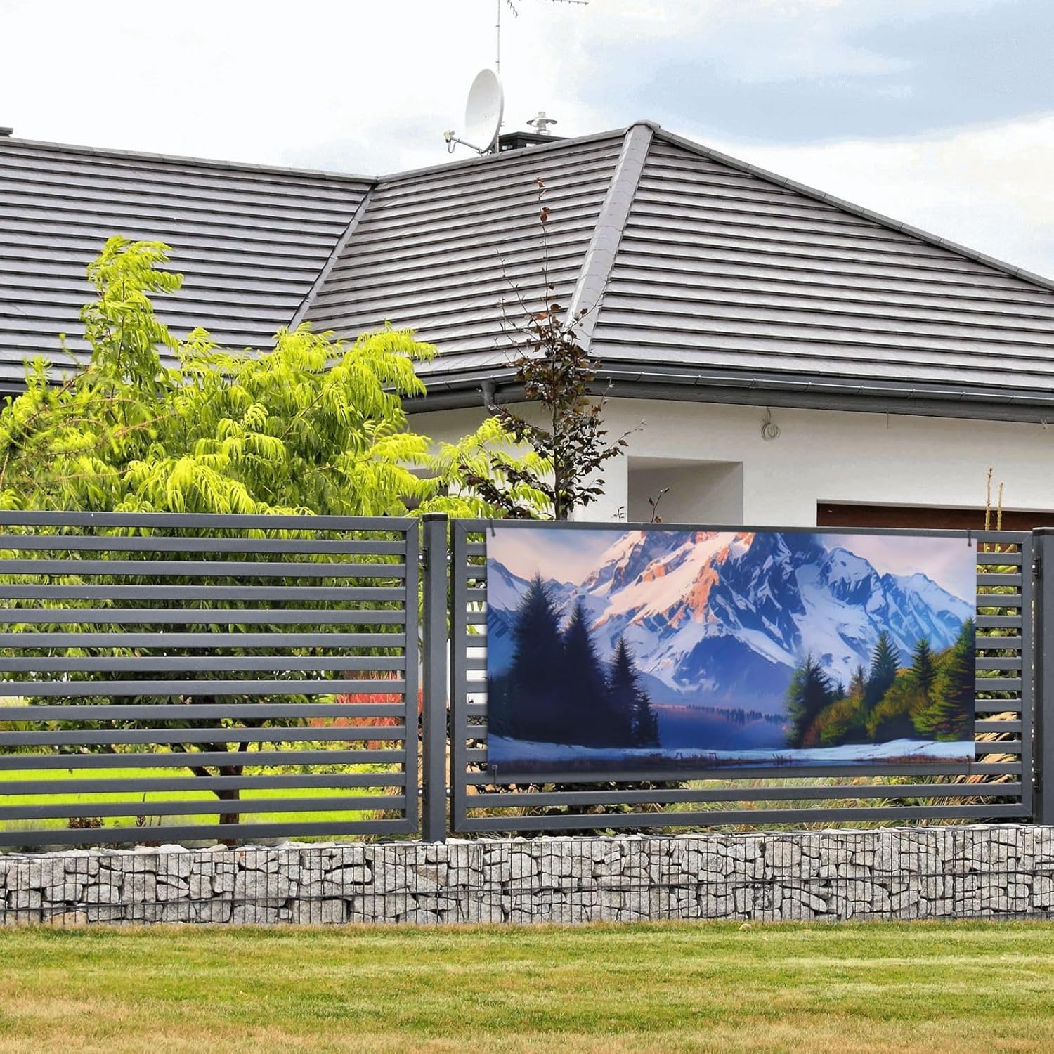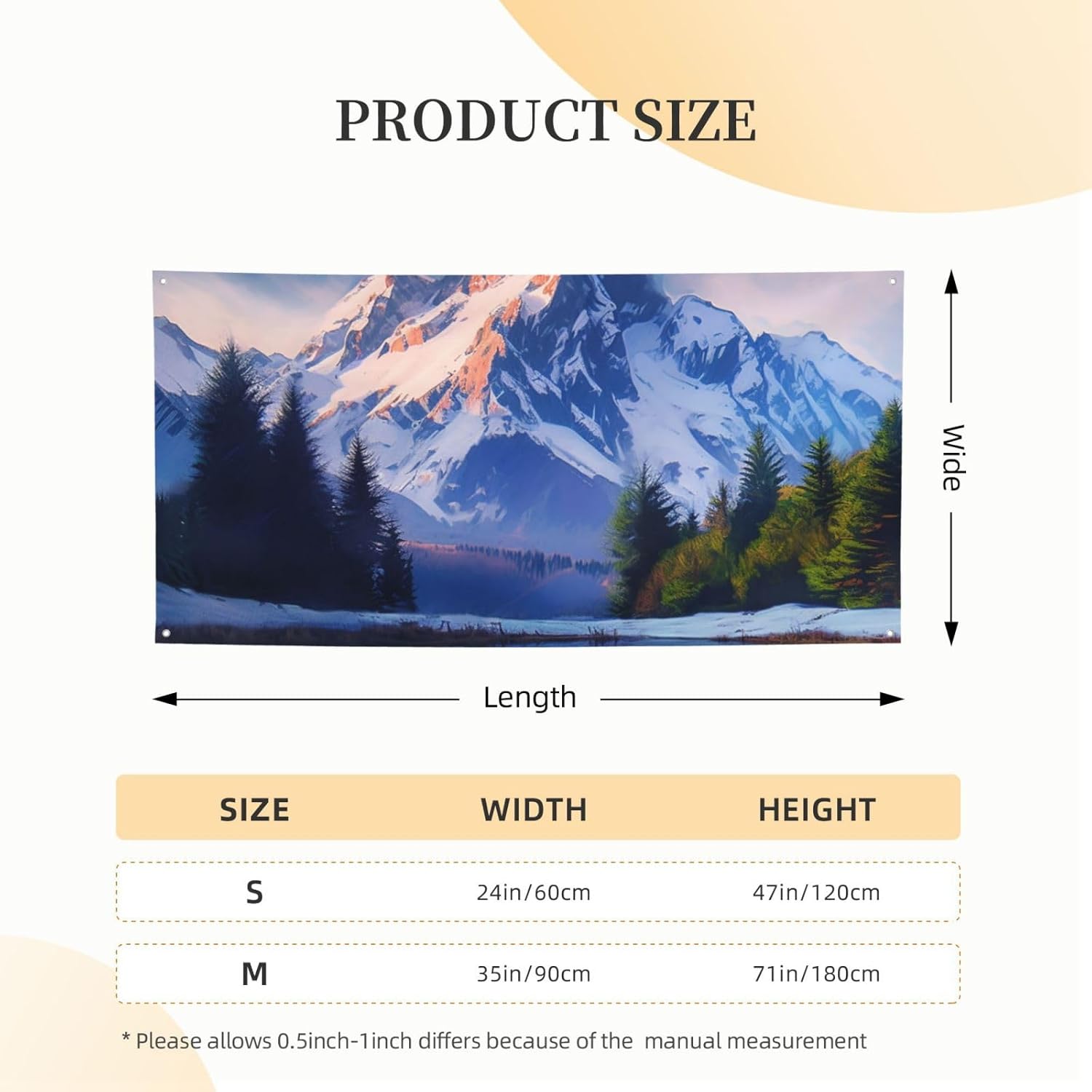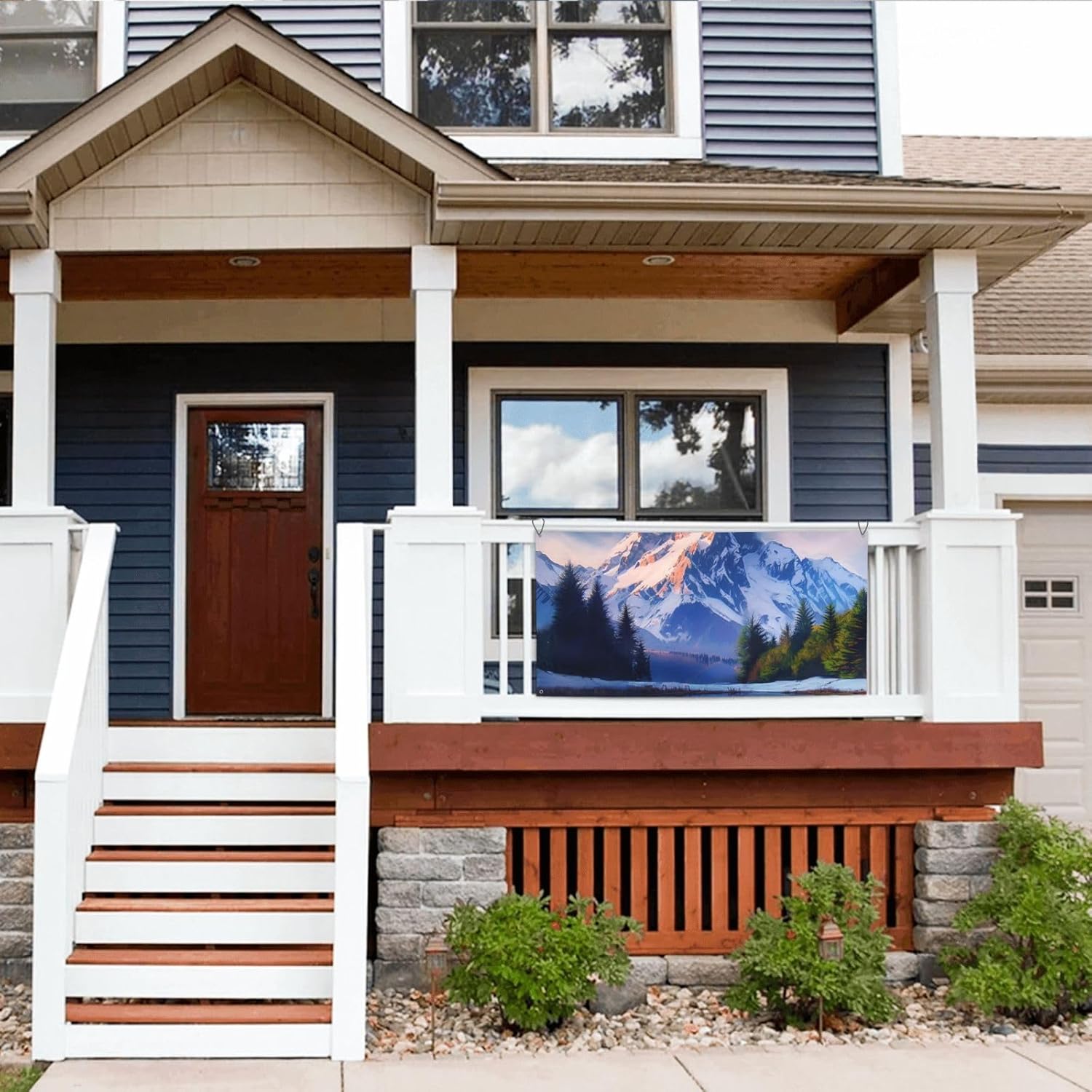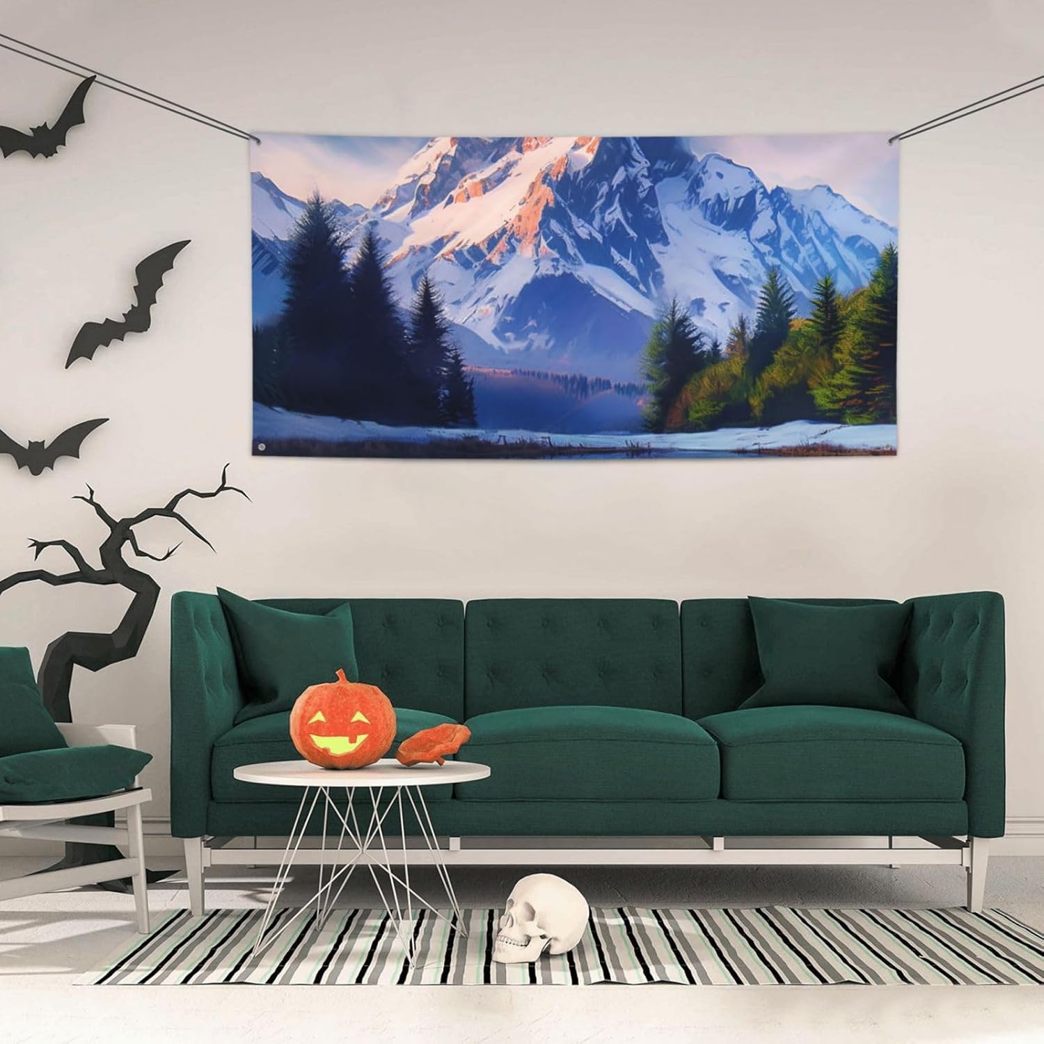Grandi striscioni e cartelli con bandiere delle montagne innevate - Striscione personalizzato per feste con corda sospesa per ufficio da parete per interni ed esterni, dimensioni ridotte