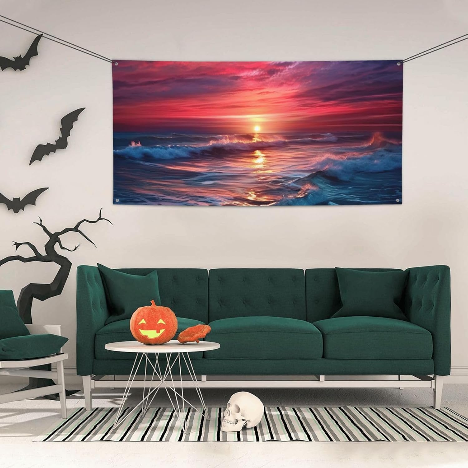 Grandi striscioni e cartelli con calde bandiere del crepuscolo - Striscione personalizzato per feste con corda sospesa per ufficio da parete per interni ed esterni, dimensioni ridotte