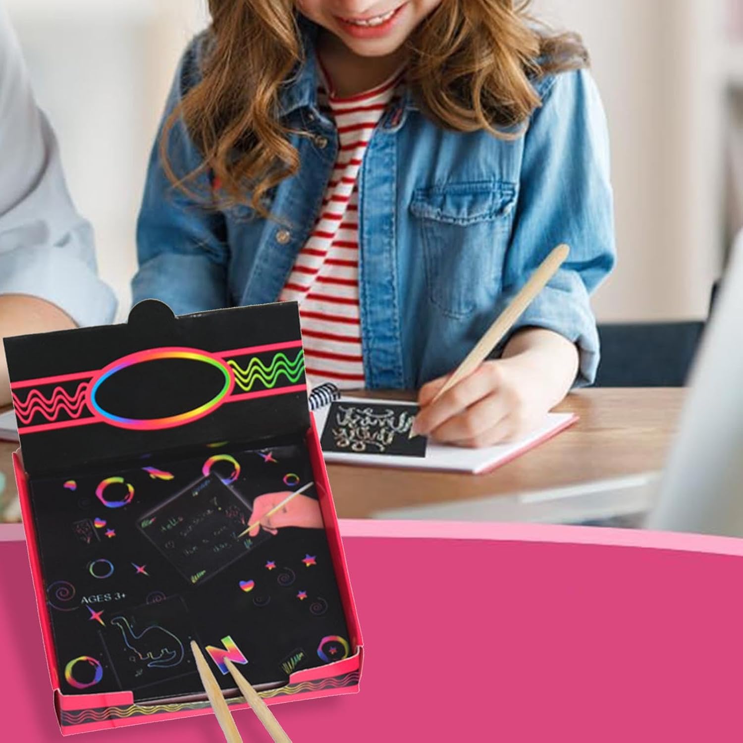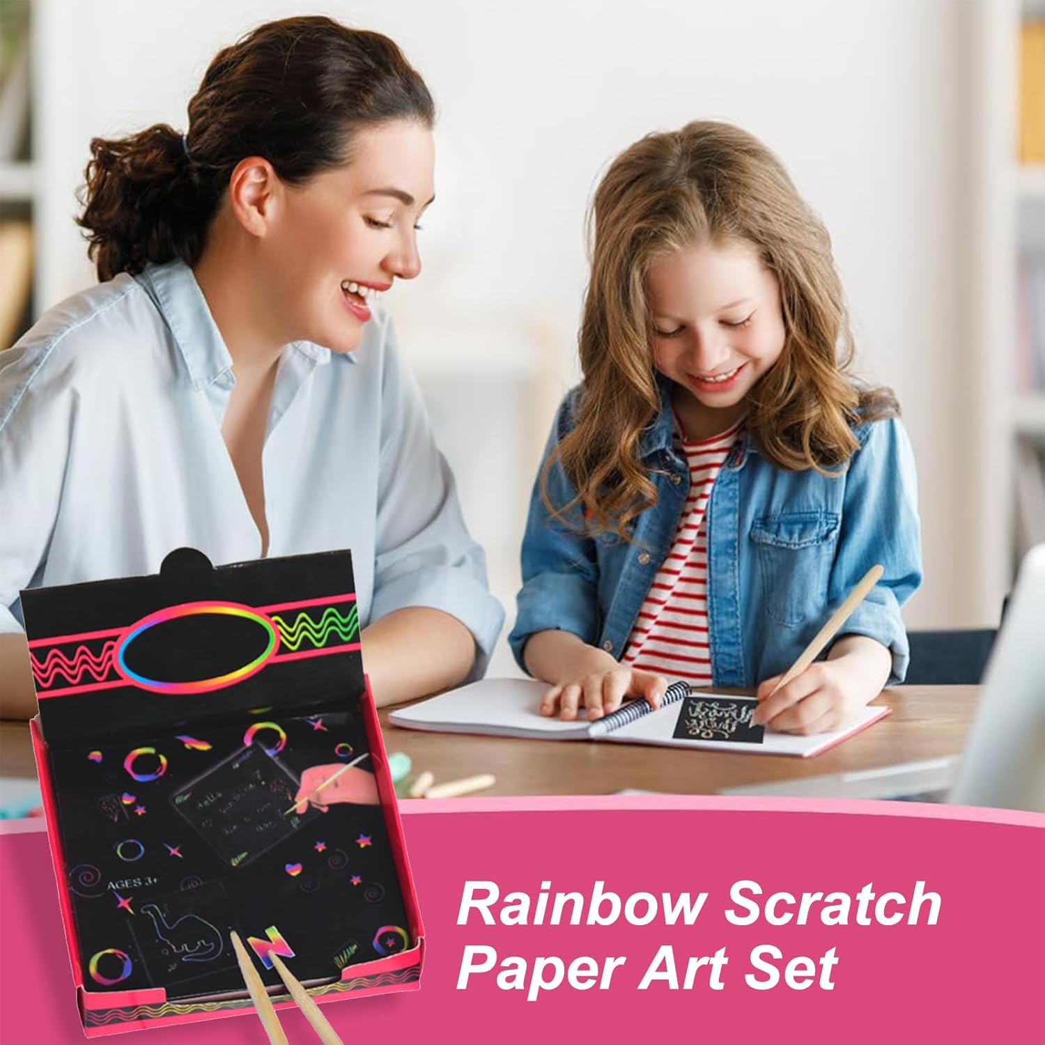 Kit completo: incoraggia i bambini a liberare la loro creatività con un kit completo di 100 fogli di carta e 2 penne che sviluppano progressivamente le loro abilità artistiche attraverso ore piene di divertimento di creazione incantevole. Ottimo materiale: con questa carta da grattare, i bambini possono far volare la loro immaginazione perché è realizzata in materiale di alta qualità che garantisce un uso duraturo. Sicuro per i bambini e impossibile da rompere, è perfetto per ulteriori progetti artistici. Migliora la creatività: promuove lo sviluppo educativo e migliora le capacità di disegno, l'immaginazione e la creatività dei bambini con Scratch Paper. Consentono loro di progettare forme affascinanti e colorate mentre coltivano il loro interesse per le arti. Connessione creativa: Con il nostro Scratch Paper, bambini e genitori possono godere insieme di un'esperienza interattiva e artistica, promuovendo un legame forte e creativo. Regalo ideale: ispira più creatività nei bambini e nelle ragazze di 3 anni con Scratch Paper: il regalo perfetto per il compleanno o le vacanze, che incoraggia l'immaginazione, migliora le capacità motorie e offre ore di divertimento.
