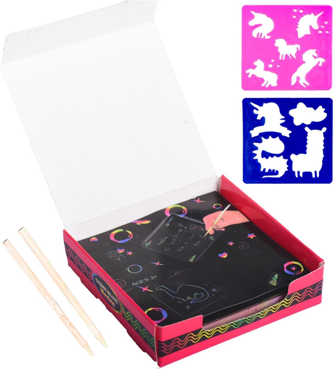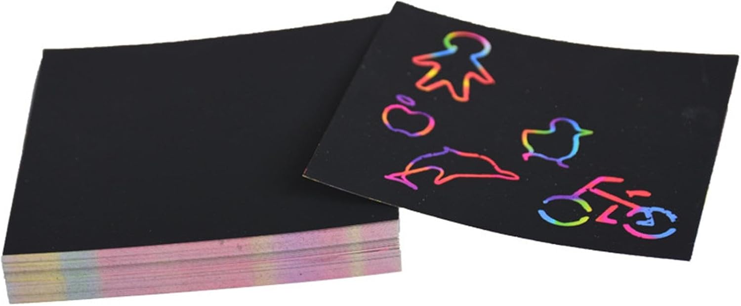 Kit completo: include 100 fogli di carta da grattare e 2 penne, consentendo ai bambini di divertirsi creando fantastiche opere d'arte, migliorando progressivamente la loro creatività e abilità artistiche. Ottimo materiale: goditi più creatività poiché questa carta da grattare è realizzata con materiali di alta qualità che manterranno i tuoi progetti ben mantenuti per lungo . Sicuro per i bambini e difficile da strappare, è la scelta ideale per ogni famiglia amante 'arte. Scintilla la creatività: stimola l'immaginazione di tuo figlio con Scratch Paper. Perfetto per lo sviluppo educativo, questo documento coltiva l'interesse artistico e aiuta i bambini a progettare creazioni belle e uniche. Divertimento in famiglia: il set interattivo di carta da grattare consente ai bambini di disegnare e giocare con i genitori, aumentando la creatività e rafforzando i legami. Regalo perfetto: porta gioia ai bambini e alle bambine di 3 anni con Scratch Paper: promuove la creatività, migliora le capacità motorie e offre ore di intrattenimento, perfetto per regali di compleanno o per le vacanze.