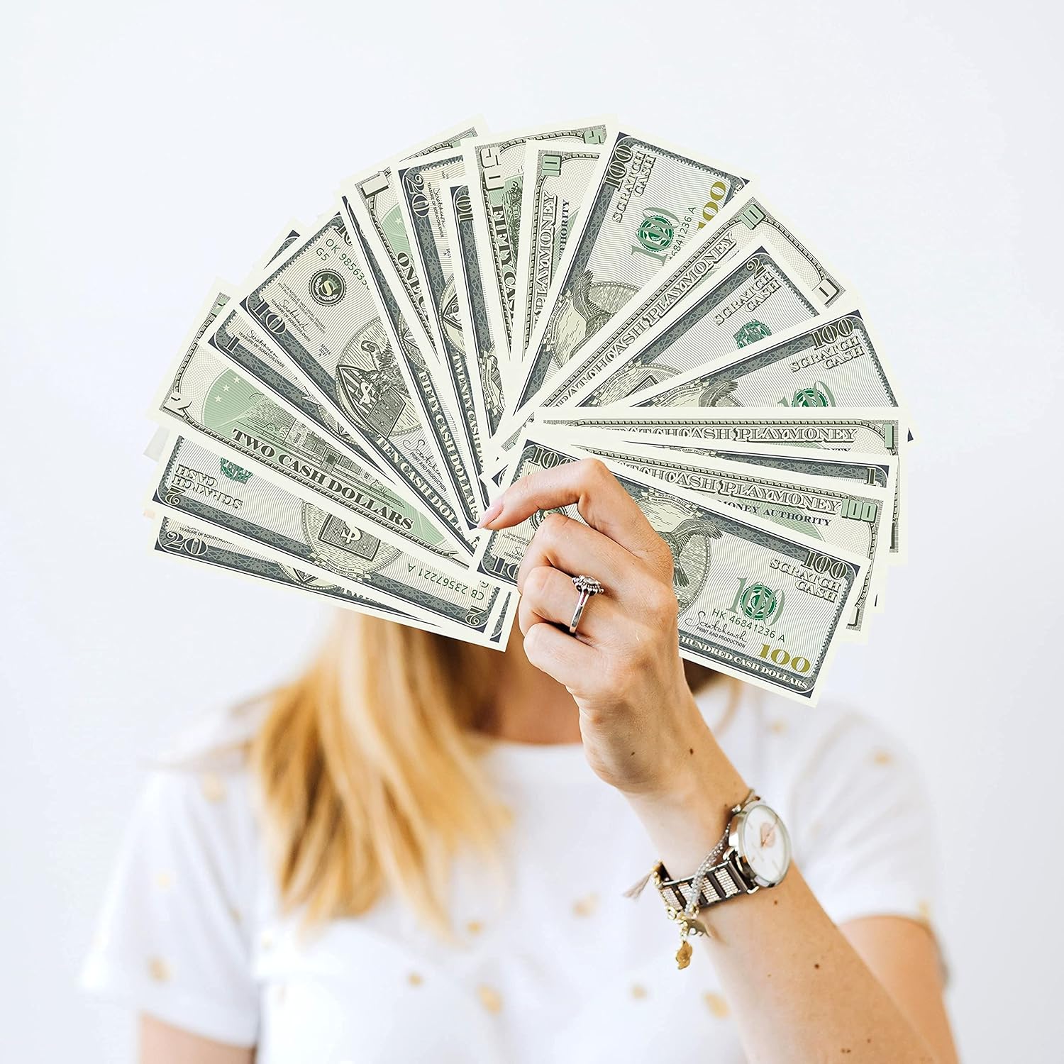 Ogni confezione contiene 100 x 100 banconote false Scratch Cash New Style. Le banconote sono nel formato originale in dollari. Le banconote sono stampate su entrambi i lati.