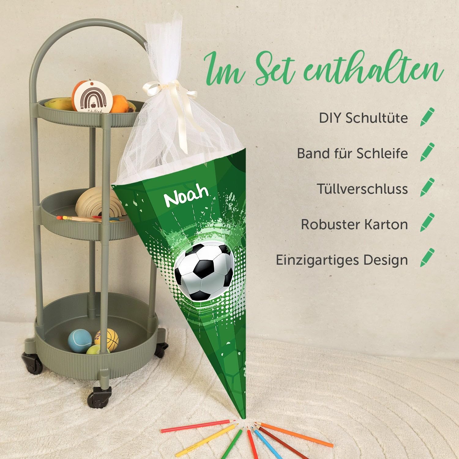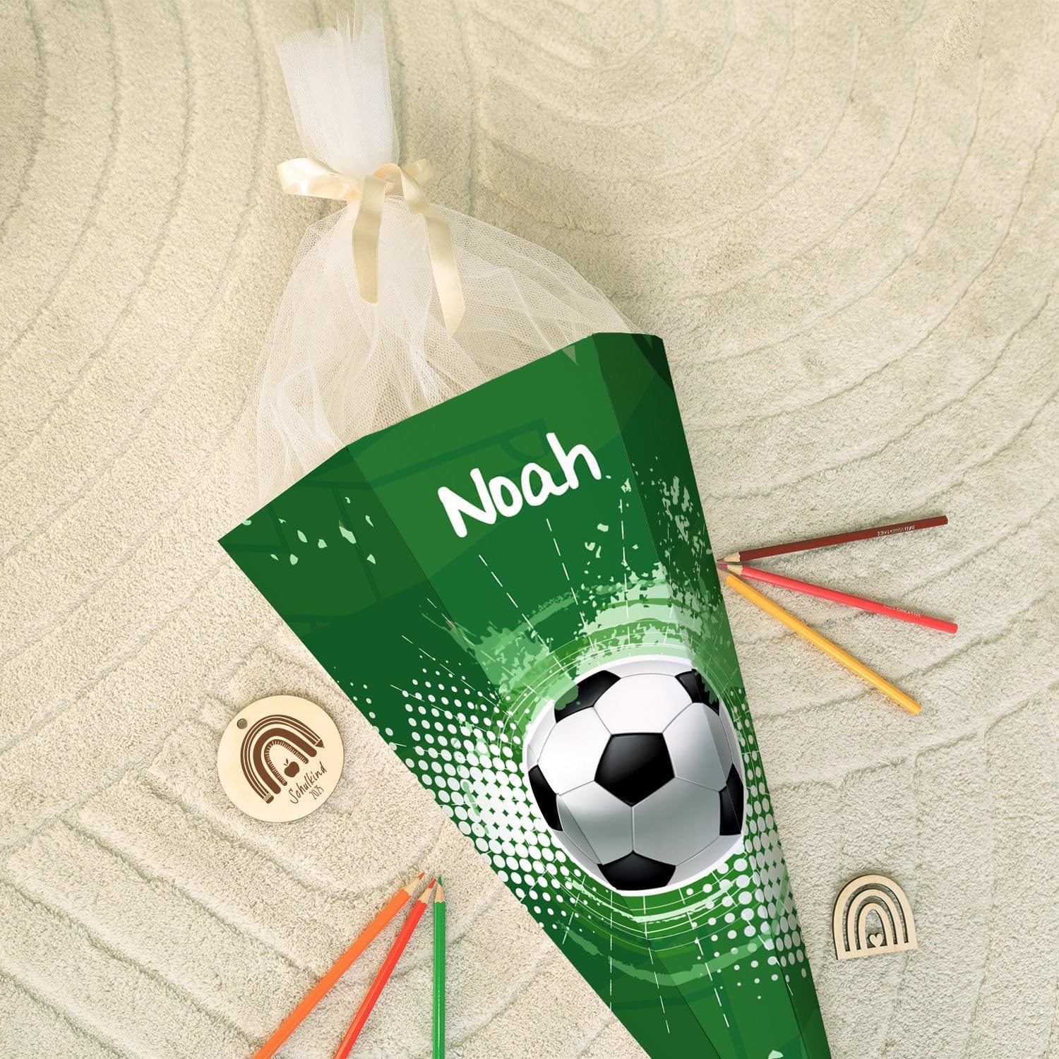 Stampa dai colori vivaci: l'inizio della scuola si avvicina sempre più e i nostri sacchetti personalizzati portano colore e fantasia nel primo giorno di scuola! Che si tratti di dinosauri, unicorni o colori neutri: nella nostra selezione di motivi c'è qualcosa per ogni principiante della scuola Personalizzato con il nome: ogni cono viene stampato individualmente e con il nome desiderato, creando così un ricordo unico e personale per l'inizio della scuola Pratico e adatto ai bambini: il cono per la scuola è robusto, piacevolmente leggero e grazie alla sua forma esagonale particolarmente facile da impugnare. La chiusura in tulle abbinata conferisce un aspetto festoso e mantiene il contenuto in modo sicuro Dimensioni: con una dimensione di circa 61 × 28 cm e una capacità di circa 2,8 litri, il sacchetto offre spazio sufficiente per piccoli regali o accessori scolastici. Realizzato in robusto cartone da 400 g/m², il sacchetto è robusto, ma allo stesso tempo piacevolmente leggero Servizio di qualità: ordinate oggi stesso e convincetevi della qualità di prima classe e della spedizione rapida. Se avete ancora domande sui nostri prodotti o una consegna non corrisponde alle vostre esigenze, siamo a vostra disposizione sia telefonicamente che via e-mail con consigli e fatti