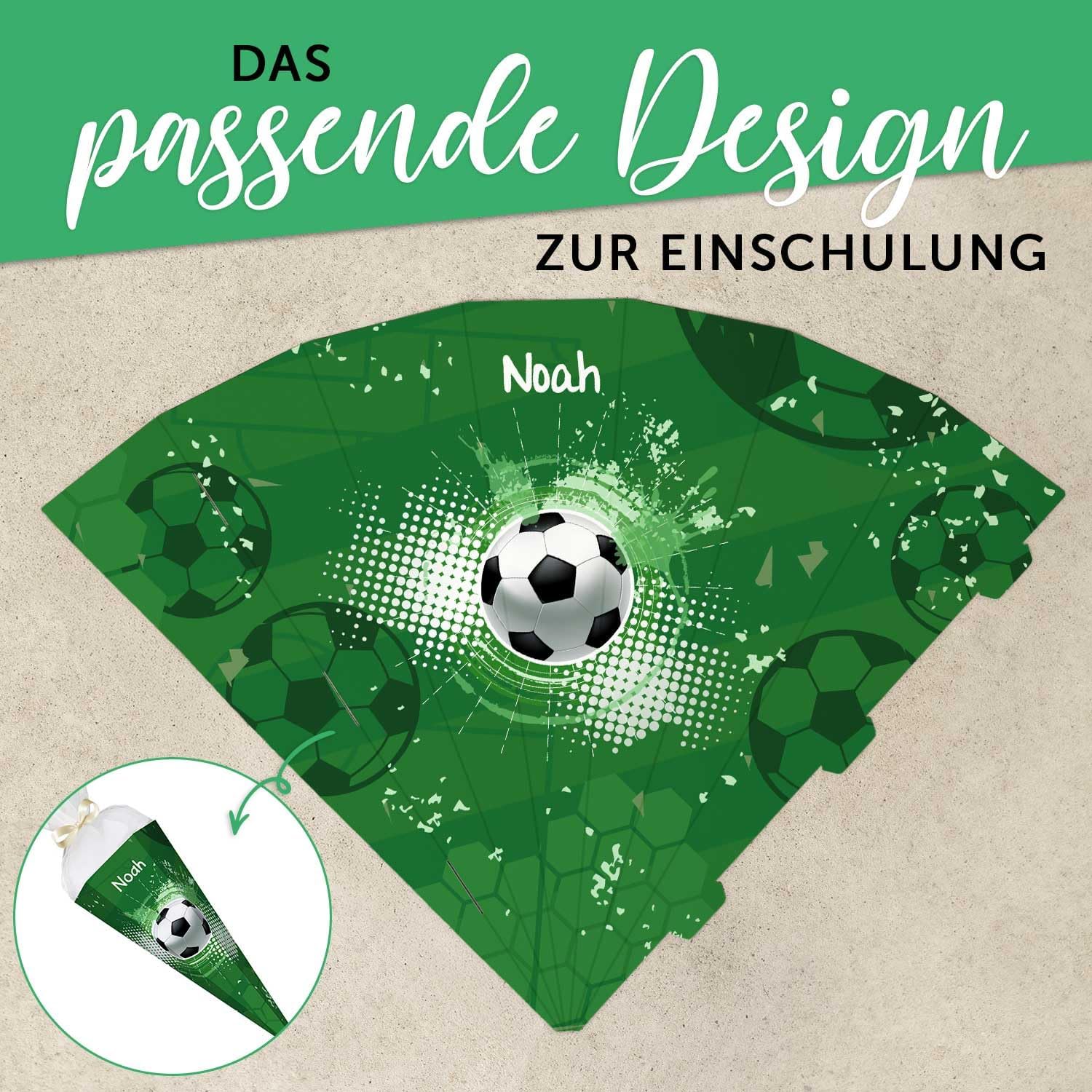 GRAVURZEILE - Sacchetto per la scuola stampato - Calcio - Personalizzato con nome - Regalo per la scuola - Sacchetto di zucchero esagonale per ragazzi e ragazze - 61 cm con chiusura in tulle - Colore