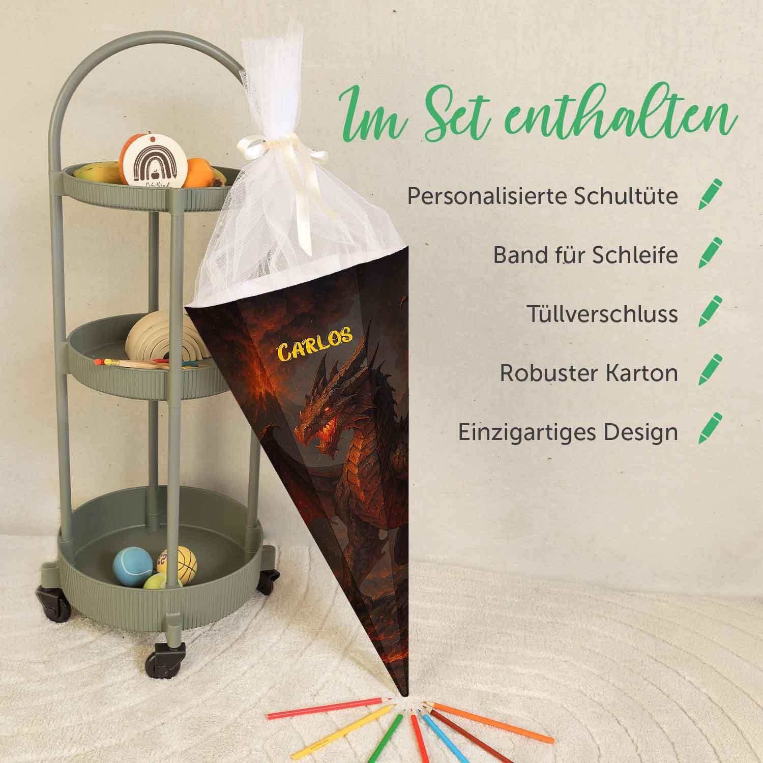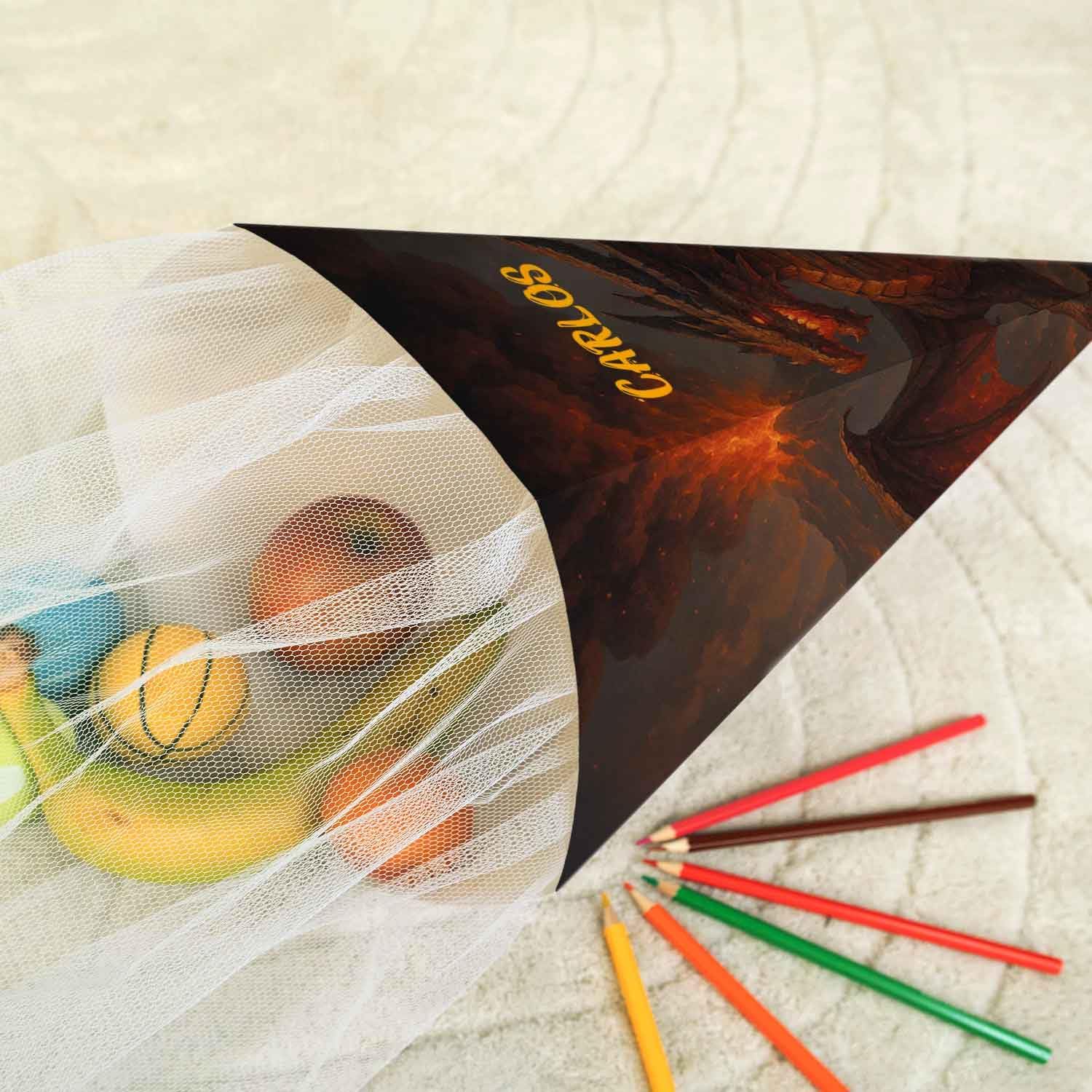 Stampa dai colori vivaci: l'inizio della scuola si avvicina sempre più e i nostri sacchetti personalizzati portano colore e fantasia nel primo giorno di scuola! Che si tratti di dinosauri, unicorni o colori neutri: nella nostra selezione di motivi c'è qualcosa per ogni principiante della scuola Personalizzato con il nome: ogni cono viene stampato individualmente e con il nome desiderato, creando così un ricordo unico e personale per l'inizio della scuola Pratico e adatto ai bambini: il cono per la scuola è robusto, piacevolmente leggero e grazie alla sua forma esagonale particolarmente facile da impugnare. La chiusura in tulle abbinata conferisce un aspetto festoso e mantiene il contenuto in modo sicuro Dimensioni: con una dimensione di circa 61 × 28 cm e una capacità di circa 2,8 litri, il sacchetto offre spazio sufficiente per piccoli regali o accessori scolastici. Realizzato in robusto cartone da 400 g/m², il sacchetto è robusto, ma allo stesso tempo piacevolmente leggero Servizio di qualità: ordinate oggi stesso e convincetevi della qualità di prima classe e della spedizione rapida. Se avete ancora domande sui nostri prodotti o una consegna non corrisponde alle vostre esigenze, siamo a vostra disposizione sia telefonicamente che via e-mail con consigli e fatti