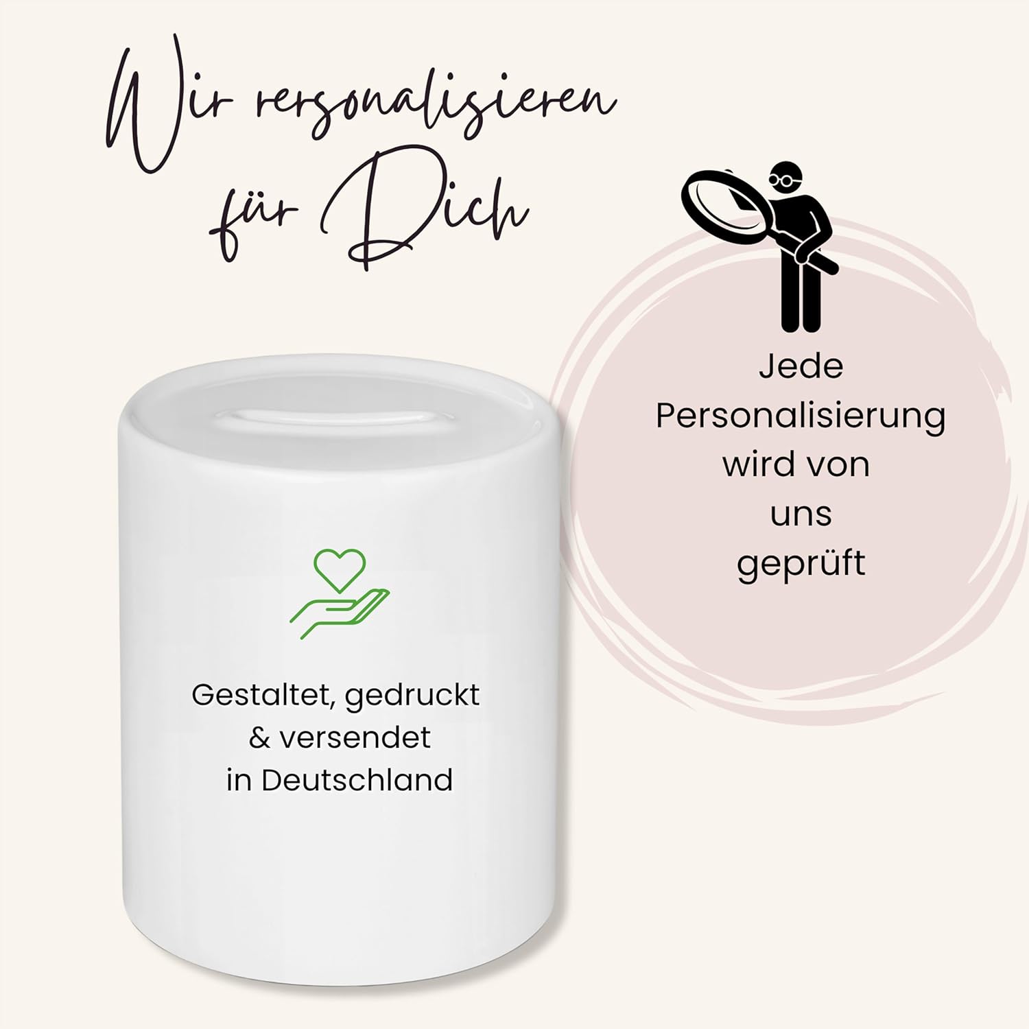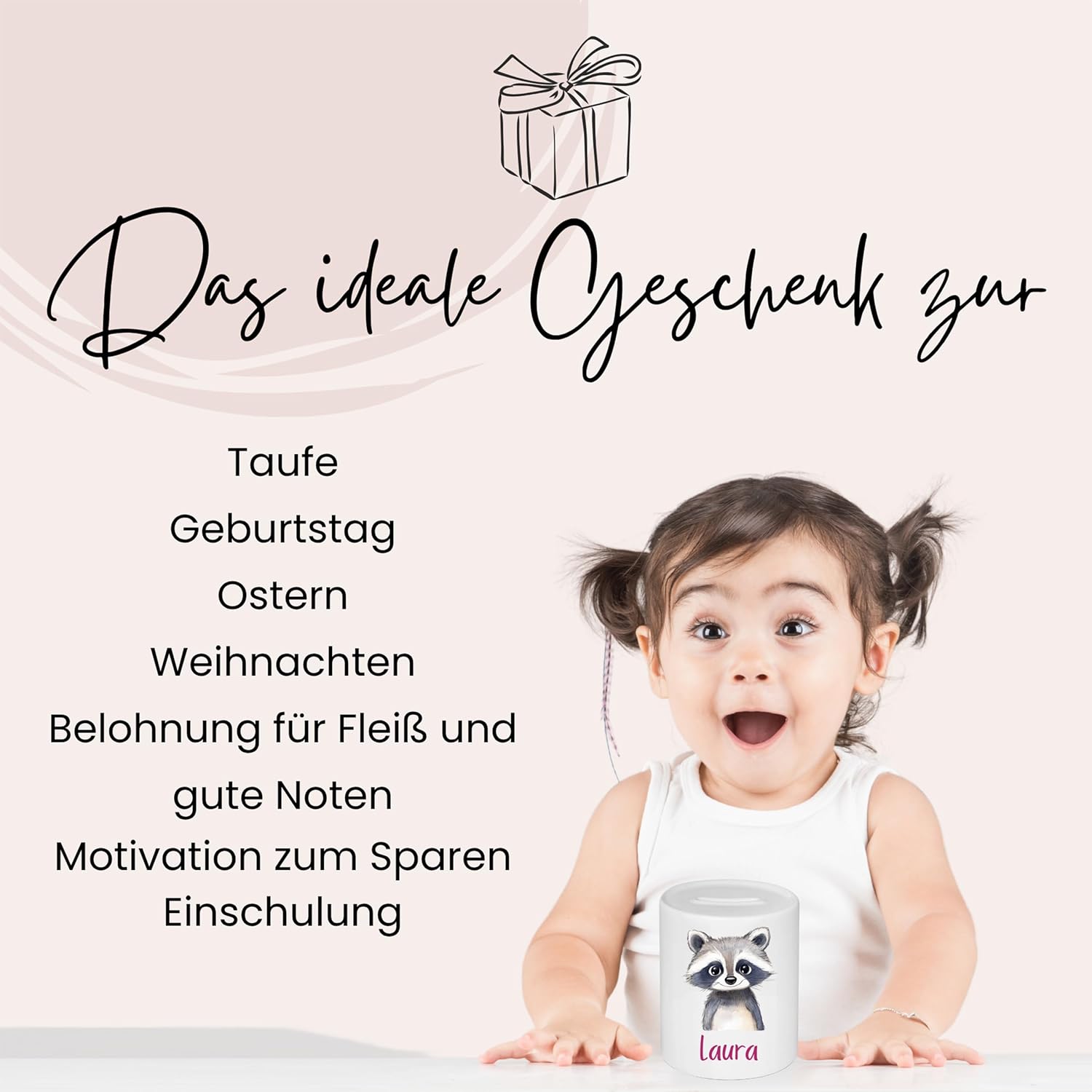 Personalizzabile individualmente: Con il tuo nome e un simpatico motivo di animali Ceramica di alta qualità: Superficie lucida, resistente e stabile Chiusura pratica: Il denaro può essere rimosso senza danni Uso versatile: Per bambini, amanti degli animali e come decorazione Ottimo regalo: Perfetto per compleanni, Natale o battesimi Direttamente dal produttore: Produzione interna e aperto a richieste speciali - basta chiedere