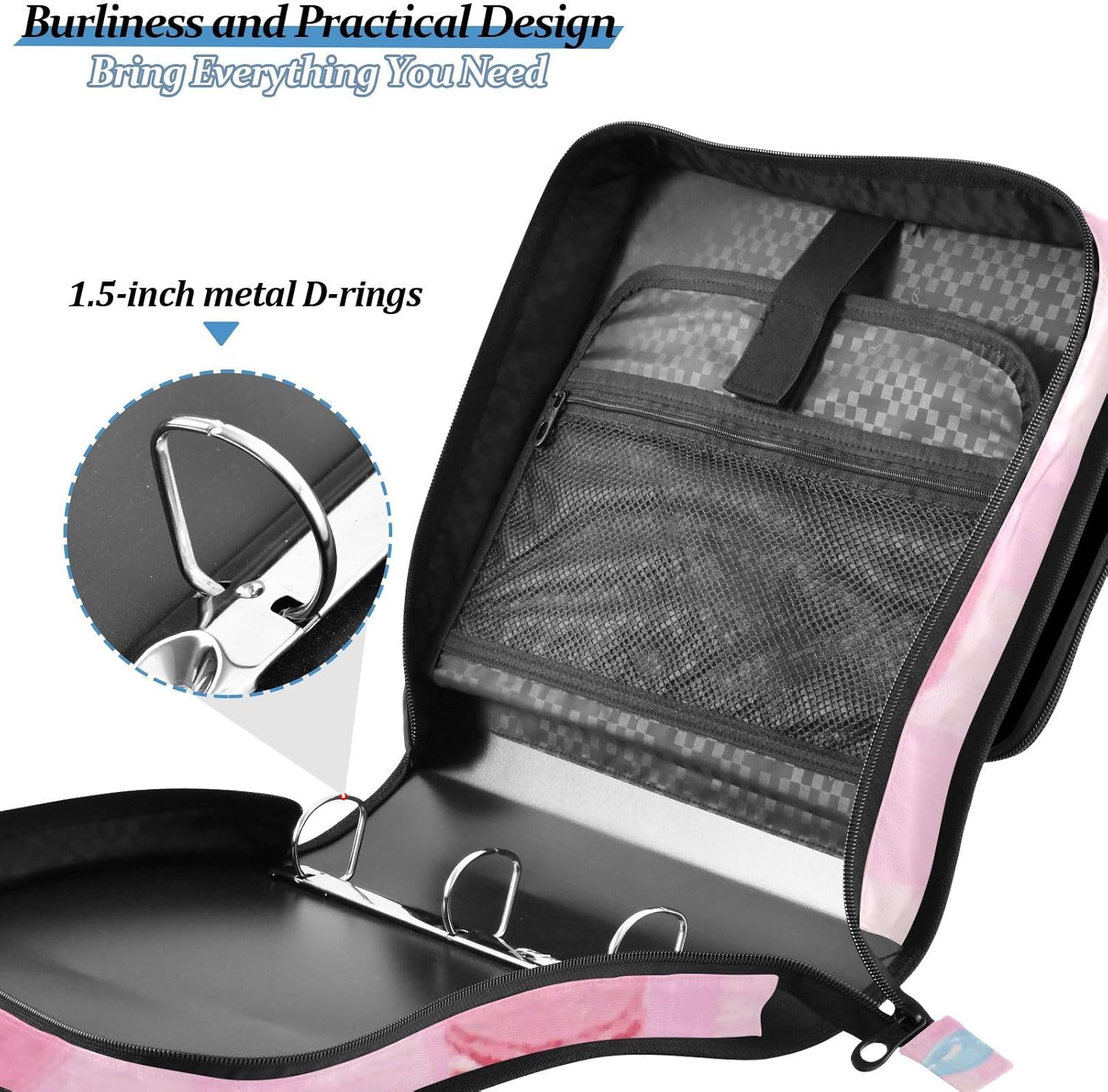 Materiale di alta qualità: il raccoglitore con cerniera è realizzato in tessuto di nylon e resistente agli strappi. Realizzato con tessuto impermeabile che scrolla le spalle a fuoriuscite e pioggia leggera, garantendo durata per gli spostamenti quotidiani. Massimo spazio di archiviazione: dotato di una grande tasca con cerniera per riporre utensili da scrittura, calcolatrici e altri oggetti. La tasca in rete trasparente assicura che gli oggetti conservati siano facilmente visibili a colpo d'occhio. Un'ulteriore tasca frontale offre spazio flessibile per riporre comodamente gli oggetti. Elegante e funzionale: il design a sezione divisa della cartella separa il lavoro dalla vita. Il lato del raccoglitore mantiene i contratti o i compiti in ordine, mentre il lato multi-tasca ospita caricabatterie, snack o forniture artigianali. Dettagli curati come angoli imbottiti e un profilo sottile lo rendono sia protettivo che portatile. Un multitasking ! La tasca esterna con cerniera offre spazio immediato per penne, chiavi o carte di transito, mentre il raccoglitore a 3 fori dello scomparto principale chiude saldamente fino a diverse centinaia di fogli. . Tre tasche interne, elastiche, slip-in e rete con cerniera, classificano tutto, dai file di massa ai piccoli ninnoli, eliminando il caos disordinato. {point6}