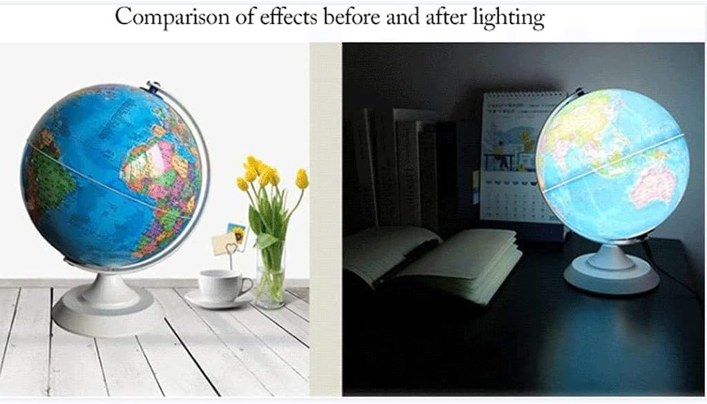 Design di protezione per gli occhi con luce soffusa: un globo che può essere utilizzato come lampada da scrivania, con luci LED all'interno, la luce è soffusa e non danneggerà gli occhi dei bambini. Design pratico fai da te: superficie liscia, lavabile e riscrivibile. Può essere contrassegnato per renderlo più facile da imparare. Può essere strofinato. Subito dopo uno strofinamento leggero, sembra bellissimo. Strumenti educativi significativi: viaggia per il mondo con le dita sul nostro globo educativo! Questo fantastico strumento di apprendimento è perfetto per insegnare in classe o a casa. È uno strumento indispensabile per insegnare ai nostri figli le informazioni geografiche di base. Protezione ambientale e nessun odore particolare: la mappa in plastica PVC con base in metallo bianco non è solo stabile, ma anche difficile da danneggiare. Incoraggia l'apprendimento e la scoperta: i bambini possono esplorare il mondo, compresi continenti e paesi, in dettagli colorati e facili da leggere. Questa Terra è uno dei migliori giocattoli di conoscenza, puzzle di QI o giocattoli educativi per imparare a conoscere il mondo.