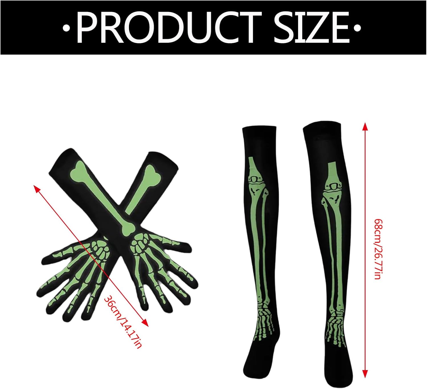 Guanti a mano scheletro e ginocchia calze alte guanti scheletro collant calze orribili calze accessori di Halloween Caratteristiche: Con il nostro bagliore nel buio costume di Halloween, questi accessori sono sicuri di iniettare divertimento e sorpresa. I nostri guanti e calzini sono traspiranti e traspiranti. Con un alto elastico, garantiscono una vestibilità comoda. Questo set si illumina al buio, in modo da poter godere di giorno e di notte. Il nostro set di costumi da festa è progettato per essere una buona aggiunta al tuo outfit da festa. Questi accessori per costumi di Halloween sono adatti per varie occasioni come feste di Halloween, carnevale, cosplay e feste a tema. Specifiche tecniche: Componente: Poliestere (fibra di poliestere) Lunghezza dei guanti: circa 36 cm. Lunghezza calzini: circa 68 cm. Tipo: 4 tipi facoltativi La confezione include: 3 Pacchetto gentile Facoltativo come segue: Pacchetto 1: 1 Set Halloween Set Confezione 2: 1 paio di calzini. Confezione 3: 1 collant. Nota: Considerare un margine di errore di 1-3 cm dovuto alla misurazione manuale. A causa della differenza tra i diversi monitor, l'immagine potrebbe non rispecchiare il colore reale dell'articolo.