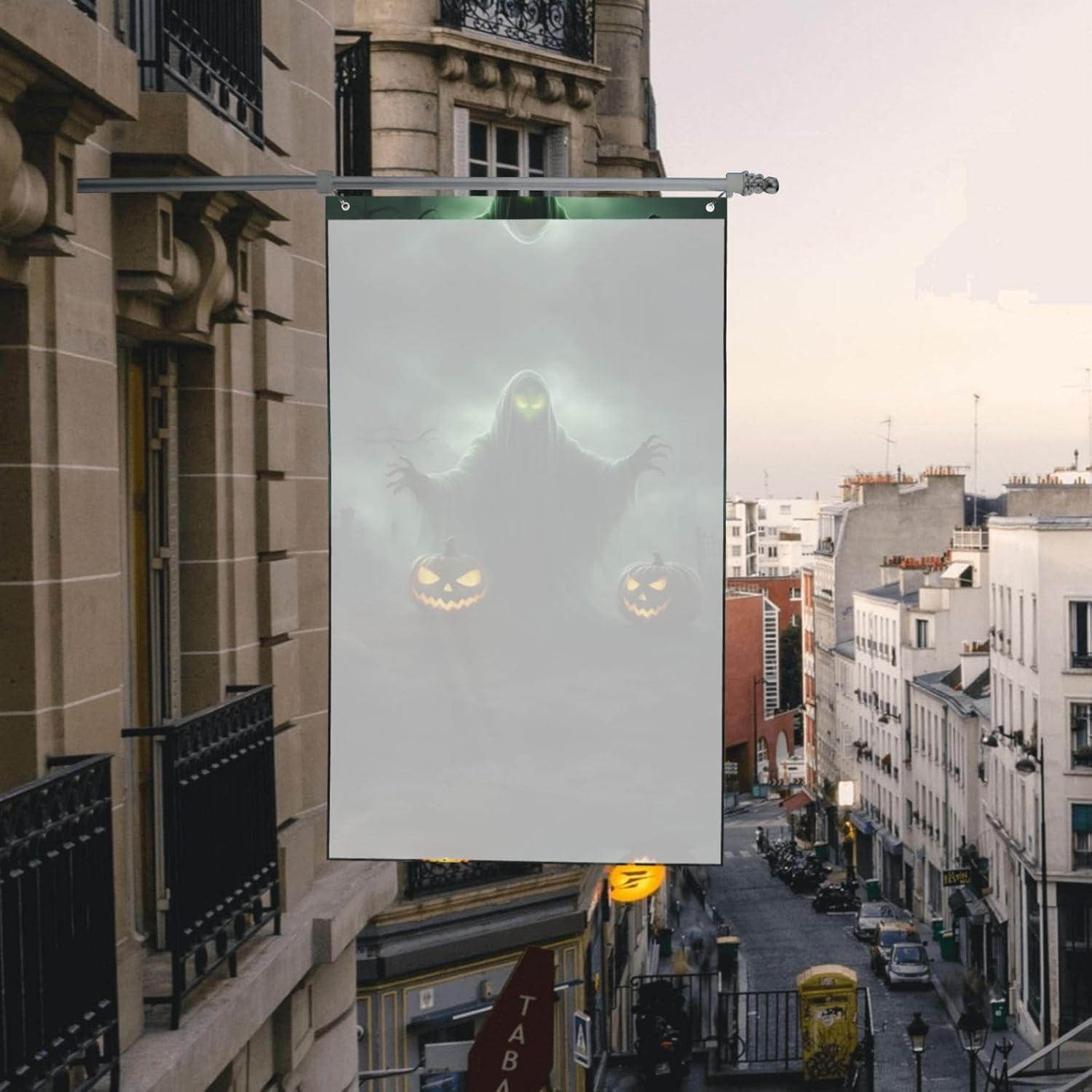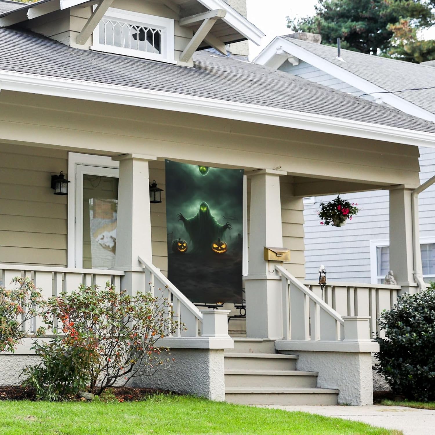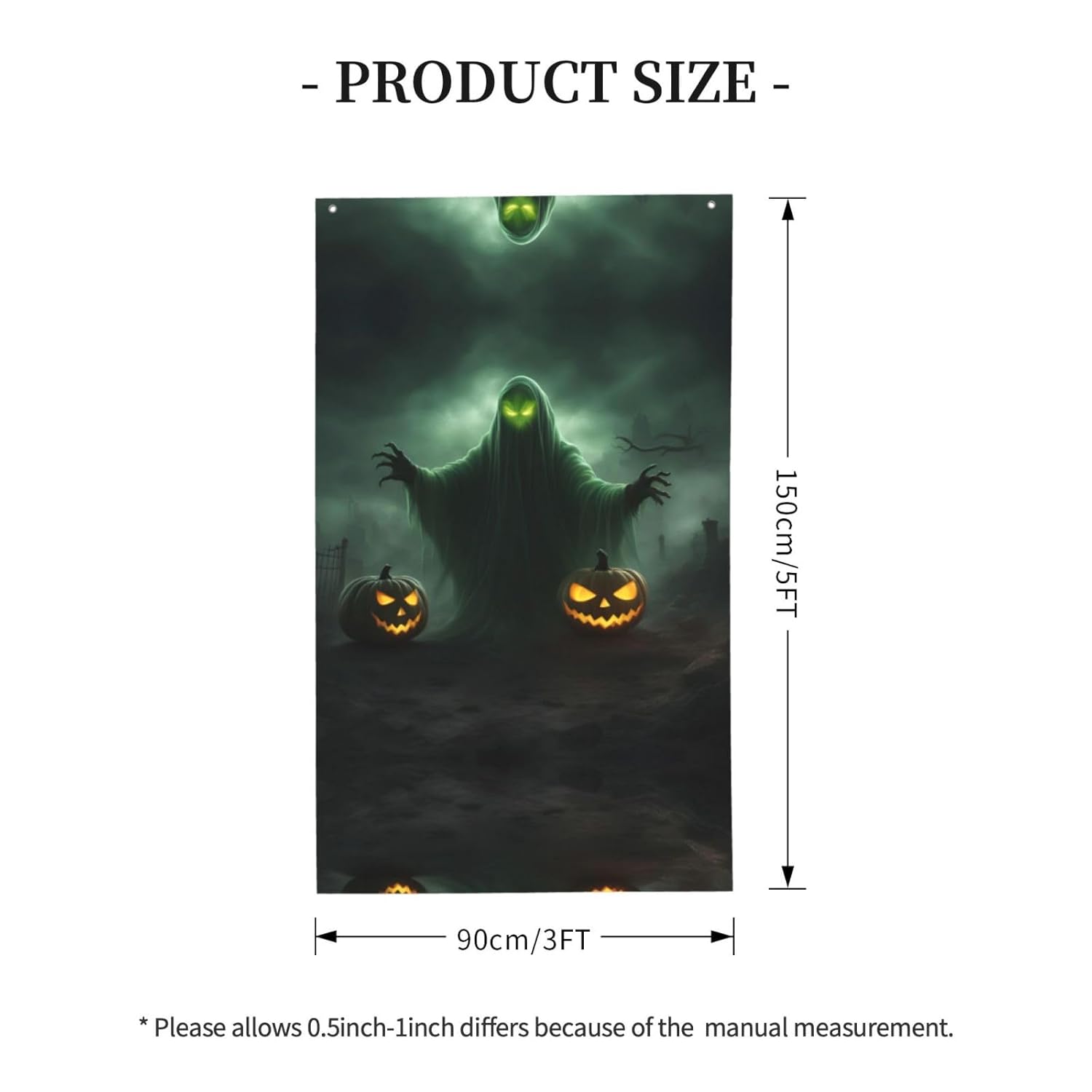 Green Ghost Horror Halloween Pumpkin Bandiere decorative per esterni Bandiere per cortile, patio, compleanno, laurea, feste, 3 piedi x 5 piedi
