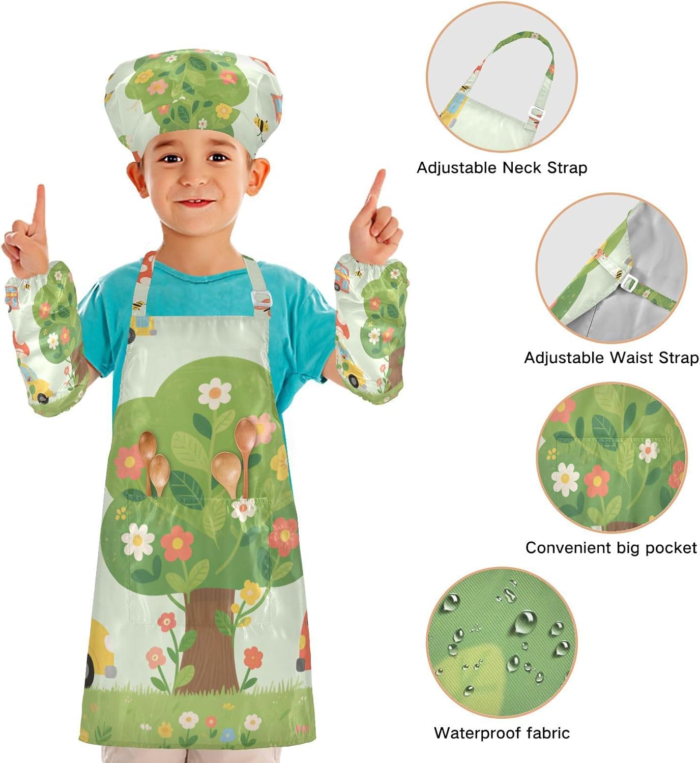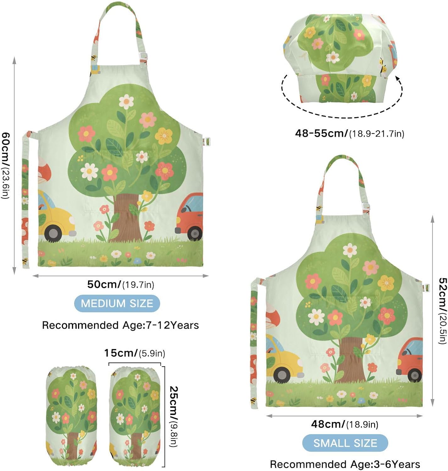 Taglia disponibile: S: 48 x 52 cm, per bambini dai 3 ai 6 anni. M: 50 x 59,7 cm, per bambini dai 7 ai 12 anni. Le taglie di cappelli e maniche condividono le stesse dimensioni. Cappello: 48-55 cm. Maniche: 15 x 24,9 cm. Materiale di alta qualità: il set di cappelli da chef per bambini è realizzato in poliestere, comodo, elegante, leggero e regolabile, impermeabile, facile da pulire. Cinghia regolabile: il collo lungo e le cinghie in vita sono regolabili. È possibile regolare la cinghia in base alla lunghezza che i bambini si sentono a proprio agio per attività o vestirsi Inoltre, la cinghia regolabile può fornire abbastanza spazio per i bambini da indossare o togliere. Applicazioni versatili: ideale per i bambini per proteggere i vestiti durante la cottura, il giardinaggio, la cottura, il gioco, la produzione di caramelle, la cottura di torte, tele, arti e mestieri, lezioni in classe, faccende domestiche. Può anche essere una grande decorazione per costumi di Halloween, oggetti di scena teatrali, feste di compleanno, eventi carini, feste a tema, riunioni di famiglia e molto altro ancora. Facile da pulire: il nostro prodotto è impermeabile e a prova di fuoriuscite. Basta strofinare, lavare in lavatrice e lavare a mano.