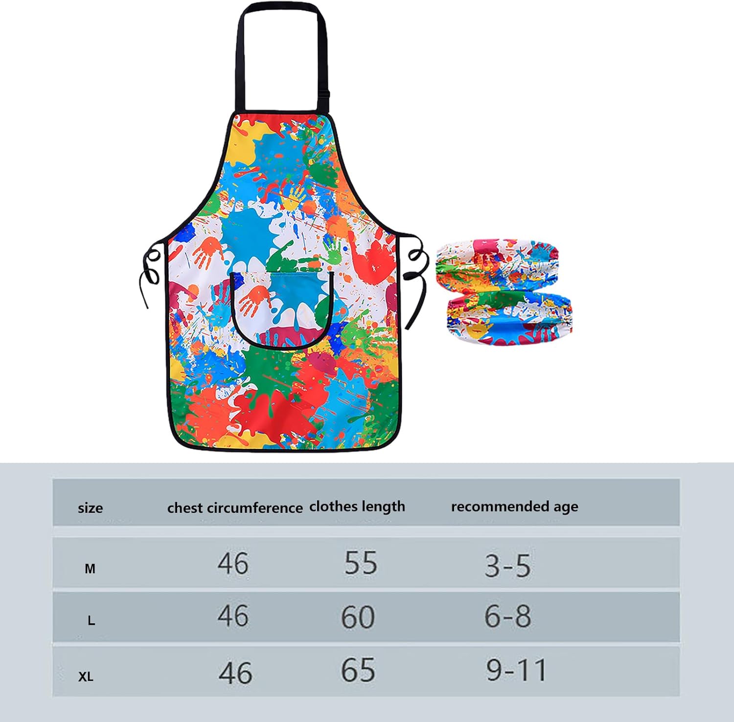 Grembiule artistico per bambini, grembiule regolabile per pittura, grembiule a maniche lunghe, grembiule da artista resistente, design tascabile, grembiule per bambini, per cucina, cottura, giardinaggio, feste, attività creative Descrizione: Il nostro grembiule per bambini è realizzato in nylon di poliestere impermeabile. Il grembiule è traspirante, completamente antimacchia, facile da pulire, ad asciugatura rapida e riutilizzabile. I grembiuli da pittura per bambini sono dotati di due maniche, che possono isolare meglio lo sporco e la vernice e ridurre il carico di lavoro per mantenere i bambini puliti dopo i giochi disordinati. I nostri grembiuli da cucina per bambini e ragazze hanno una grande tasca sulla parte anteriore, che consente di trasportare facilmente piccole pentole, accessori da forno o utensili da disegno. Specifiche tecniche: Nome: Grembiule da pittura per bambini Materiale: nylon impermeabile. Taglia: M/L/XL Peso: circa 150 g. Contenuto della confezione: 1 grembiule artistico per bambini. 1 paio di manicotti. Nota: A causa degli effetti di luce e degli angoli delle foto, c'è una differenza di colore nel prodotto, si prega di capire. A causa della misurazione manuale, è possibile una tolleranza nelle dimensioni del prodotto.