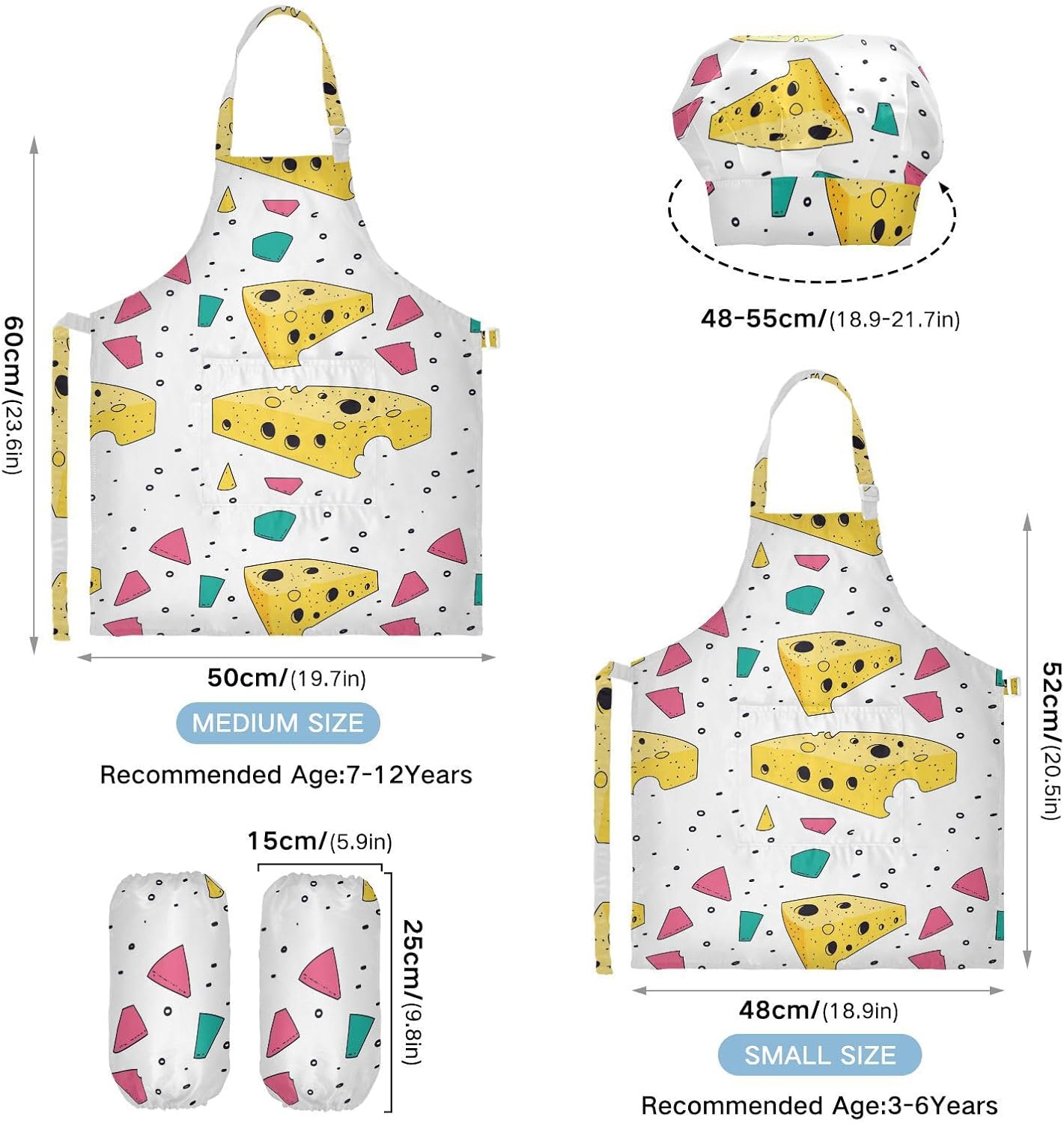 Taglia disponibile: S: 48 x 52 cm, per bambini dai 3 ai 6 anni. M: 50 x 59,7 cm, per bambini dai 7 ai 12 anni. Le taglie di cappelli e maniche condividono le stesse dimensioni. Cappello: 48-55 cm. Maniche: 15 x 24,9 cm. Materiale ecologico: il tessuto è impermeabile, leggero, accogliente, stampa adorabile alla moda, ecologico per la pelle dei bambini. Cinghia regolabile: il collo lungo e le cinghie in vita sono regolabili. È possibile regolare la cinghia in base alla lunghezza che i bambini si sentono a proprio agio per attività o vestirsi Inoltre, la cinghia regolabile può fornire abbastanza spazio per i bambini da indossare o togliere. Multiuso: il set da chef per bambini non può essere indossato per pittura, cucina, giardinaggio, lavaggio dei piatti, feste, arte, artigianato e attività scolastiche, ma anche per Natale, Ringraziamento, Halloween, San Patrizio, Capodanno, festa dei bambini, festival, vacanze, cene, compleanni e riunioni di famiglia. Istruzioni di lavaggio: lavabile in lavatrice e a mano. Non candeggiare, lavare a secco e asciugare in asciugatrice.