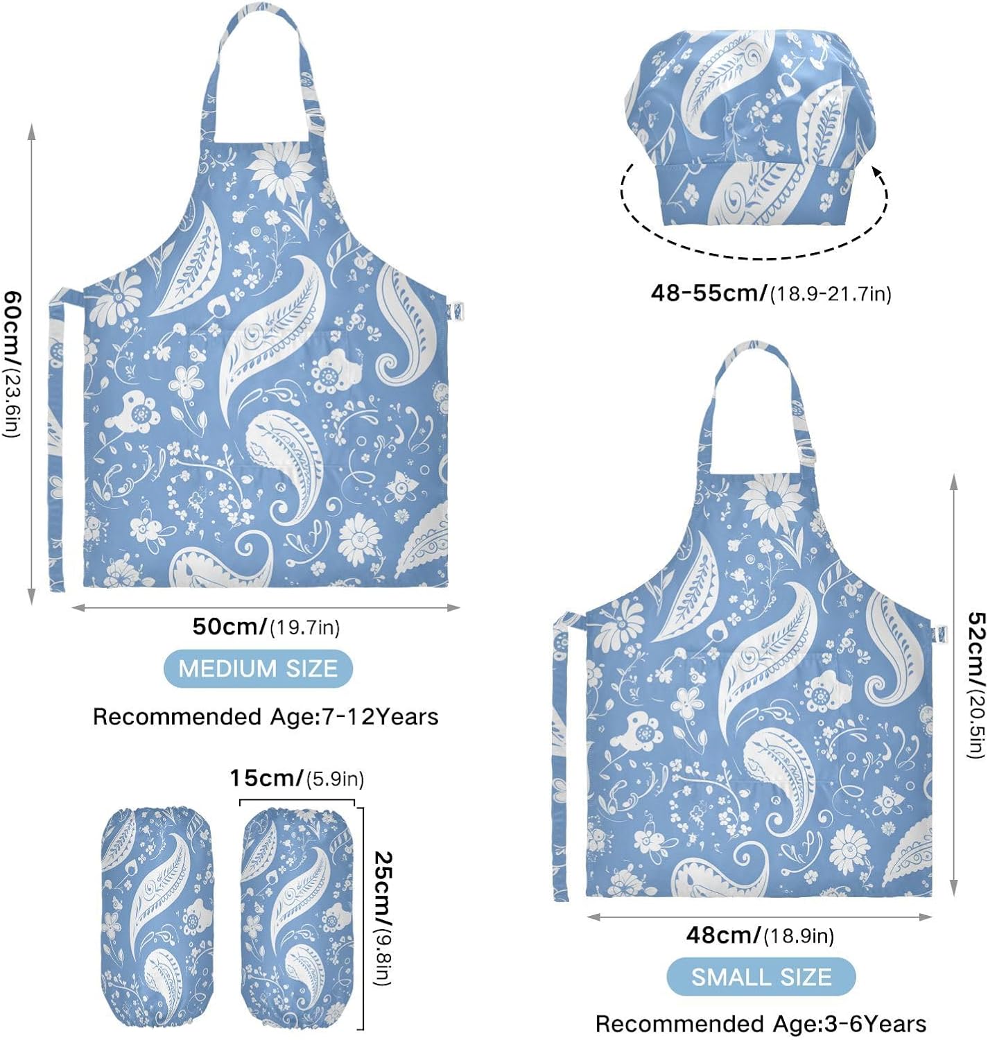 Dettagli del prodotto: Materiale: poliestere. La confezione include: 1 grembiule per bambini + 1 cappello da chef abbinato + 1 paio di maniche Dimensioni grembiule: S - 48 x 52,1 cm (età 3-5 anni), L - 19,7 x 59,7 cm (età 6-12 anni) Istruzioni per il lavaggio: Lavabile in lavatrice o a mano con acqua fredda. Perché sceglierci? Il nostro set di cappelli con grembiule per bambini è realizzato in poliestere di alta qualità, morbido al tatto e privo di sostanze chimiche, cinturino regolabile con lacci neri, morbido e confortevole, le cravatte lunghe possono essere facilmente modificate per adattarsi alla maggior parte delle dimensioni, adatte a diverse forme del corpo, sia un ragazzo che una ragazza, grasso o magro. I nostri simpatici grembiuli funzionali personalizzati con motivo vigoroso e design unico sono perfetti per tutti i tipi di occasioni, possono essere utilizzati per proteggere i vestiti durante la cottura, la cottura, l'artigianato, la pittura, il giardinaggio, il barbecue o qualsiasi altra cosa che potrebbe creare disordine. Questi set da cucina splendidamente progettati e confezionati sono anche un regalo perfetto per la cucina dei bambini, regalo per le vacanze e un regalo premuroso per i tuoi bambini che si divertono nella cottura e nella cucina.