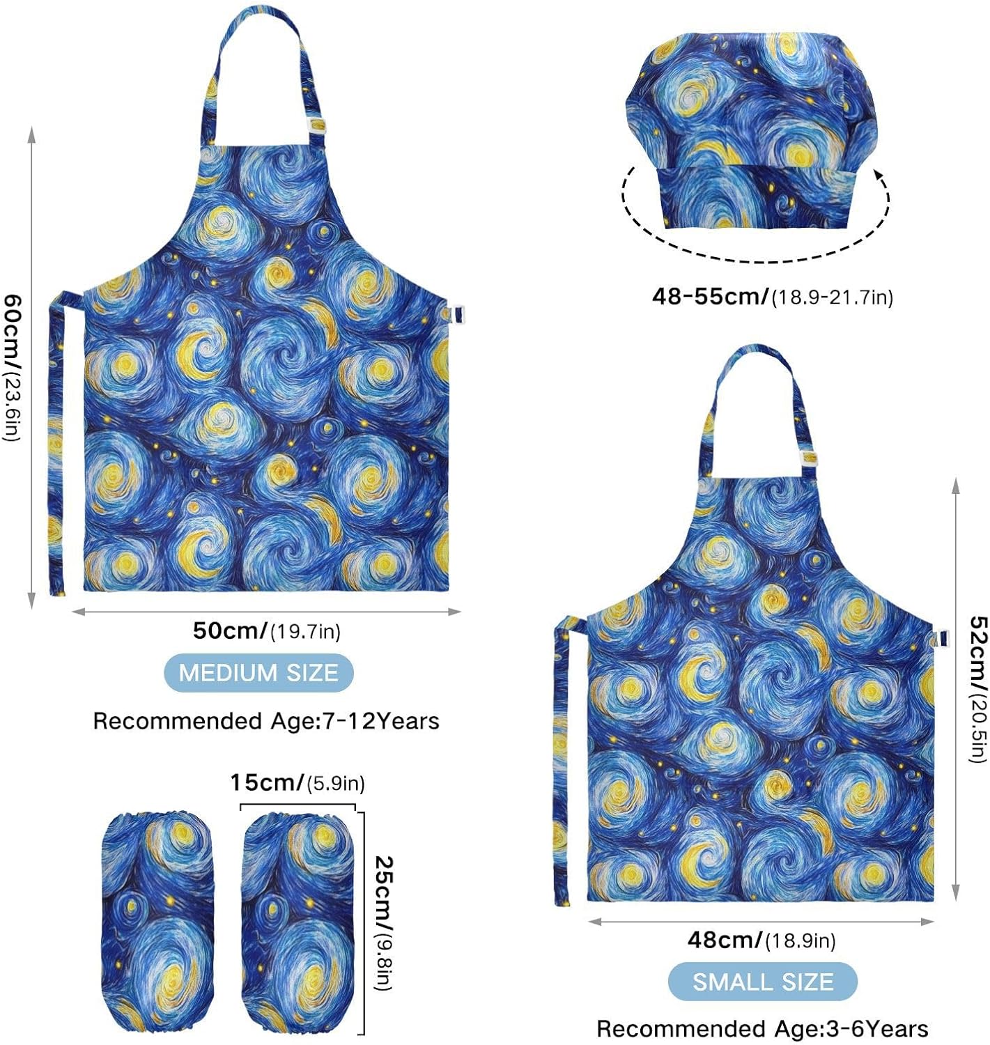 Dimensioni e articolo include: S: 18,9 x 20,5 L per bambini dai 3 ai 6 anni. M: 19,7 W x 23,5 L per età 7-12 anni. Il grembiule per bambini include 1 grembiule leggero, 1 cappello da chef e 2 maniche. Il set di cappelli da chef per bambini può dare ai bambini una buona esperienza di utilizzo per cucinare o dipingere come fornelli o pittori professionisti. Materiale ecologico: il tessuto è impermeabile, leggero, accogliente, stampa adorabile alla moda, ecologico per la pelle dei bambini. Protezione delle maniche con una grande tasca: due maniche possono proteggere i bambini da acqua, olio e pigmenti. Con grandi tasche decorative e funzionali, è comodo mettere alcuni strumenti quando si utilizza, adatto per imparare a cucinare, fare caramelle, dolci, ecc. Scenario applicabile: ideale per asilo, asilo, cucina, sala pittura, giardino, Halloween, Natale, abbigliamento del Ringraziamento, artigianato e attività di pittura artistica, festa di compleanno per incoraggiare i bambini a sviluppare la loro cucina, pittura, cottura, giardinaggio o altre abilità. L'articolo include: Il set da chef per bambini include 1 grembiule leggero, 1 cappello da chef e 2 maniche. Il set da cucina per bambini da 3 pezzi può dare ai bambini una buona esperienza di utilizzo per cucinare o dipingere come fornelli o pittori professionisti.