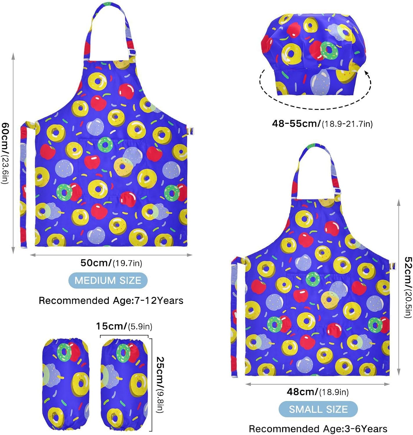 Dimensioni consigliate: S: 48 x 52 cm (età 3-6 anni). M: 50 x 59,7 cm (7-12 anni). La taglia può adattarsi alla maggior parte dei ragazzi e delle ragazze. Si prega di scegliere la taglia giusta in base alle dimensioni specifiche. Materiale di alta qualità: il grembiule da cucina per bambini è realizzato in poliestere, comodo, elegante, leggero e regolabile, impermeabile, facile da pulire. Impermeabile Caratteristica: Realizzato in poliestere, il grembiule per bambini è impermeabile. I bambini possono sentirsi liberi di imparare a cucinare e dipingere come preferiscono e possono mantenere i loro vestiti puliti allo stesso tempo. Scenario applicabile: ideale per asilo, asilo, cucina, sala pittura, giardino, Halloween, Natale, abbigliamento del Ringraziamento, artigianato e attività di pittura artistica, festa di compleanno per incoraggiare i bambini a sviluppare la loro cucina, pittura, cottura, giardinaggio o altre abilità. L'articolo include: il grembiule per bambini include 1 grembiule leggero, 1 cappello da chef e 2 maniche. I grembiuli per bambini possono dare ai bambini una buona esperienza di utilizzo per cucinare o dipingere come fornelli o pittori professionisti.