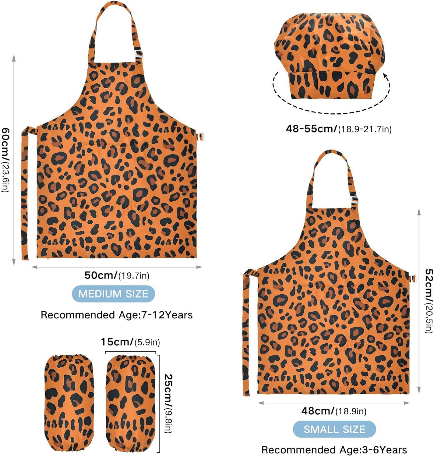 Taglia disponibile: S: 48 x 52 cm, per bambini dai 3 ai 6 anni. M: 50 x 59,7 cm, per bambini dai 7 ai 12 anni. Le taglie di cappelli e maniche condividono le stesse dimensioni. Cappello: 48-55 cm. Maniche: 15 x 24,9 cm. Materiale di alta qualità: il grembiule da cucina per bambini è realizzato in poliestere, 290 twill morbido panno impermeabile, dando una sensazione confortevole quando si indossa. Protezione delle maniche con una grande tasca: due maniche possono proteggere i bambini da acqua, olio e pigmenti. Con grandi tasche decorative e funzionali, è comodo mettere alcuni strumenti quando si utilizza, adatto per imparare a cucinare, fare caramelle, dolci, ecc. Multiuso: il grembiule per bambini non può essere indossato per pittura, cucina, giardinaggio, lavaggio dei piatti, feste, arte, artigianato e attività scolastiche, ma anche per Natale, Ringraziamento, Halloween, San Patrizio, Capodanno, festa dei bambini, festival, vacanze, cene, compleanni e riunioni di famiglia. Facile da pulire: il nostro prodotto è impermeabile e a prova di fuoriuscite. Basta strofinare, lavare in lavatrice e lavare a mano.