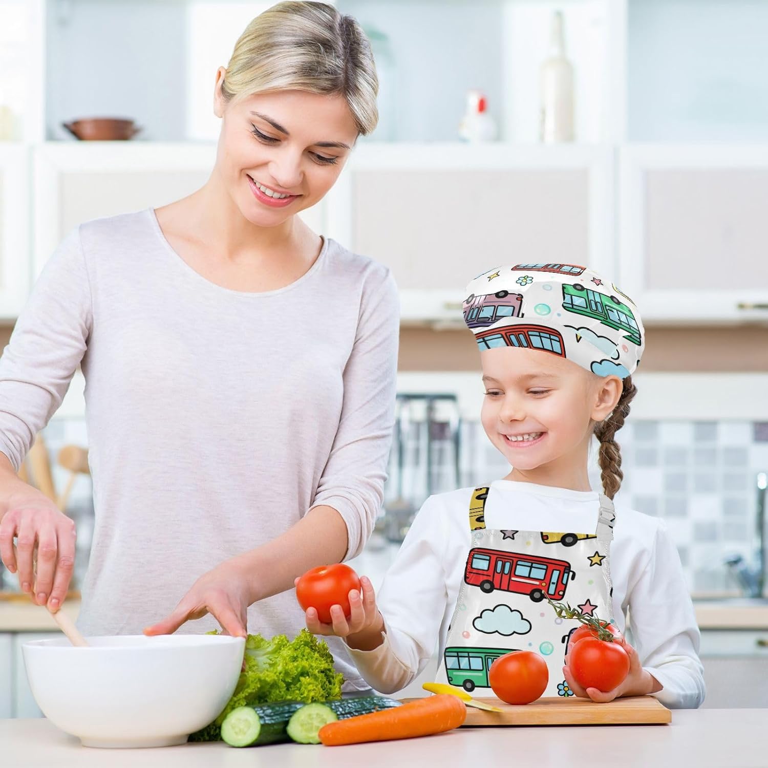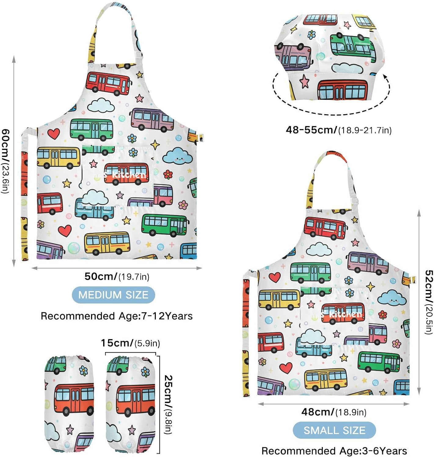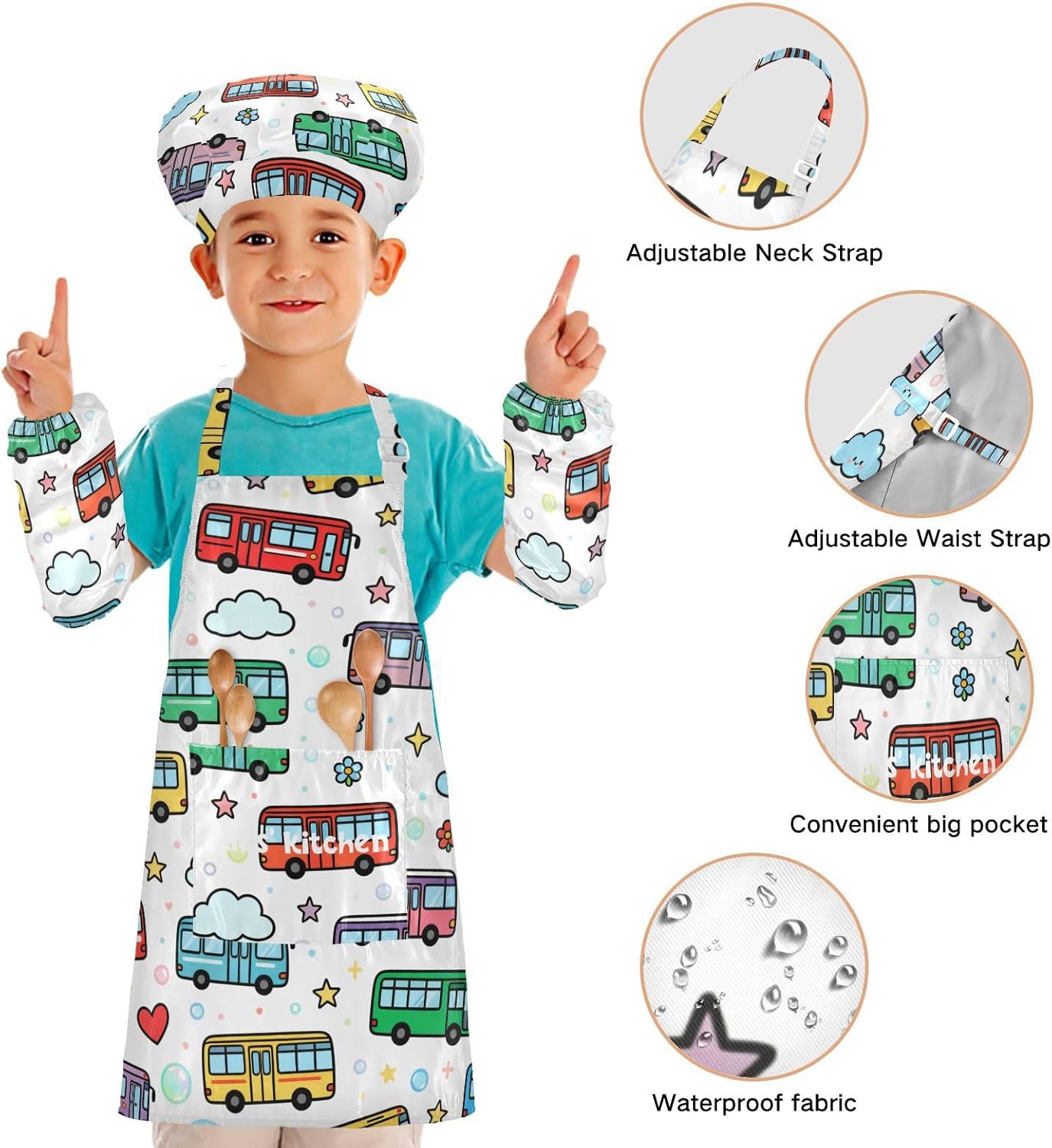 Dimensioni e articolo inclusi: M: 19,7 x 23,5 L per bambini dai 7 ai 12 anni. Il costume da chef per bambini include 1 grembiule leggero, 1 cappello da chef e 2 maniche. Il costume da chef per bambini da 3 pezzi può dare ai bambini una buona esperienza di utilizzo per cucinare o dipingere come cucine o pittori professionisti. Materiale ecologico: il tessuto è impermeabile, leggero, accogliente, stampa adorabile alla moda, ecologico per la pelle dei bambini. Protezione delle maniche con una grande tasca: due maniche possono proteggere i bambini da acqua, olio e pigmenti. Con grandi tasche decorative e funzionali, è comodo mettere alcuni strumenti quando si utilizza, adatto per imparare a cucinare, fare caramelle, dolci, ecc. Multiuso: il costume da chef per bambini non può essere indossato per pittura, cucina, giardinaggio, lavaggio dei piatti, feste, arte, artigianato e attività scolastiche, ma anche per Natale, Ringraziamento, Halloween, San Patrizio, Capodanno, festa dei bambini, festival, vacanze, cene, compleanni e riunioni di famiglia. Contenuto della confezione: un grembiule impermeabile, un cappello da chef e due maniche. L'adorabile set di grembiuli per bambini può incoraggiarli a sviluppare le loro abilità di cucina, pittura, cottura, giardinaggio o altre abilità.