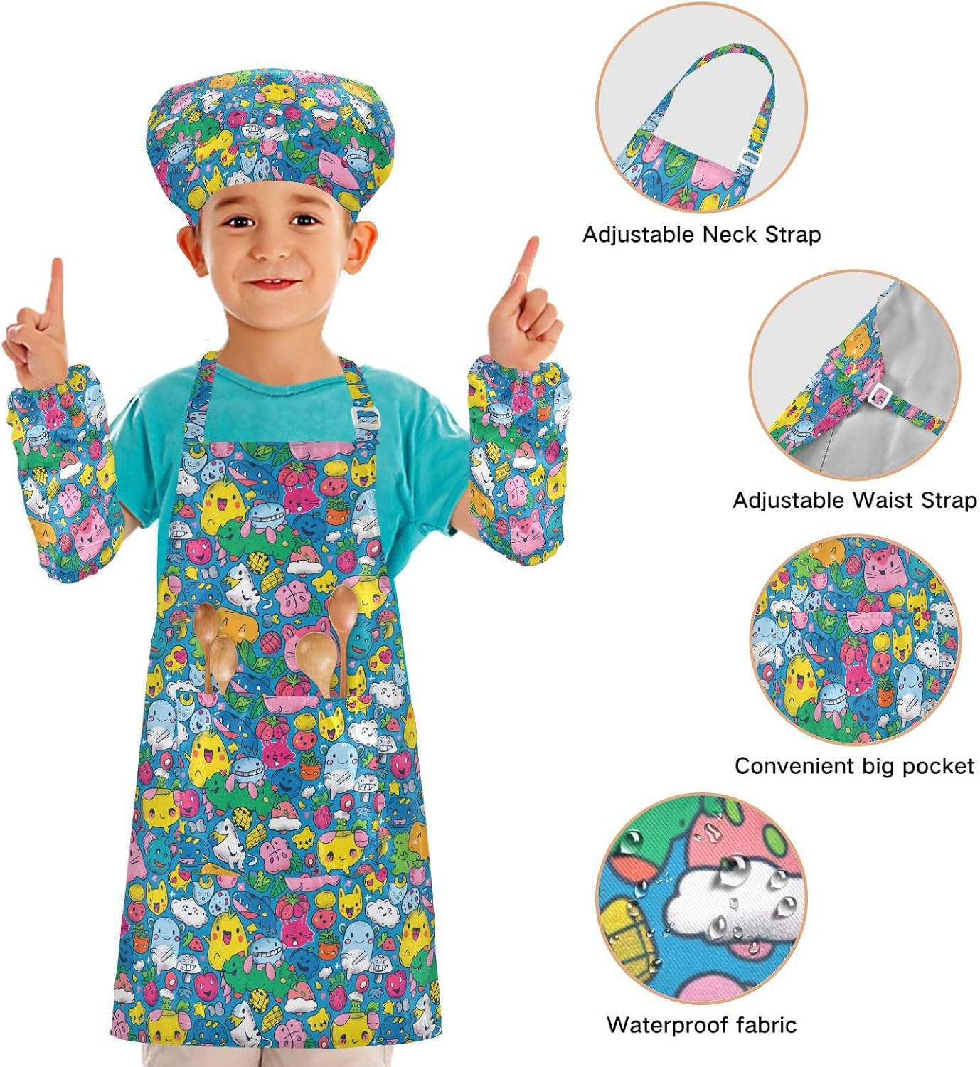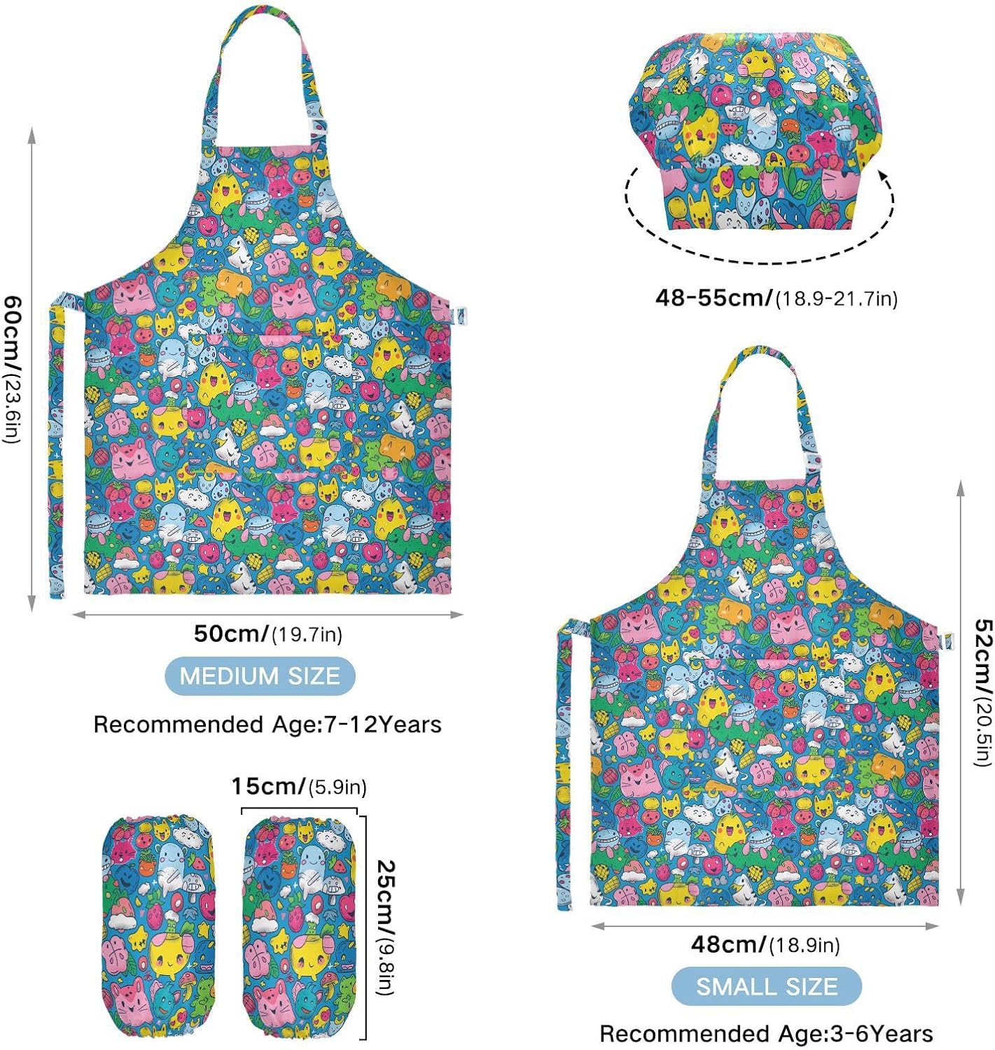 Suggerimento: M: 50 x 59,7 cm (età 7-12 anni). La taglia può adattarsi alla maggior parte dei ragazzi e delle ragazze. Si prega di scegliere la taglia giusta in base alle dimensioni specifiche. Materiale ecologico: il tessuto è impermeabile, leggero, accogliente, stampa adorabile alla moda, ecologico per la pelle dei bambini. Impermeabile Caratteristica: Realizzato in poliestere, il grembiule da cucina per bambini è impermeabile. I bambini possono sentirsi liberi di imparare a cucinare e dipingere come preferiscono e possono mantenere i loro vestiti puliti allo stesso tempo. Ampia applicazione: il grembiule per bambini è adatto per l'insegnamento della pittura e l'insegnamento della cucina, può essere applicato anche per corsi d'arte, costumi di Halloween, oggetti di scena teatrali, feste di compleanno e le belle attività della decorazione per feste a tema. Facile da pulire: il nostro prodotto è impermeabile e a prova di fuoriuscite. Basta strofinare, lavare in lavatrice e lavare a mano.