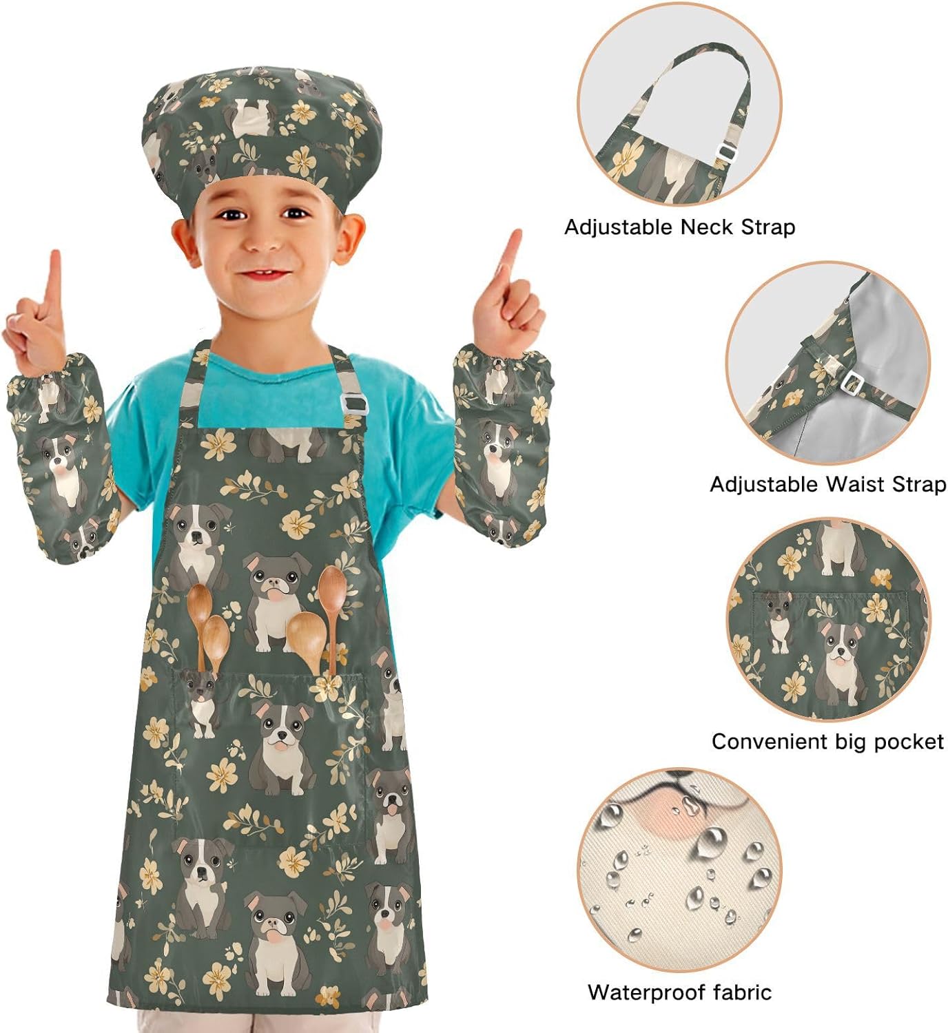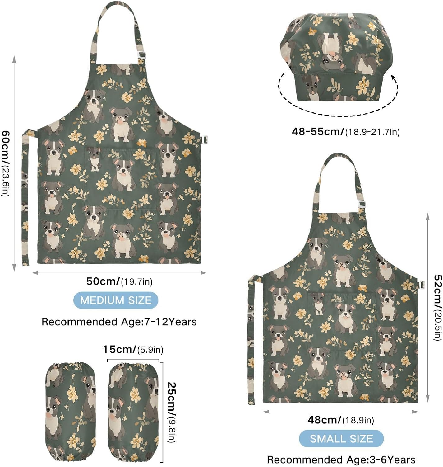 Taglia disponibile: S: 48 x 52 cm, per bambini dai 3 ai 6 anni. M: 50 x 59,7 cm, per bambini dai 7 ai 12 anni. Le taglie di cappelli e maniche condividono le stesse dimensioni. Cappello: 48-55 cm. Maniche: 15 x 24,9 cm. Materiale ecologico: il tessuto è impermeabile, leggero, accogliente, stampa adorabile alla moda, ecologico per la pelle dei bambini. Caratteristica impermeabile: Realizzato in poliestere, il cappello grembiule da chef per bambini è impermeabile. I bambini possono sentirsi liberi di imparare a cucinare e dipingere come preferiscono e possono mantenere i loro vestiti puliti allo stesso tempo. Scenario applicabile: ideale per asilo, asilo, cucina, sala pittura, giardino, Halloween, Natale, abbigliamento del Ringraziamento, artigianato e attività di pittura artistica, festa di compleanno per incoraggiare i bambini a sviluppare la loro cucina, pittura, cottura, giardinaggio o altre abilità. Contenuto della confezione: un grembiule impermeabile, un cappello da chef e due maniche. Gli adorabili grembiuli per bambini possono incoraggiarli a sviluppare le loro abilità di cucina, pittura, cottura, giardinaggio o altre abilità.