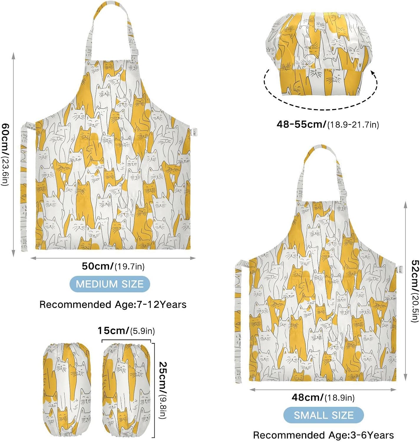 Dimensioni: il grembiule di piccole dimensioni per bambini dai 3 ai 6 anni è alto 52,1 cm, largo 48 cm. Il costume da chef per bambini di taglia media da 7 a 12 anni è alto 59,7 cm, largo 50 cm. Il cappello delle due dimensioni misura 48-55,1 cm. ?La custodia misura 15 x 24,9 cm. Materiale ecologico: il tessuto è impermeabile, leggero, accogliente, stampa adorabile alla moda, ecologico per la pelle dei bambini. Protezione delle maniche con una grande tasca: due maniche possono proteggere i bambini da acqua, olio e pigmenti. Con grandi tasche decorative e funzionali, è comodo mettere alcuni strumenti quando si utilizza, adatto per imparare a cucinare, fare caramelle, dolci, ecc. Multiuso: il set di grembiule per bambini non può essere indossato per pittura, cucina, giardinaggio, lavaggio dei piatti, feste, arte, artigianato e attività scolastiche, ma anche per Natale, Ringraziamento, Halloween, San Patrizio, Capodanno, festa dei bambini, festival, vacanze, cene, compleanni e riunioni di famiglia. Facile da pulire: il nostro prodotto è impermeabile e a prova di fuoriuscite. Basta strofinare, lavare in lavatrice e lavare a mano.
