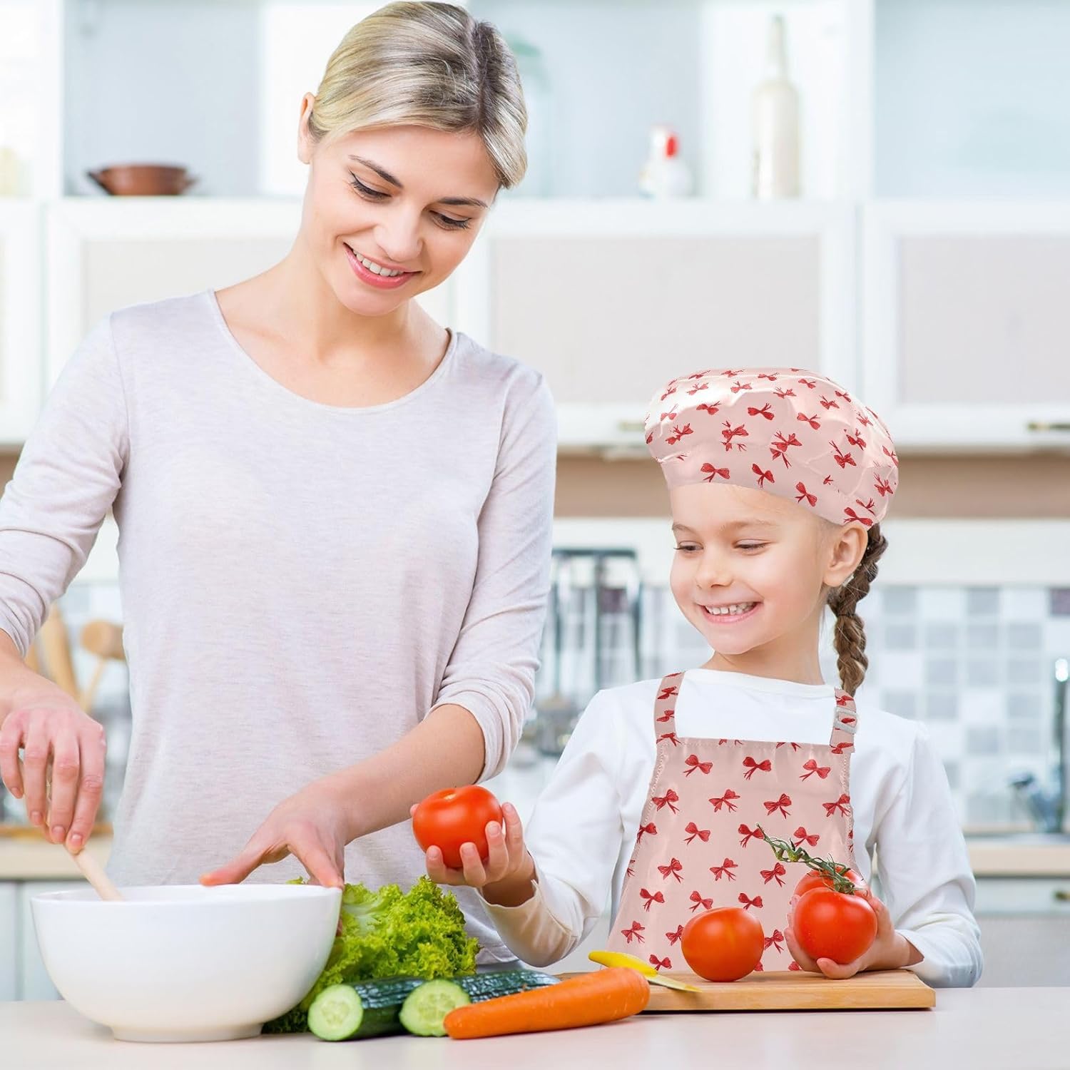 Dimensioni e articolo inclusi: M: 19,7 x 23,5 L per bambini dai 7 ai 12 anni. Il grembiule per bambini include 1 grembiule leggero, 1 cappello da chef e 2 maniche. I grembiuli per bambini possono dare ai bambini una buona esperienza di utilizzo per cucinare o dipingere come fornelli o pittori professionisti. Materiale di alta qualità: il grembiule per bambini è realizzato in poliestere di alta qualità, comodo, elegante, leggero e regolabile, impermeabile, facile da pulire. Protezione delle maniche con una grande tasca: due maniche possono proteggere i bambini da acqua, olio e pigmenti. Con grandi tasche decorative e funzionali, è comodo mettere alcuni strumenti quando si utilizza, adatto per imparare a cucinare, fare caramelle, dolci, ecc. Multiuso: i grembiuli per bambini non possono essere indossati per pittura, cucina, giardinaggio, lavaggio dei piatti, feste, arte, artigianato e attività scolastiche, ma anche per Natale, Ringraziamento, Halloween, San Patrizio, Capodanno, festa dei bambini, festival, vacanze, cene, compleanni e riunioni di famiglia. L'articolo include: il grembiule per bambini include 1 grembiule leggero, 1 cappello da chef e 2 maniche. Il grembiule per bambini può dare ai bambini una buona esperienza di utilizzo per cucinare o dipingere come fornelli o pittori professionisti.