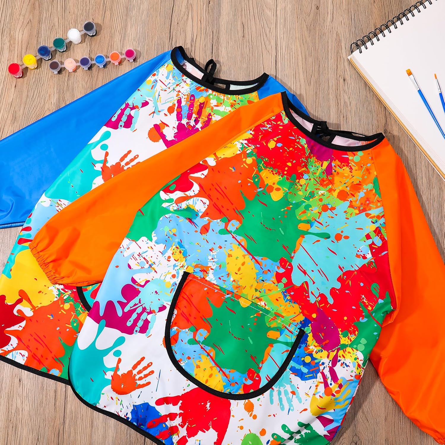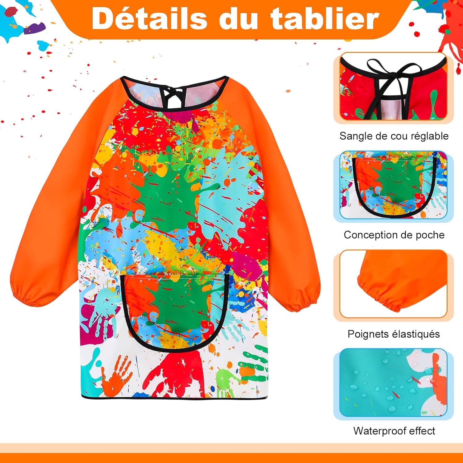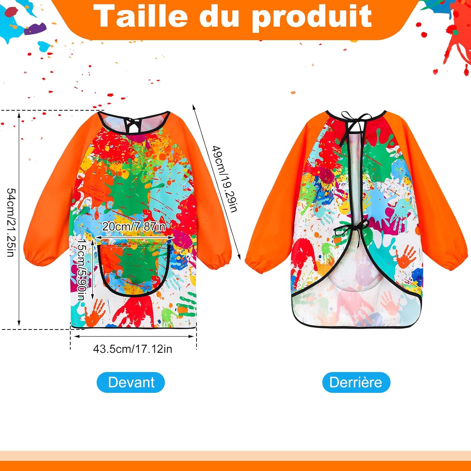 Grembiule da pittura per bambini: riceverete 2 grembiuli da pittura per bambini con lunghezza di 49 cm, busto 87 cm, lunghezza 54 cm, design unisex, adatto per bambini e bambine dai 3 agli 8 anni (altezza: 80-100 cm). I 2 grembiuli soddisfano le tue esigenze quotidiane
