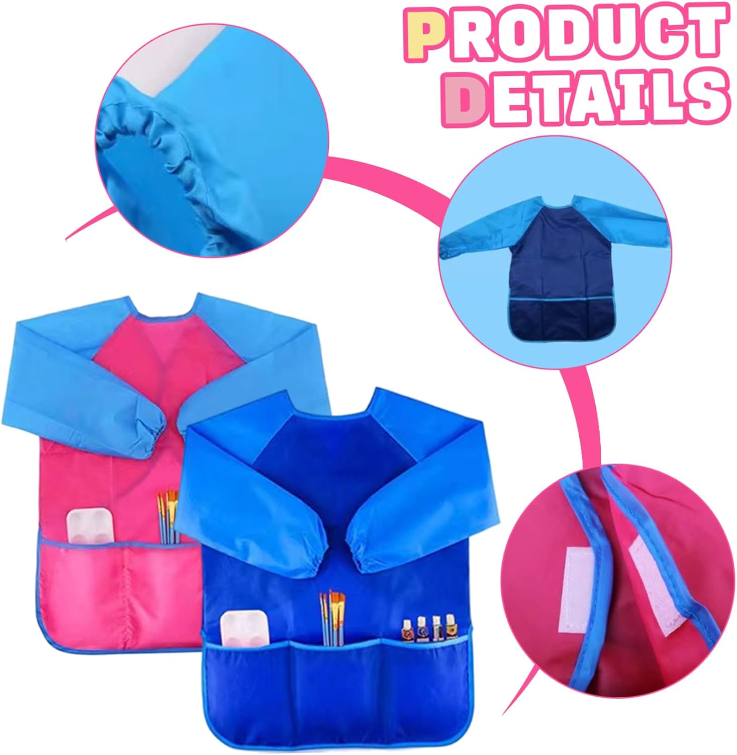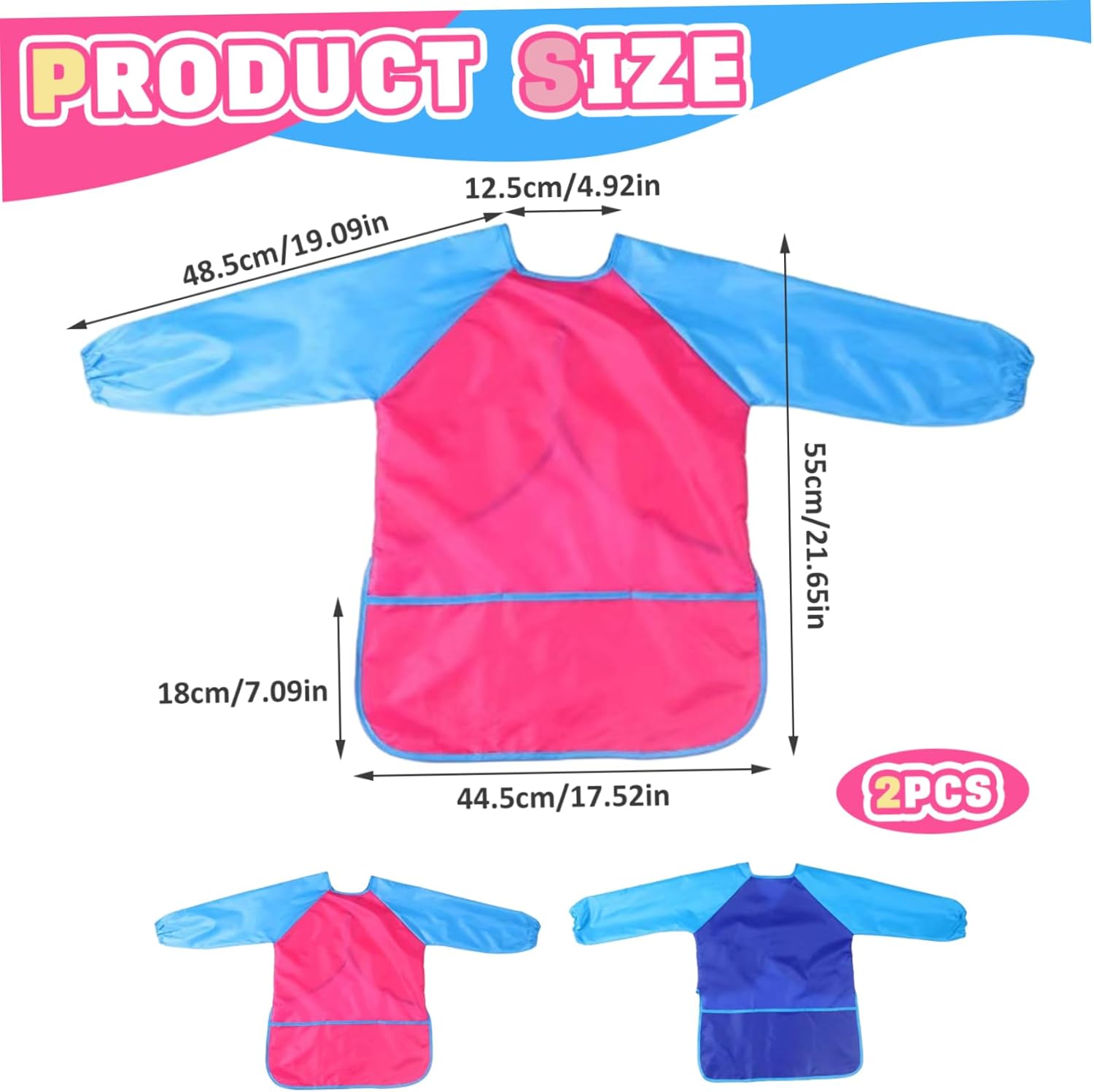 Descrizione: Presentiamo il grembiule da pittura per bambini da 2 pezzi con scollo rotondo e maniche lunghe, perfetto per tenere puliti i bambini durante la pittura, la cucina o le attività scolastiche..Realizzati in materiale impermeabile e affidabile, questi grembiuli da pittura per bambini sono progettati per resistere a progetti artistici disordinati e sono dotati di tre comode tasche per riporre gli oggetti essenziali..Comodi e regolabili con scollo rotondo, questi grembiuli a maniche lunghe per bambini garantiscono vestibilità aderente e libertà di movimento..Abbastanza versatili per varie attività come dipingere a scuola o cucinare a casa, questi grembiuli per bambini sono un'aggiunta essenziale al guardaroba di ogni bambino per tutte le sue avventure creative.. Caratteristiche:.. Grembiule da pittura per bambini.. -Materiale: tessuto in poliestere 210T.. Nota: Misurazione manuale, prega di consentire lievi errori sulla dimensione.. I colori potrebbero presentare una leggera differenza a causa dei diversi schermi.. Pacchetto compreso Grembiule da pittura per bambini da 2 pezzi