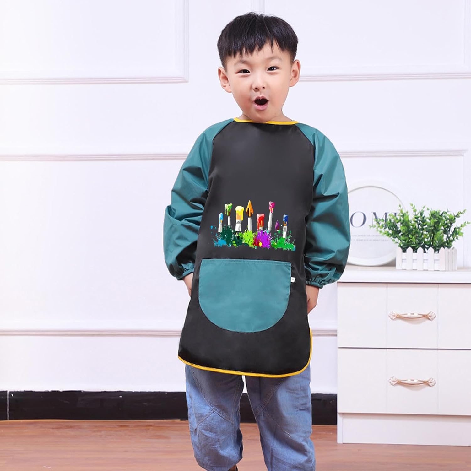 Siete alla ricerca di un grembiule carino e pratico per il vostro piccolo? Allora questi grembiuli per bambini per dipingere sono ciò che fa per voi. Realizzato con un rivestimento in PA per ridurre la fatica di lavaggio del bucato e dispone di una grande tasca per tutti gli utensili da pittura. Perfetto per la scuola o la casa, questi grembiuli sono sia pratici che alla moda per i vostri piccoli. Specifiche: Materiale: fibra di poliestere. Colore: verde, nero. Dimensioni: come da immagine. Peso: circa 125 g. Contenuto della confezione: 1 grembiule da pittura per bambini
