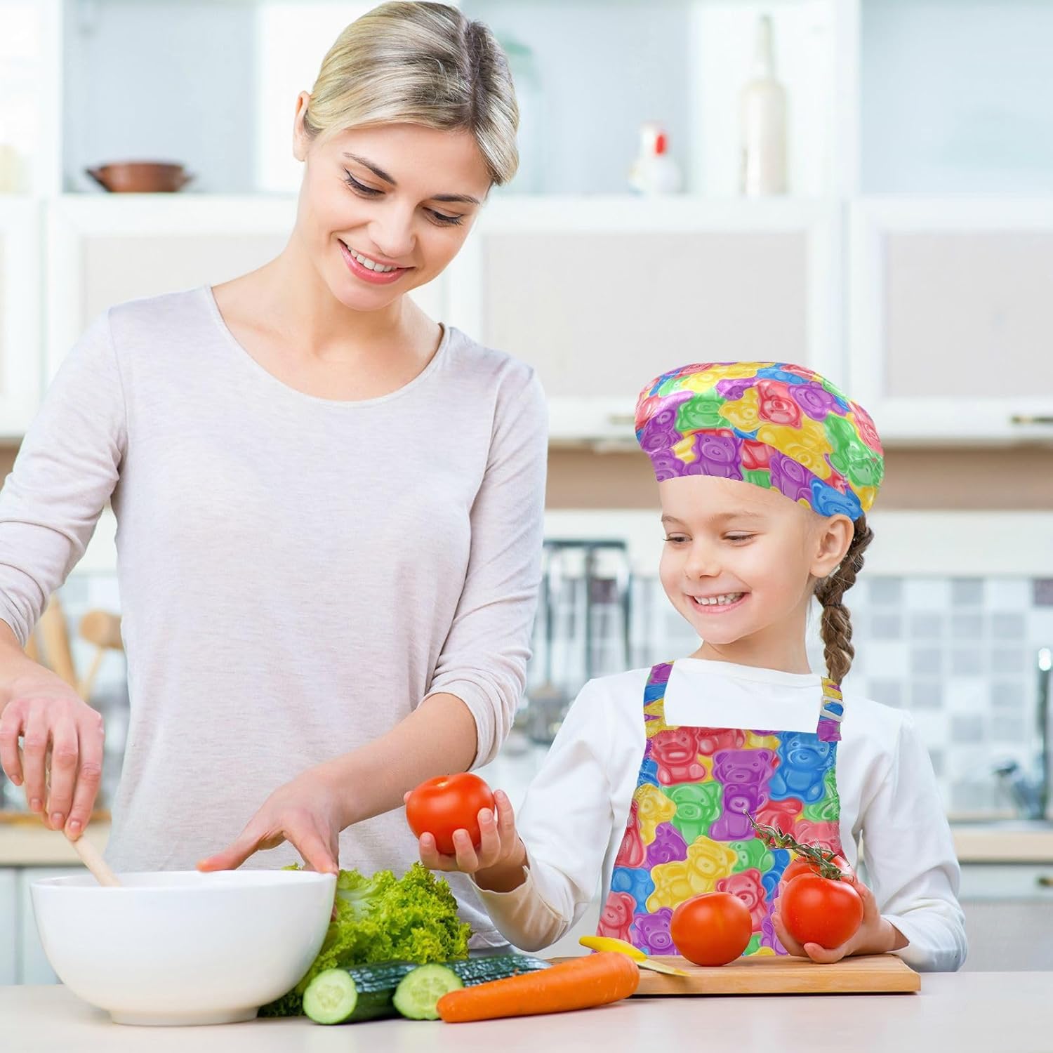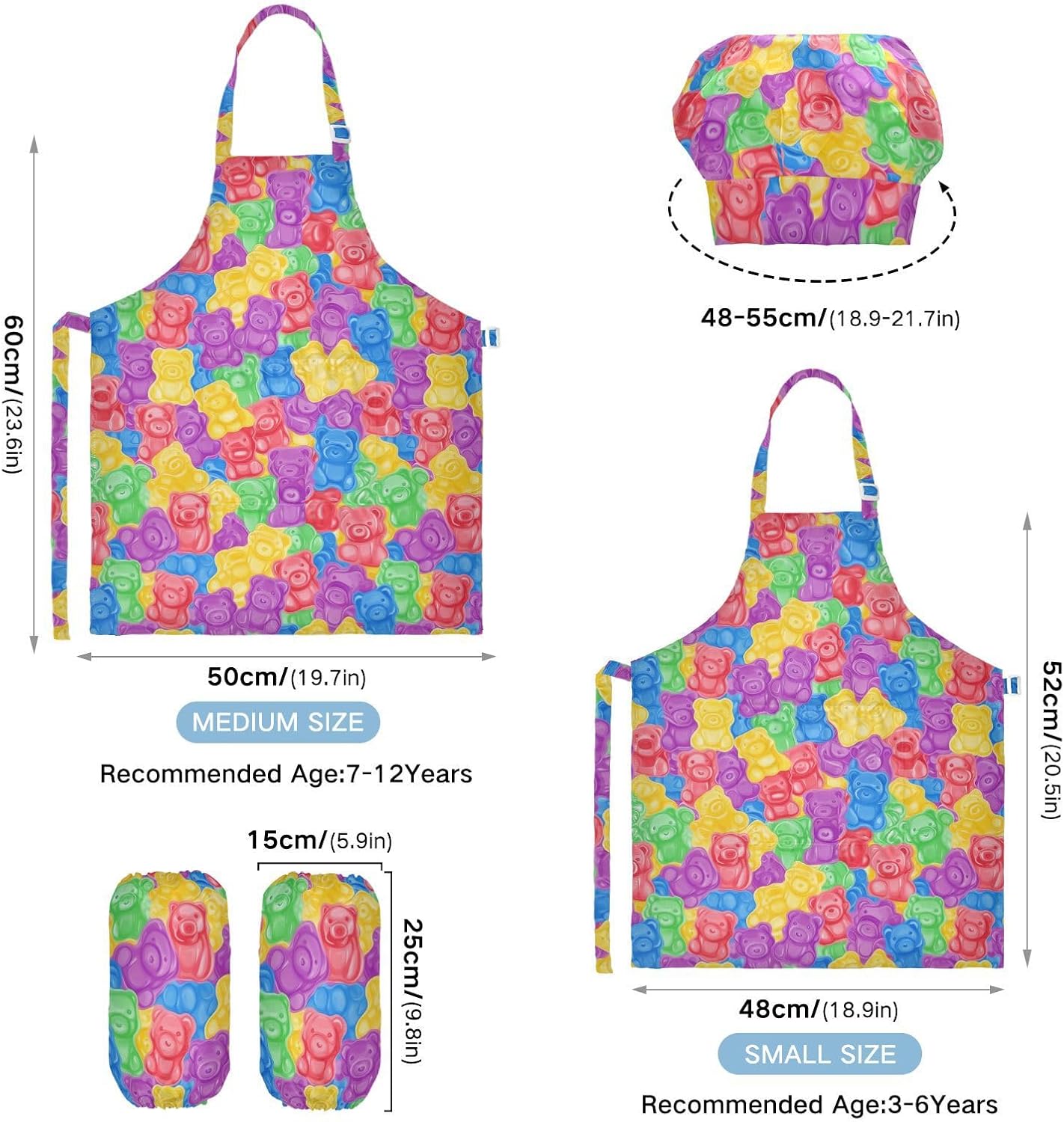 Taglia disponibile: S: 48 x 52 cm, per bambini dai 3 ai 6 anni. M: 50 x 59,7 cm, per bambini dai 7 ai 12 anni. Le taglie di cappelli e maniche condividono le stesse dimensioni. Cappello: 48-55 cm. Maniche: 15 x 24,9 cm. Materiale di alta qualità: il grembiule per bambini è realizzato in poliestere, comodo, elegante, leggero e regolabile, impermeabile, facile da pulire. Protezione delle maniche con una grande tasca: due maniche possono proteggere i bambini da acqua, olio e pigmenti. Con grandi tasche decorative e funzionali, è comodo mettere alcuni strumenti quando si utilizza, adatto per imparare a cucinare, fare caramelle, dolci, ecc. Multiuso: il set di cappelli da chef per bambini non può essere indossato per pittura, cucina, giardinaggio, lavaggio dei piatti, feste, arte, artigianato e attività scolastiche, ma anche per Natale, Ringraziamento, Halloween, San Patrizio, Capodanno, festa dei bambini, festival, vacanze, cene, compleanni e riunioni di famiglia. Contenuto della confezione: un grembiule impermeabile, un cappello da chef e due maniche. L'adorabile set di grembiuli per bambini può incoraggiarli a sviluppare le loro abilità di cucina, pittura, cottura, giardinaggio o altre abilità.