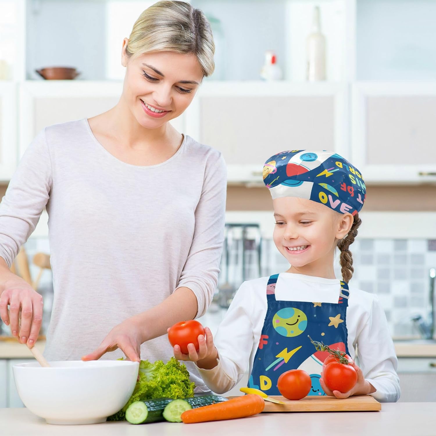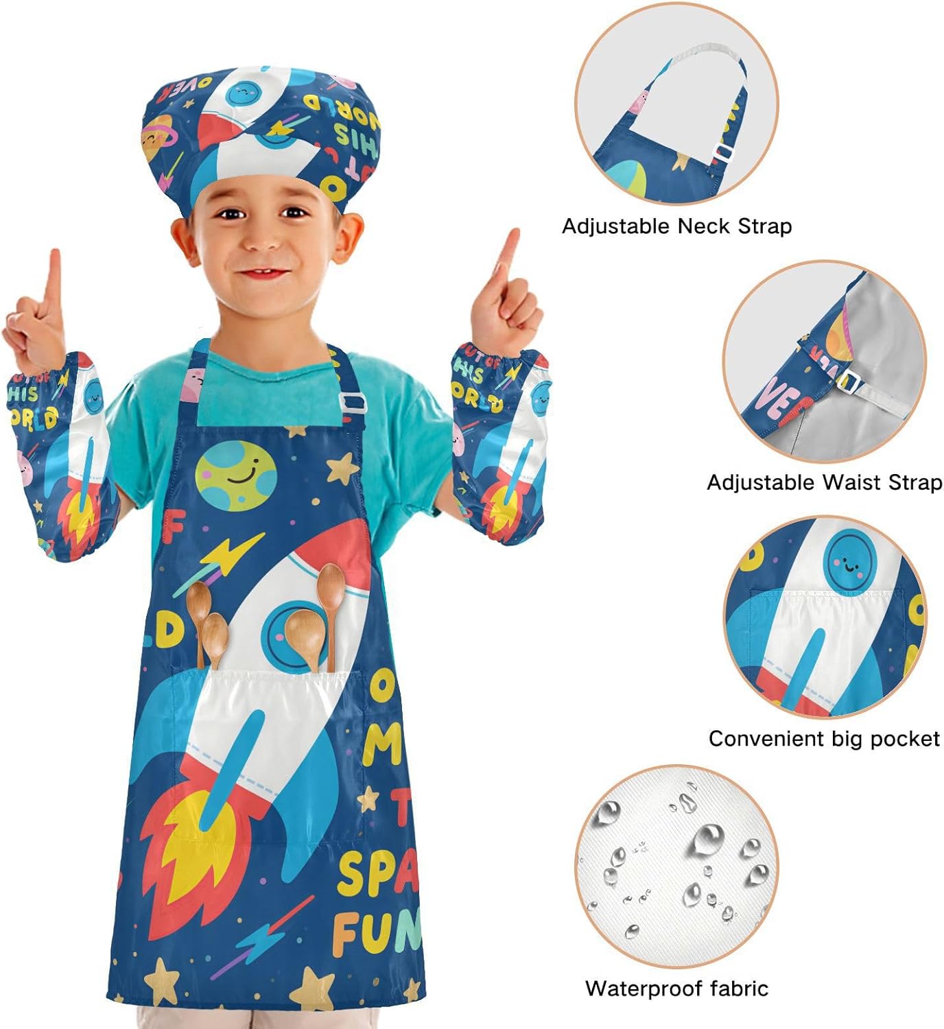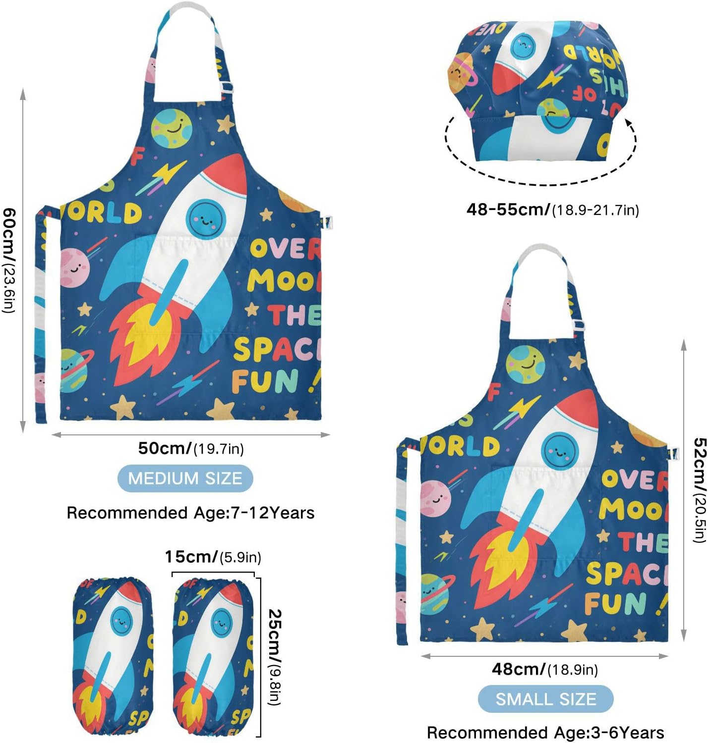 Dimensioni consigliate: S: 48 x 52 cm (età 3-6 anni). M: 50 x 59,7 cm (7-12 anni). La taglia può adattarsi alla maggior parte dei ragazzi e delle ragazze. Si prega di scegliere la taglia giusta in base alle dimensioni specifiche. Materiale di alta qualità: il grembiule da cucina per bambini è realizzato in poliestere, 290 twill morbido panno impermeabile, dando una sensazione confortevole quando si indossa. Protezione delle maniche con una grande tasca: due maniche possono proteggere i bambini da acqua, olio e pigmenti. Con grandi tasche decorative e funzionali, è comodo mettere alcuni strumenti quando si utilizza, adatto per imparare a cucinare, fare caramelle, dolci, ecc. Applicazioni versatili: ideale per i bambini per proteggere i vestiti durante la cottura, il giardinaggio, la cottura, il gioco, la produzione di caramelle, la cottura di torte, tele, arti e mestieri, lezioni in classe, faccende domestiche. Può anche essere una grande decorazione per costumi di Halloween, oggetti di scena teatrali, feste di compleanno, eventi carini, feste a tema, riunioni di famiglia e molto altro ancora. Contenuto della confezione: un grembiule impermeabile, un cappello da chef e due maniche. L'adorabile costume da chef per bambini da 3 pezzi può incoraggiarli a sviluppare le loro abilità di cucina, pittura, cottura, giardinaggio o altre abilità.
