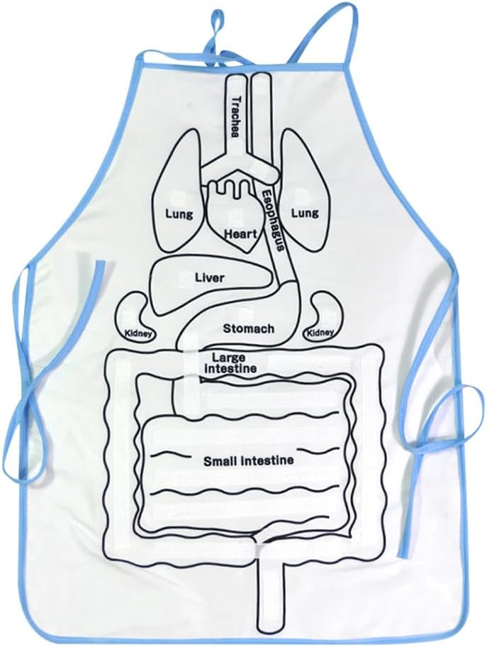 Grembiule anatomia per bambini, modello di corpo umano scientifico per bambini strumento di insegnamento, bambini sviluppo educativo organo grembiule giocattolo per bambini e ragazze Esplora i segreti del tuo corpo con questo grembiule modello di organi umani! È realizzato in tessuto elastico di alta qualità e migliora la coordinazione occhio-mano e forma l'anatomia. Perfetto per coloro che vogliono comprendere appieno la loro struttura corporea e il buon senso. Regalo ideale per Natale e compleanno per i bambini che amano la scienza e l'apprendimento. Materiale del prodotto: peluche. Coltivazione delle abilità: sviluppo intellettuale Età applicabile: adolescenti (7-14 anni), bambini (3-6 anni). Contenuto della confezione: 1 grembiule modello organi umani