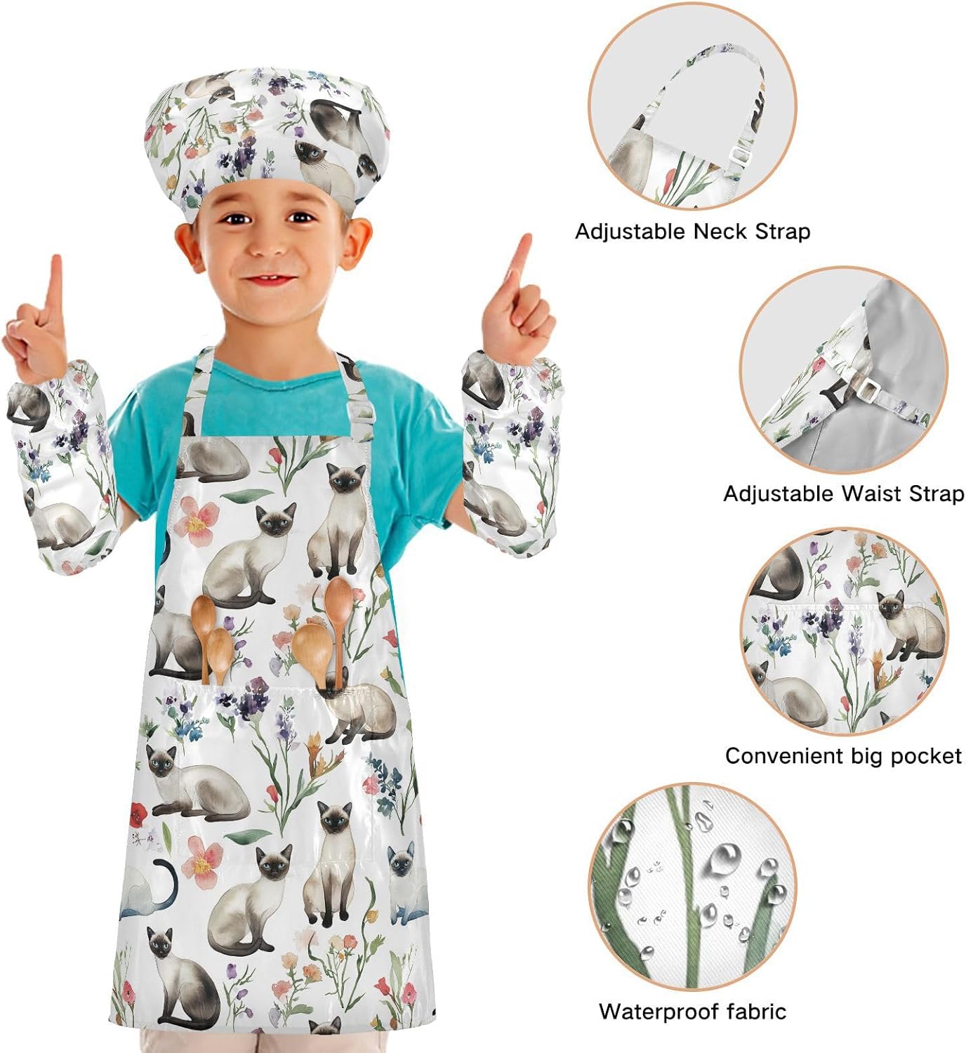 Taglia disponibile: S: 48 x 52 cm, per bambini dai 3 ai 6 anni. M: 50 x 59,7 cm, per bambini dai 7 ai 12 anni. Le taglie di cappelli e maniche condividono le stesse dimensioni. Cappello: 48-55 cm. Maniche: 15 x 24,9 cm. Materiale ecologico: il tessuto è impermeabile, leggero, accogliente, stampa adorabile alla moda, ecologico per la pelle dei bambini. Cinghia regolabile: il collo lungo e le cinghie in vita sono regolabili. È possibile regolare la cinghia in base alla lunghezza che i bambini si sentono a proprio agio per attività o vestirsi Inoltre, la cinghia regolabile può fornire abbastanza spazio per i bambini da indossare o togliere. Multiuso: il set di grembiule per bambini non può essere indossato per pittura, cucina, giardinaggio, lavaggio dei piatti, feste, arte, artigianato e attività scolastiche, ma anche per Natale, Ringraziamento, Halloween, San Patrizio, Capodanno, festa dei bambini, festival, vacanze, cene, compleanni e riunioni di famiglia. Contenuto della confezione: un grembiule impermeabile, un cappello da chef e due maniche. L'adorabile grembiule per bambini può incoraggiarli a sviluppare le loro abilità di cucina, pittura, cottura, giardinaggio o altre abilità.