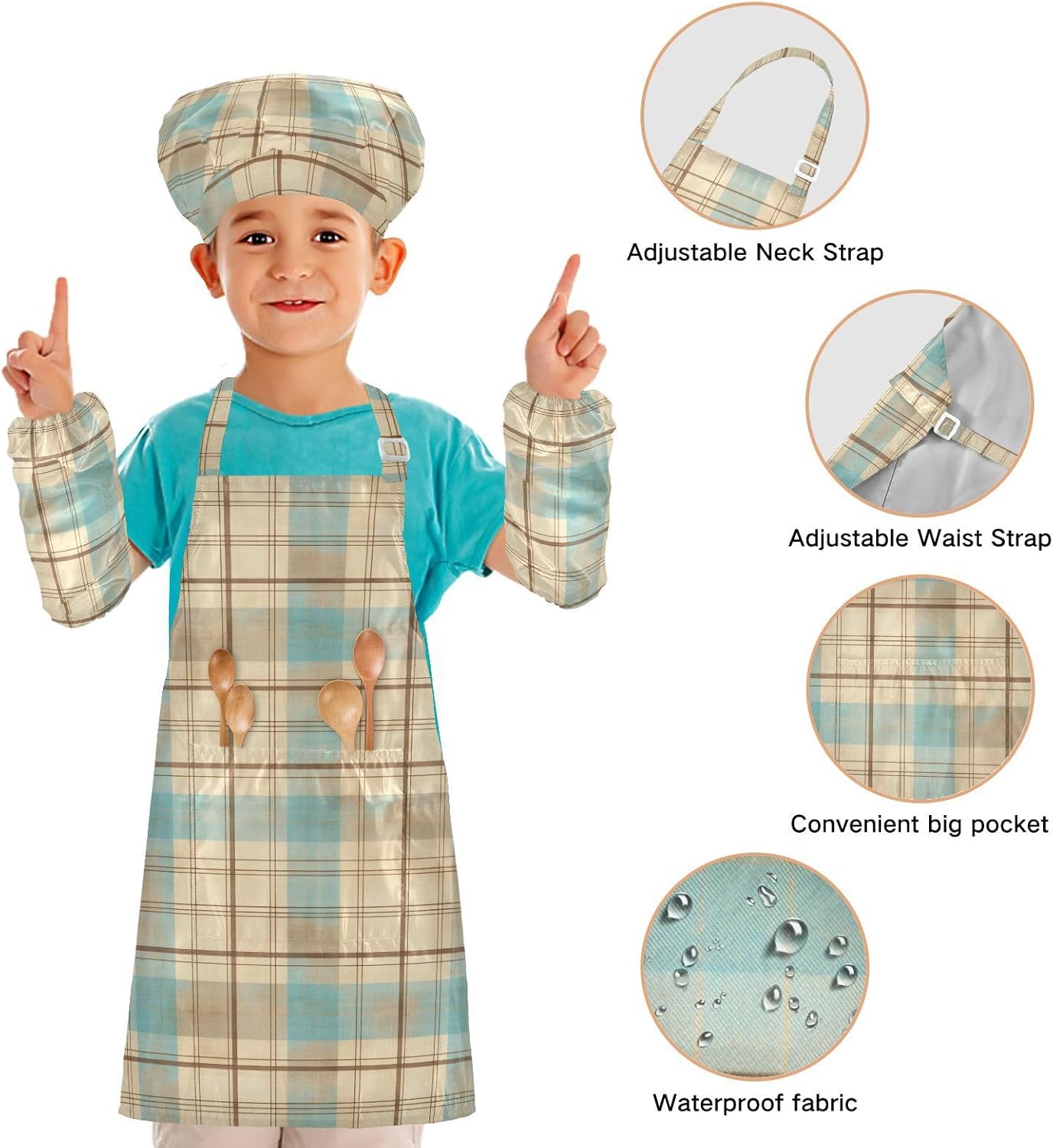 Dimensioni e articolo include: S: 18,9 x 20,5 L per bambini dai 3 ai 6 anni. M: 19,7 W x 23,5 L per età 7-12 anni. Il grembiule per bambini include 1 grembiule leggero, 1 cappello da chef e 2 maniche. Il grembiule artistico per bambini può dare ai bambini una buona esperienza di utilizzo per cucinare o dipingere come fornelli o pittori professionisti. Materiale di alta qualità: il costume da chef per bambini è realizzato in poliestere, morbido tessuto impermeabile twill 290, per una sensazione confortevole quando si indossa. Protezione delle maniche con una grande tasca: due maniche possono proteggere i bambini da acqua, olio e pigmenti. Con grandi tasche decorative e funzionali, è comodo mettere alcuni strumenti quando si utilizza, adatto per imparare a cucinare, fare caramelle, dolci, ecc. Ampia applicazione: il grembiule per bambini è adatto per l'insegnamento della pittura e l'insegnamento della cucina, può essere applicato anche per corsi d'arte, costumi di Halloween, oggetti di scena teatrali, feste di compleanno e le belle attività della decorazione per feste a tema. L'articolo include: il grembiule per bambini include 1 grembiule leggero, 1 cappello da chef e 2 maniche. Il set da cucina per bambini da 3 pezzi può dare ai bambini una buona esperienza di utilizzo per cucinare o dipingere come fornelli o pittori professionisti.