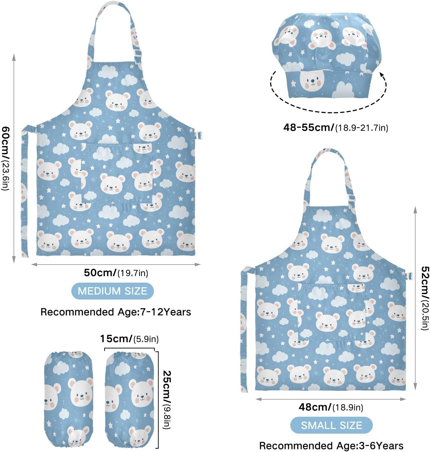 Dimensioni: i grembiuli per bambini di piccole dimensioni per bambini dai 3 ai 6 anni sono alti 52,1 cm, larghi 48 cm. I grembiuli per bambini di medie dimensioni per bambini dai 7 ai 12 anni sono alti 59,7 cm, larghi 50 cm. Il cappello delle due dimensioni misura 48-55,1 cm. ?La custodia misura 15 x 24,9 cm. Materiale di alta qualità: il set di cappelli da chef per bambini è realizzato in poliestere di alta qualità, comodo, elegante, leggero e regolabile, impermeabile, facile da pulire. Cinghia regolabile: il set di cappello da chef per bambini con collo regolabile e cinturino in vita può fornire ai bambini una buona esperienza di utilizzo. Non devi preoccuparti se il set di cappelli da chef per bambini si adatta a loro o non più. Multiuso: i grembiuli per bambini non possono essere indossati per pittura, cucina, giardinaggio, lavaggio dei piatti, feste, arte, artigianato e attività scolastiche, ma anche per Natale, Ringraziamento, Halloween, San Patrizio, Capodanno, festa dei bambini, festival, vacanze, cene, compleanni e riunioni di famiglia. L'articolo include: il set di cappello da chef per bambini include 1 grembiule leggero, 1 cappello da chef e 2 maniche. Il set di cappelli da chef per bambini può dare ai bambini una buona esperienza di utilizzo per cucinare o dipingere come fornelli o pittori professionisti.