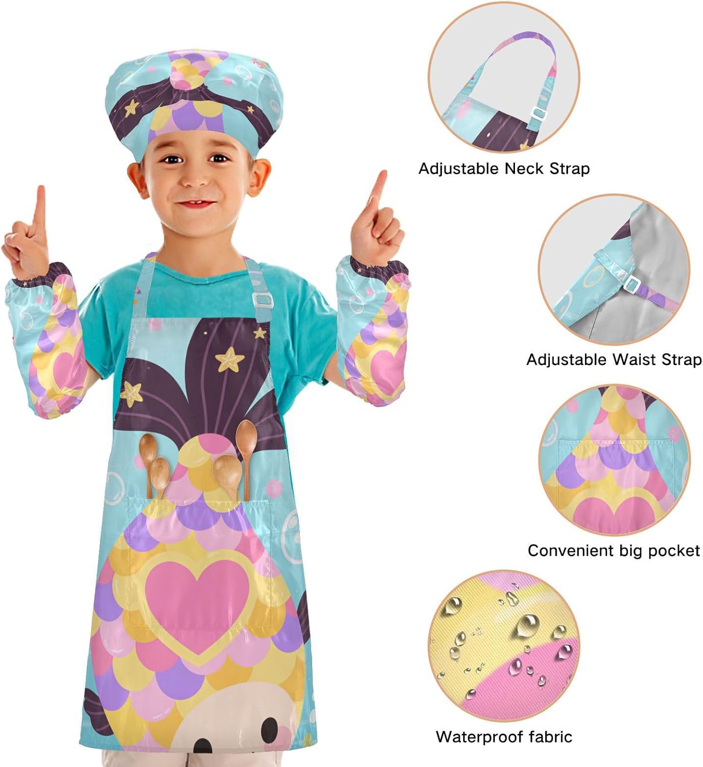 Dimensioni e articolo include: S: 18,9 x 20,5 L per bambini dai 3 ai 6 anni. M: 19,7 W x 23,5 L per età 7-12 anni. Il set di grembiule per bambini include 1 grembiule leggero, 1 cappello da chef e 2 maniche. I grembiuli per bambini possono dare ai bambini una buona esperienza di utilizzo per cucinare o dipingere come fornelli o pittori professionisti. Tessuto comodo: il {parola chiave} è realizzato in tessuto di poliestere di alta qualità, morbido, ecologico, impermeabile, a prova di fuoriuscite e, processo di stampa squisito brillante. Cinghia regolabile: il costume da chef per bambini con collo regolabile e cinturino in vita può fornire ai bambini una buona esperienza di utilizzo. Non devi preoccuparti se il grembiule Kid Paint si adatta a loro o meno. Scenario applicabile: ideale per asilo, asilo, cucina, sala pittura, giardino, Halloween, Natale, abbigliamento del Ringraziamento, artigianato e attività di pittura artistica, festa di compleanno per incoraggiare i bambini a sviluppare la loro cucina, pittura, cottura, giardinaggio o altre abilità. Istruzioni di lavaggio: lavabile in lavatrice e a mano. Non candeggiare, lavare a secco e asciugare in asciugatrice.