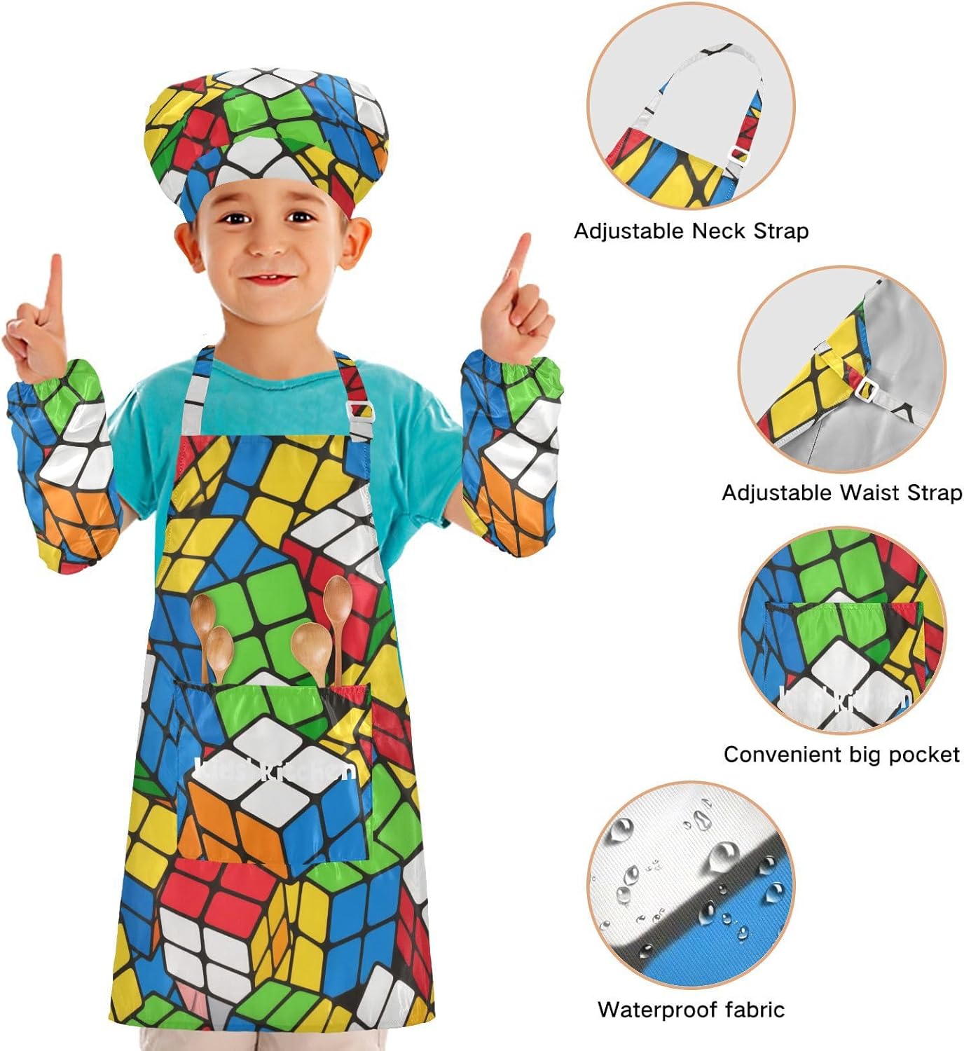 Dimensioni: il grembiule per bambini di piccole dimensioni per bambini dai 3 ai 6 anni è alto 52,1 cm, largo 48 cm. Il grembiule per bambini di medie dimensioni per bambini dai 7 ai 12 anni è alto 59,7 cm, largo 50 cm. Il cappello delle due dimensioni misura 48-55,1 cm. ?La custodia misura 15 x 24,9 cm. Materiale di alta qualità: il grembiule per bambini è realizzato in poliestere di alta qualità, morbido tessuto impermeabile twill 290, per una sensazione confortevole quando si indossa. Protezione delle maniche con una grande tasca: due maniche possono proteggere i bambini da acqua, olio e pigmenti. Con grandi tasche decorative e funzionali, è comodo mettere alcuni strumenti quando si utilizza, adatto per imparare a cucinare, fare caramelle, dolci, ecc. Multiuso: il grembiule per bambini non può essere indossato per pittura, cucina, giardinaggio, lavaggio dei piatti, feste, arte, artigianato e attività scolastiche, ma anche per Natale, Ringraziamento, Halloween, San Patrizio, Capodanno, festa dei bambini, festival, vacanze, cene, compleanni e riunioni di famiglia. Contenuto della confezione: un grembiule impermeabile, un cappello da chef e due maniche. L'adorabile grembiule per bambini può incoraggiarli a sviluppare le loro abilità di cucina, pittura, cottura, giardinaggio o altre abilità.